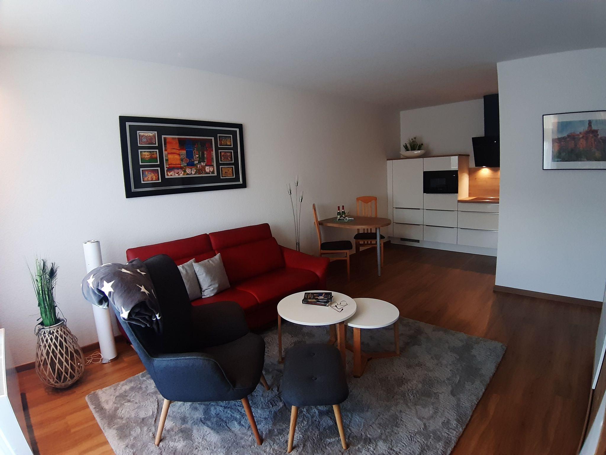 Die hochwertige und bequeme Einrichtung wird Sie Ihren Alltagsstress schnell vergessen lassen. Die Wohnung ist, ebenso wie die Wohnanlage, sehr ruhig gelegen. Als Gast unserer Ferienwohnung ist für Sie die Nutzung des modernen Schwimmbades und der Saunen bereits im Mietpreis enthalten.