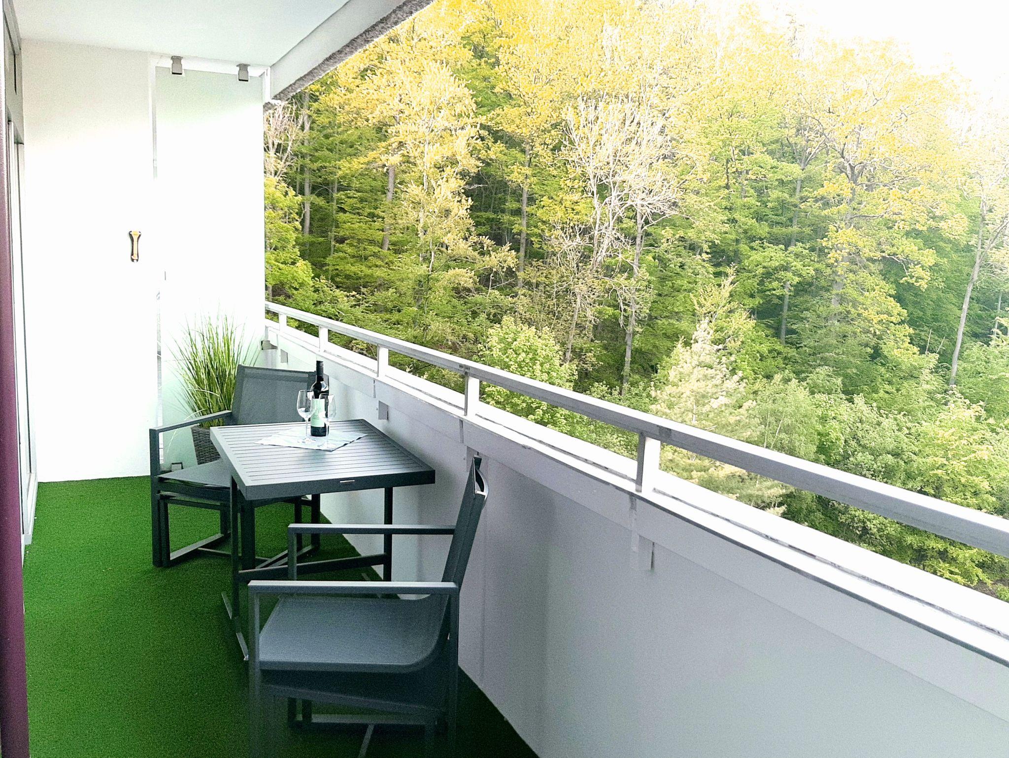 Von der 10. Etage haben Sie einen herrlichen Blick auf den Burgberg, den „Hausberg“ Bad Harzburgs. Bei schönem Wetter können Sie Ihr Frühstück auf dem sonnigen und großzügigen Balkon genießen.