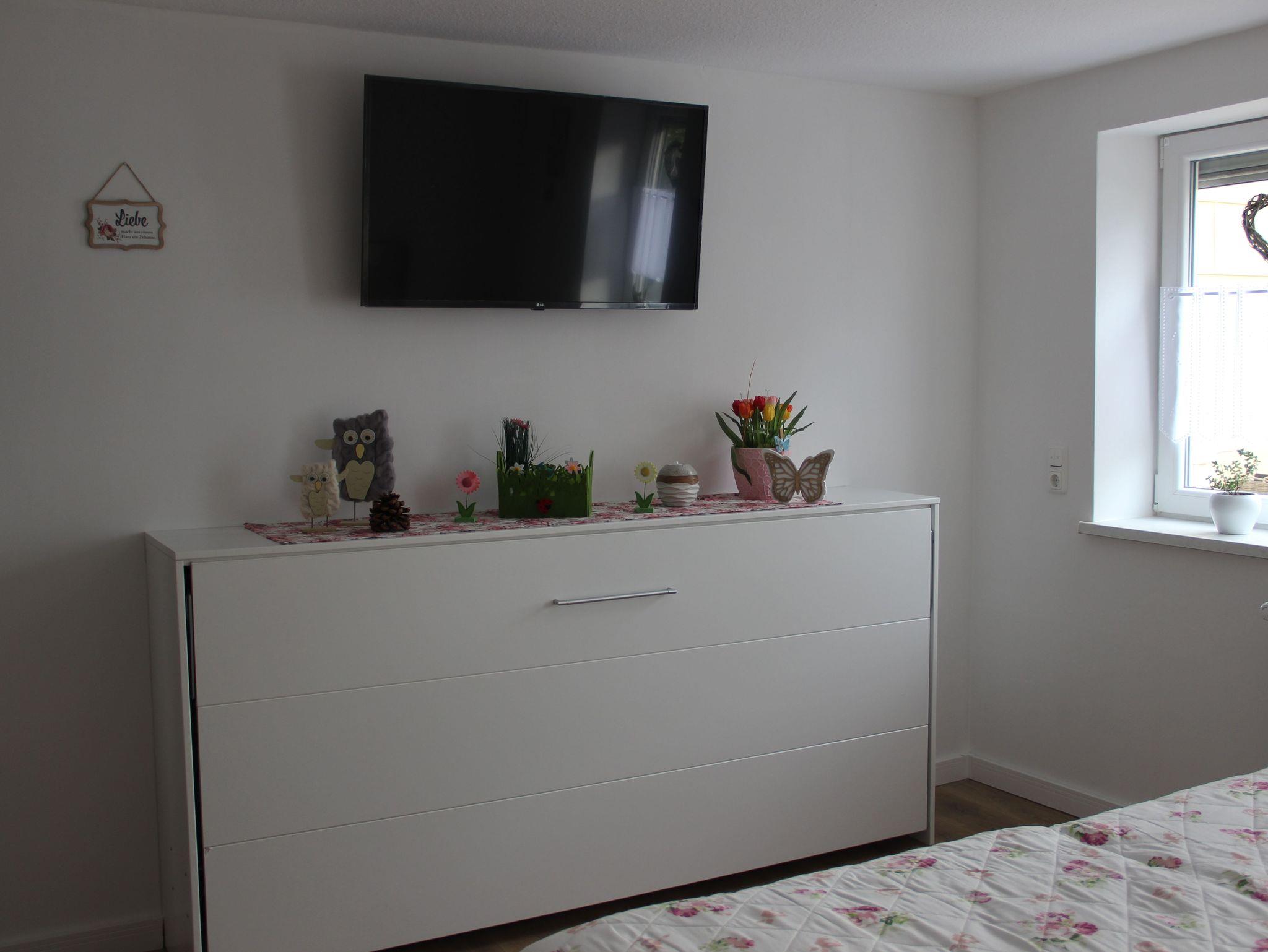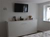 Im Schlafzimmer steht ein Doppelboxspringbett. Zusätzlich steht ein weiterer Schlafplatz für ein Kind in Form eines Schrankbettes zur Verfügung. Das Schlafzimmer verfügt über einen 42 Zoll Smart TV. Ein kleiner Möbeltresor ist im Kleiderschrank integriert. Die beiden Fenster können mit einer Außenjalousie elektrisch abgedunkelt werden. Ein Wäscheständer, Bügeleisen und Bügeltisch, stehen bei Nachfrage zur Verfügung.