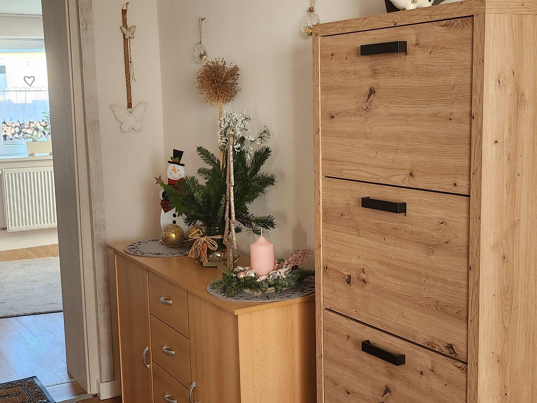 Zu der Wohnung gehört ein umfriedeter Stellplatz auf dem Hof. Die Einrichtung und Geräte sind größtenteils neu. Die Wohnung wurde 2021 kernsaniert und ist nun fast Barrierefrei. Nur der Zugang zum Haus und zur Terrasse hat eine kleine Stufe ca. 8 cm und zur Küche ist ein kleiner Absatz von ca. 2 cm.