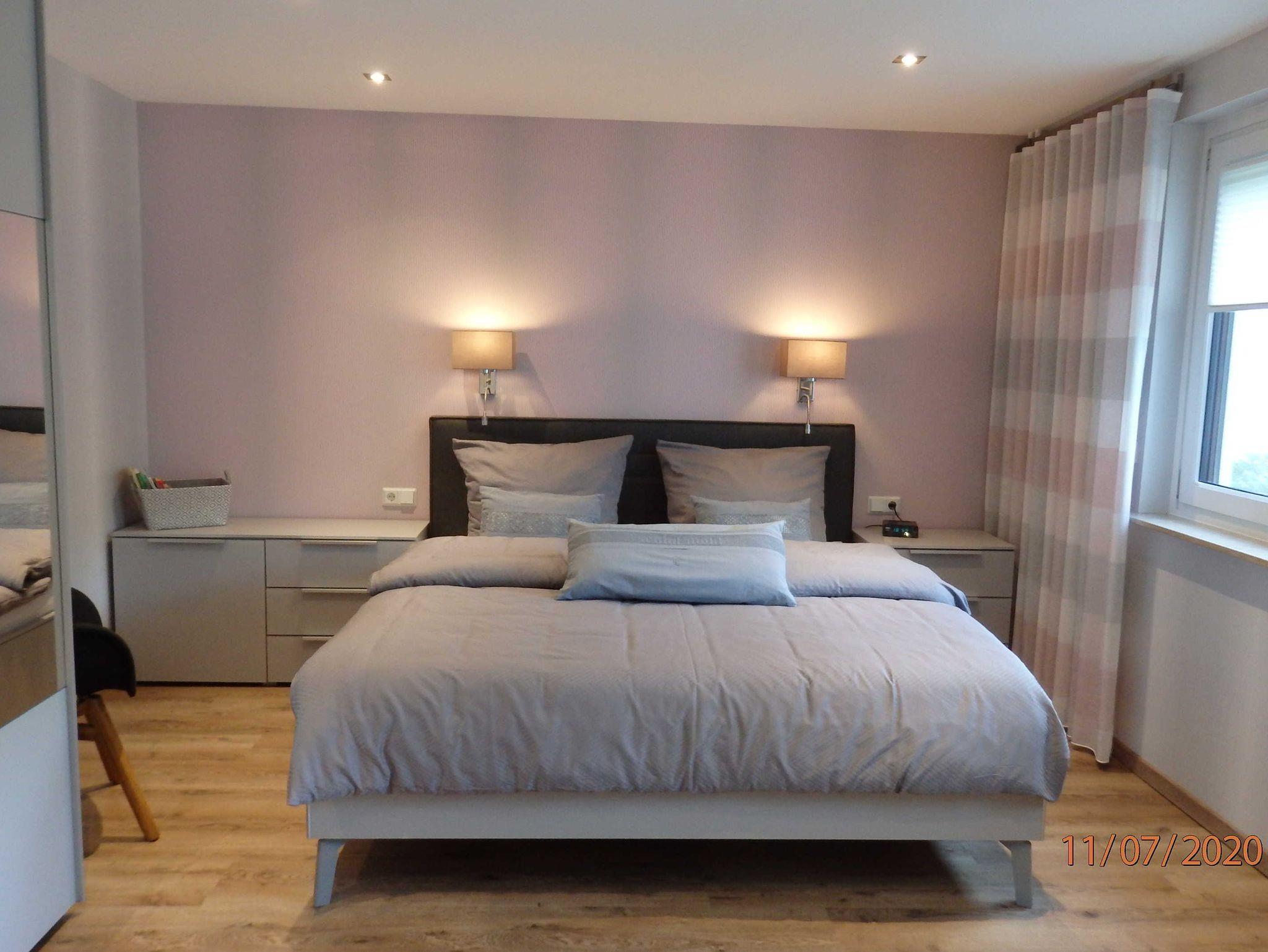 • modernes Schlafzimmer mit Doppelbett und geräumigen Kleiderschrank