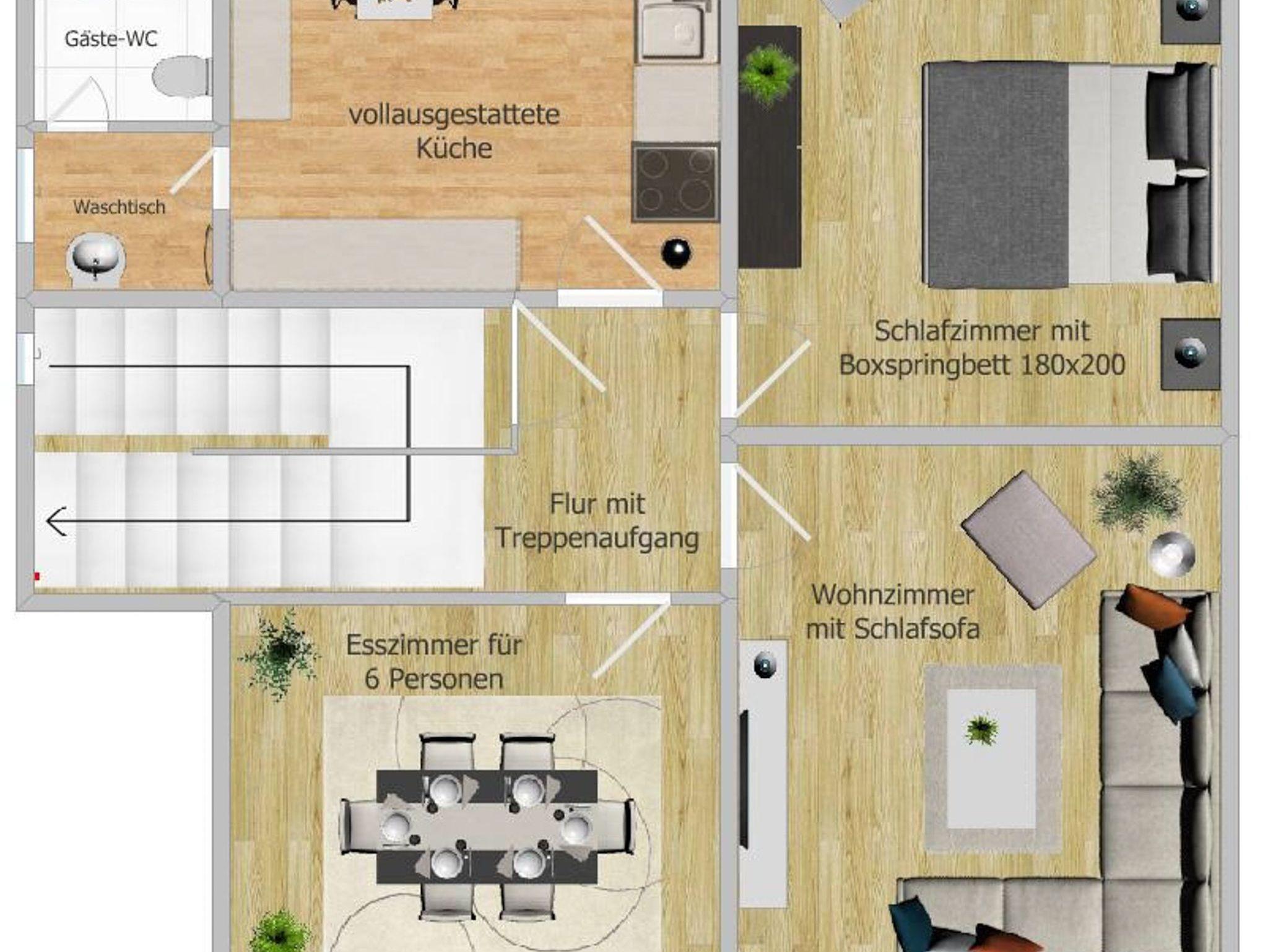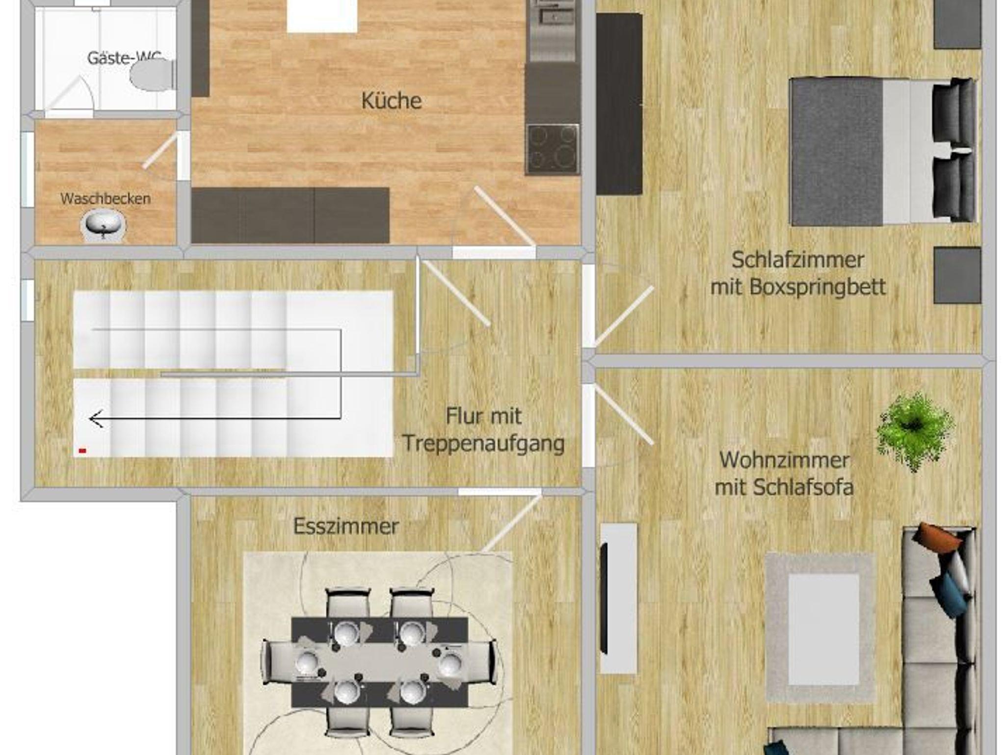 Unsere helle, großzügige und familienfreundliche Maisonette-Wohnung hat auf 120 Quadratmetern genügend Platz für zwei bis fünf Personen plus bis zu zwei Kleinkinder. Das ?Gipfelglück? ist bei uns besonders groß und erstreckt sich über zwei Etagen. Hier ist genug Platz für die ganze Familie! Die Wohnung bietet Euch zwei gemütliche Schlafzimmer mit je einem superkomfortablen Doppelbett, ein geräumiges Wohnzimmer mit einer sehr bequemen Couch für eine weitere Schlafgelegenheit, eine modern ausgestattete Küche, ein Esszimmer für sechs Personen und ein schönes Tageslichtbad mit Dusche, WC und Harzblick. Im Dachgeschoss findet Ihr ein weiteres Zimmer mit Arbeitsplatz für Eure ?Workations? oder Spiel- und Kuschelecke für die Kleinen. Natürlich steht Euch ein leistungsstarkes WLAN zur Verfügung und für regnerische Tage findet Ihr im Wohnzimmer einen Flatscreen-TV mit Netflix und Disney+ zu Eurer freien Verfügung. Und ein paar Gesellschaftsspiele und Bücher zum Schmökern warten ebenfalls auf Euch.