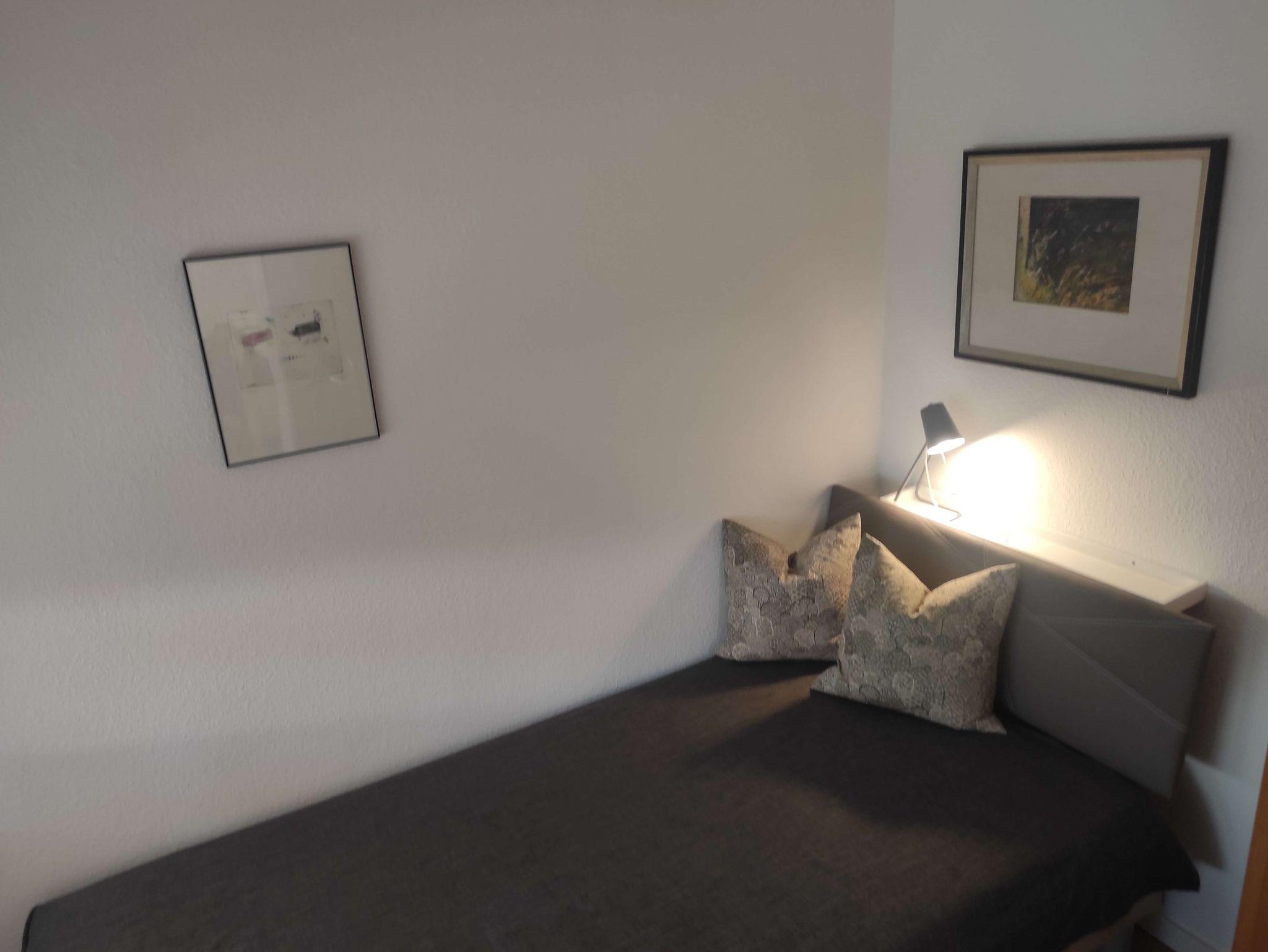 Separates, kleines Schlafzimmer, Bett (200x100), Kleiderschrank.