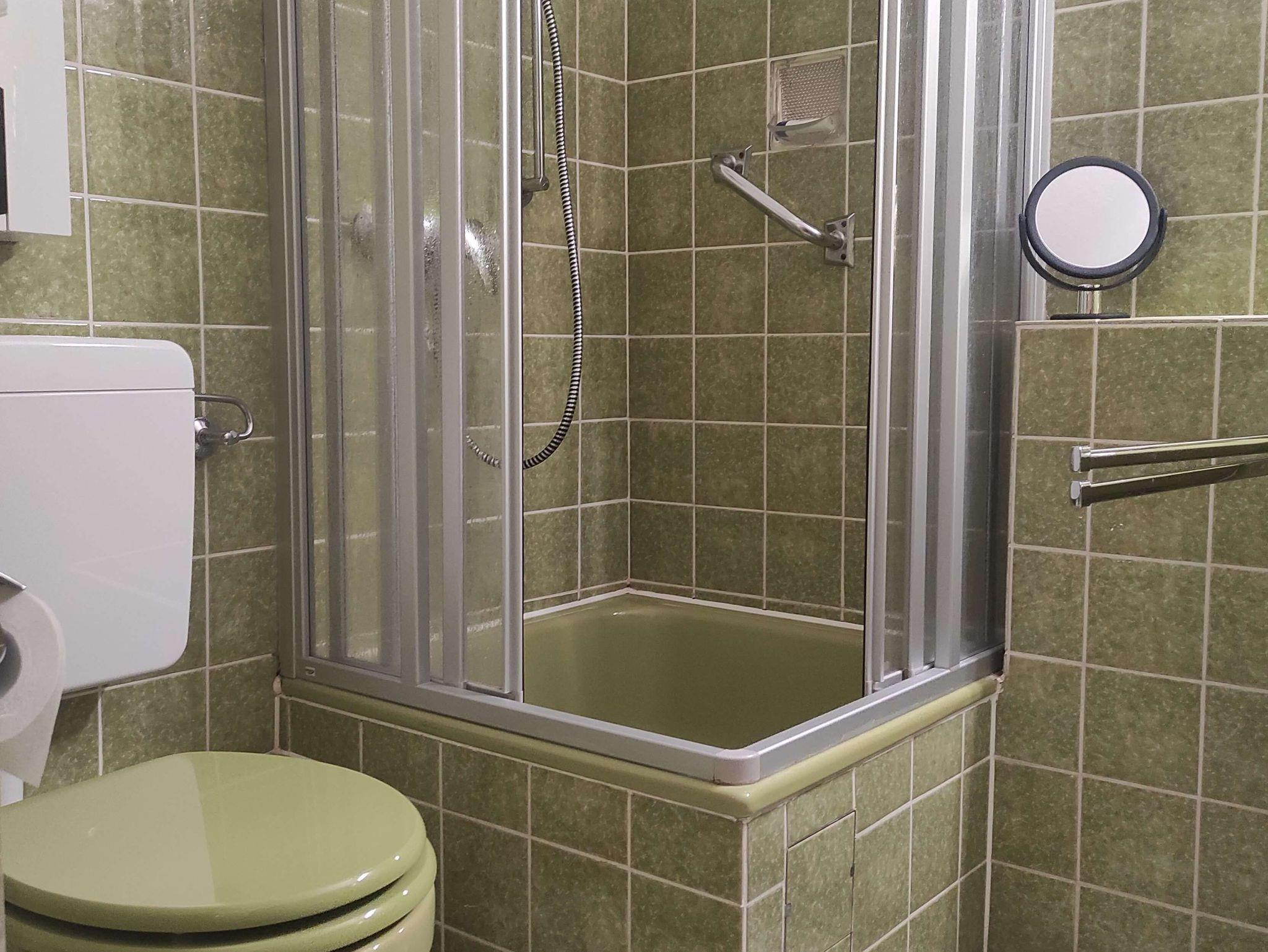 Duschbad, WC, Fön und Vergrößerungsspiegel vorhanden.
