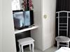 großem Kleiderschrank mit Fernseher ,sowie 2 Glas -Nachttische mit Lampen und Radio.Im Schrank befindet sich ein Staubsauger. Kehratikel.