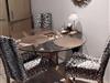 Wohnzimmerschrank mit LED - TV DVD Mini Stereoanlage , Glasvitrine mit Beleuchtung, vielen Gläsern und Geschirr,einen Essplatz,mit 3 Stühlen ,der Tisch mit Glasplatte. Sowie eine Spiral Stehlampe und eine Stehleselampe,