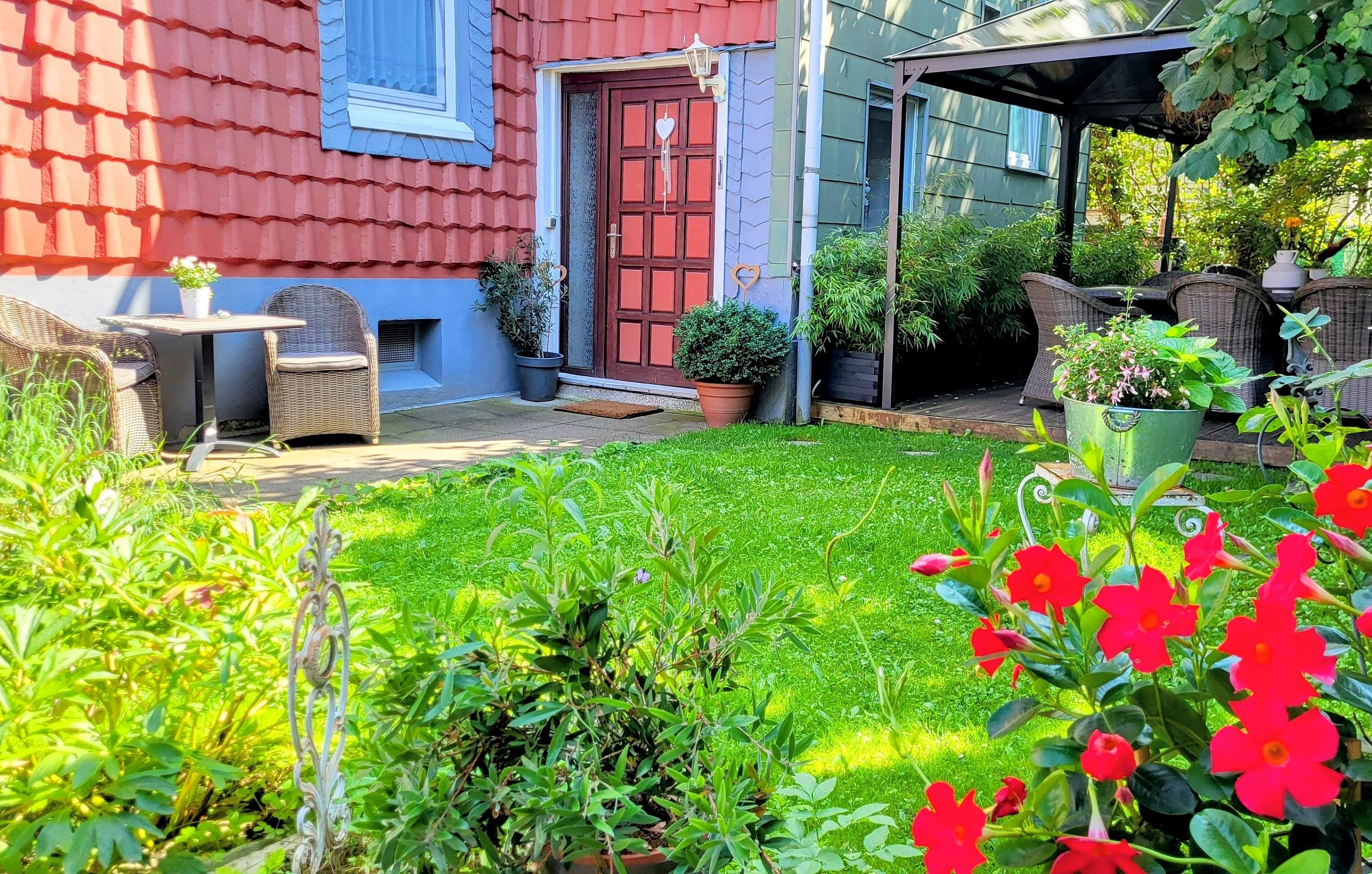 * eine Sitz- und Grillmöglichkeit im Garten lässt die gesundheitsfördernde Harzer Frischluft genießen.