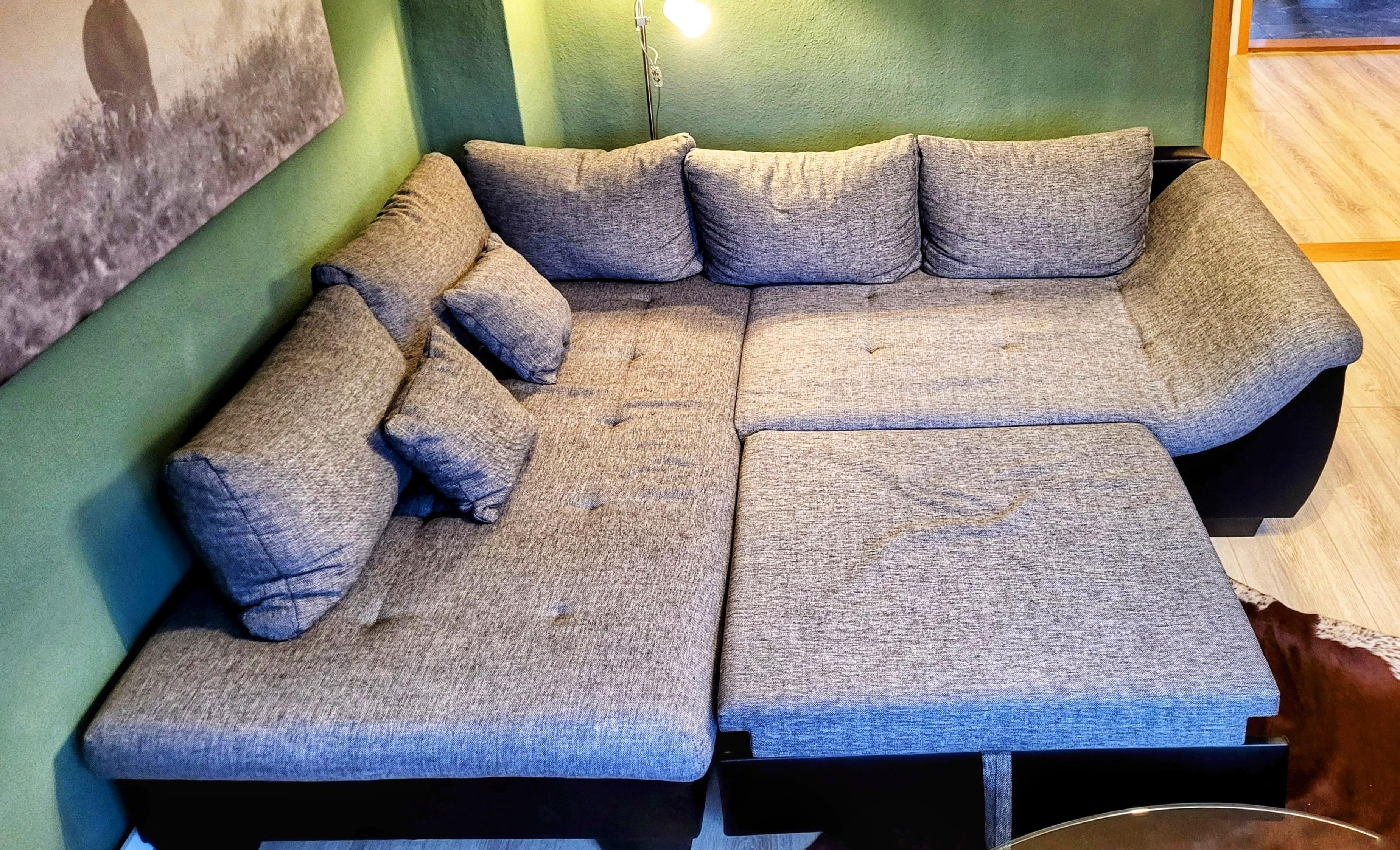 Das Schlafzimmer ist mit einem großem Doppelbett und einem Kleiderschrank ausgestattet. Im Wohnzimmer können auf der bequemen Schlafcouch weitere 2 Personen Platz zum Schlafen finden. Die gewohnten TV-Programme empfangen Sie über Satellit.