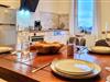 Die geräumige Wohnküche mit 4 Sitzgelegenheiten und Esstisch wurde im November 2022 völlig neu eingerichtet - jetzt auch mit Spülmaschine und Cerankochfeld.