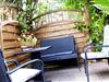 Ein Gartenhäuschen mit Tisch, Stühlen und Grill-Eqiupment können Sie jeder Zeit kostenlos benutzen.