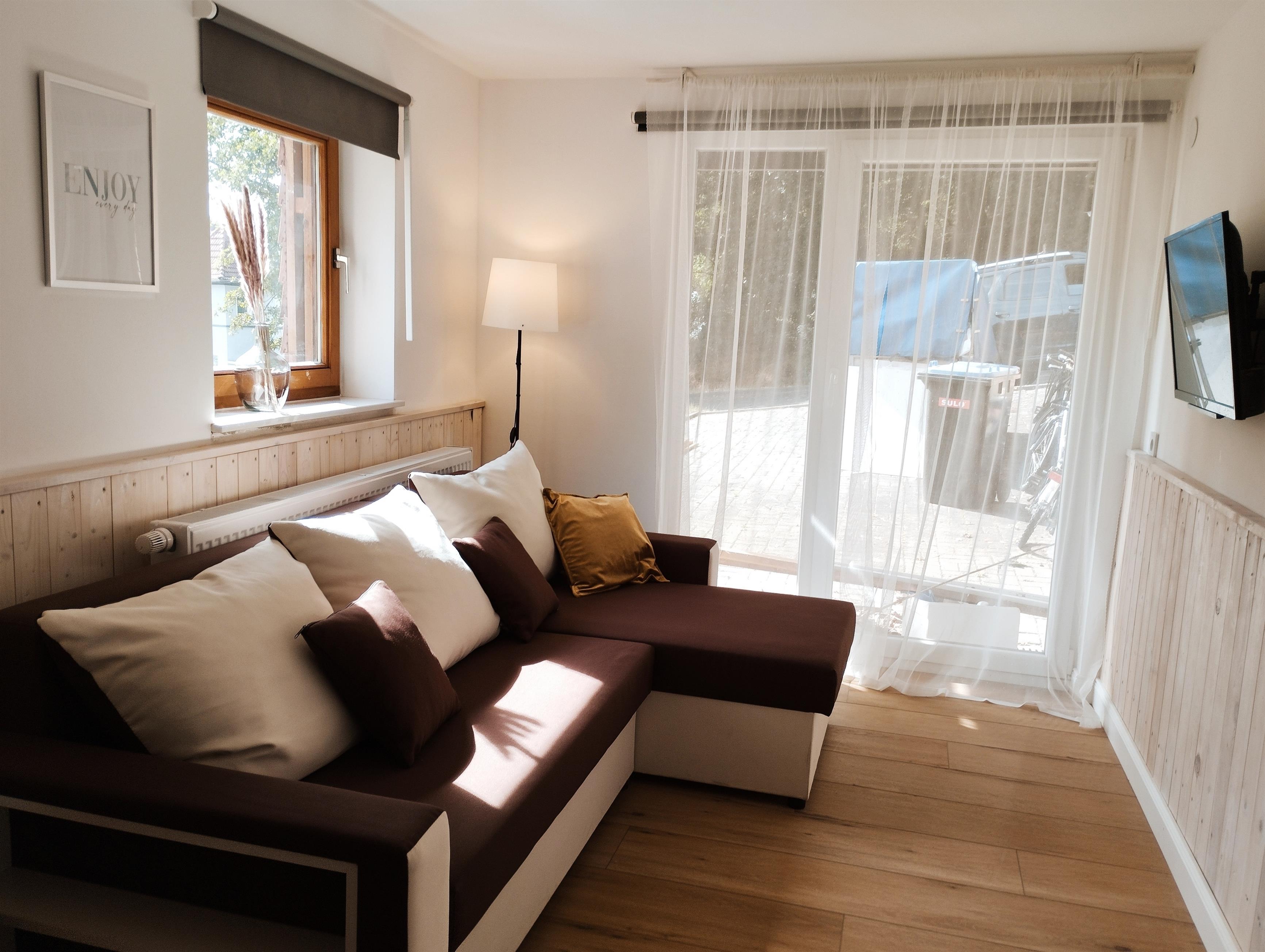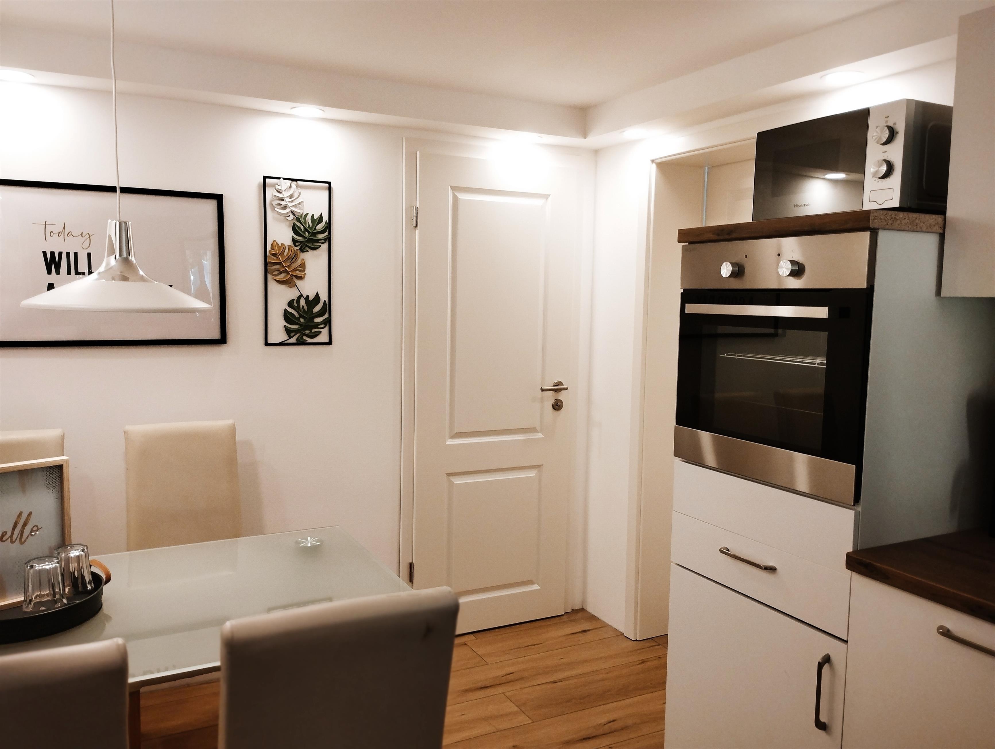 Die neu renovierte Wohnung, die mit Küchenzeile, einer gemütliche Sitzgruppe, einem modernen Badezimmer und einem Wohn- und Schlafzimmer mit Flachbildschirm, lädt zum entspannen ein. Es gibt Sitzmöglichkeiten im Außenbereich.