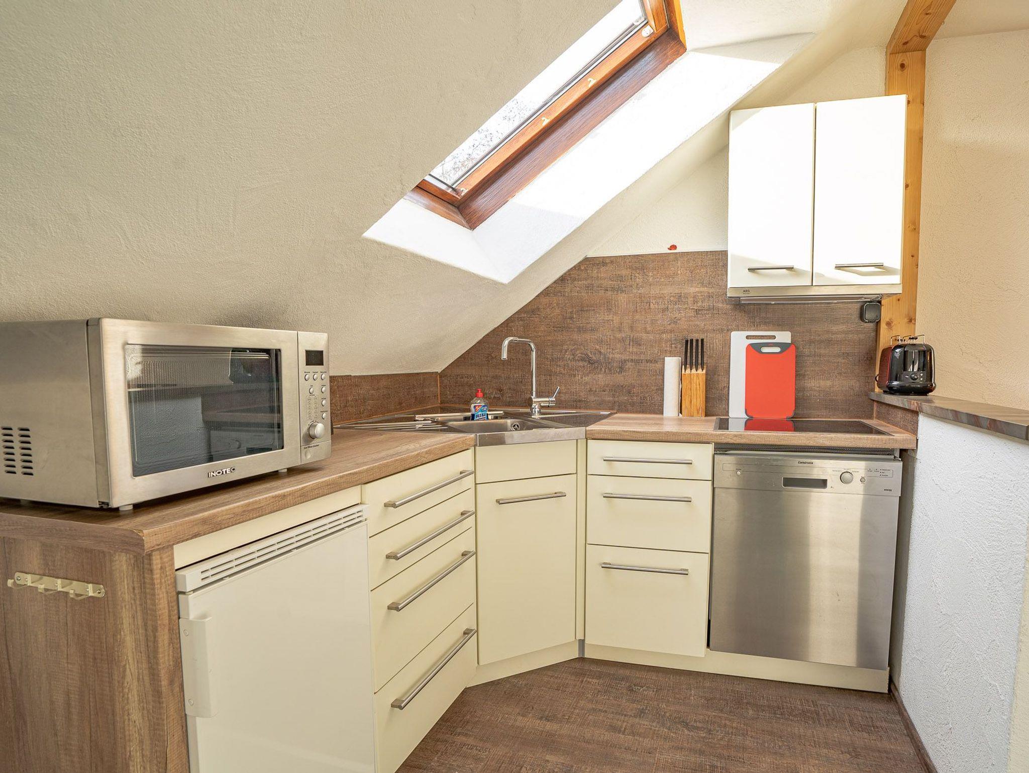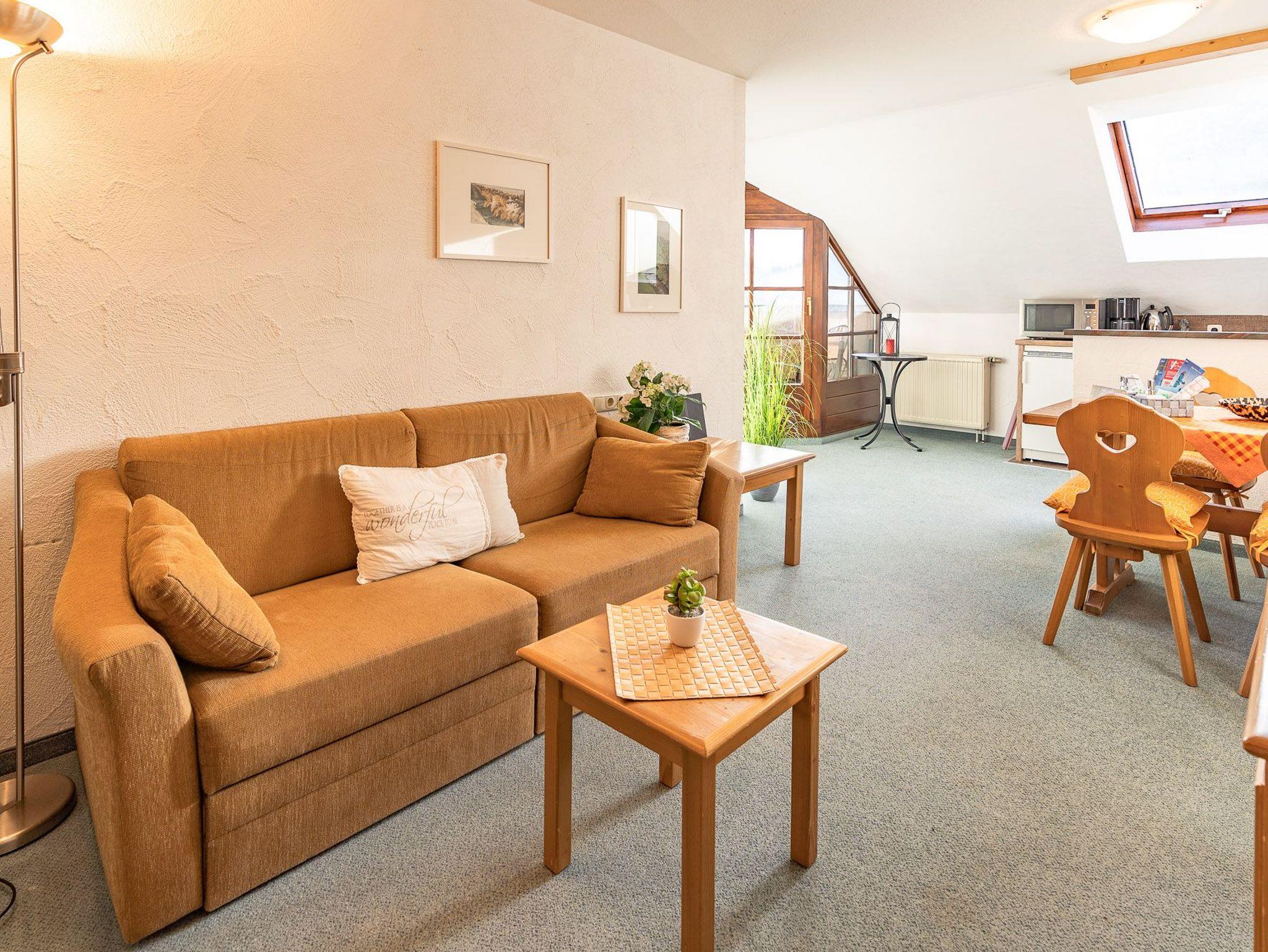 Um sich eine gemütliche Auszeit zu gönnen, ist diese 2 Zimmer-Ferienwohnung, mit 41 qm genau das Richtige. Die liebevoll eingerichtete Ferienwohnung befindet sich im Dachgeschoss einer Ferienanlage und bietet Platz für 4 Personen. Der helle und gemütliche Wohnraum grenzt an die Küche und den einladenden Essplatz. Vom Balkon aus haben Sie eine tolle Sicht in die Allgäuer Berge. Hier können Sie einen erlebnisreichen Tag entspannt ausklingen lassen. Der Wohnbereich verfügt über ein Sofa und TV. Das Bad verfügt über eine Dusche, WC und natürlich einen Föhn.