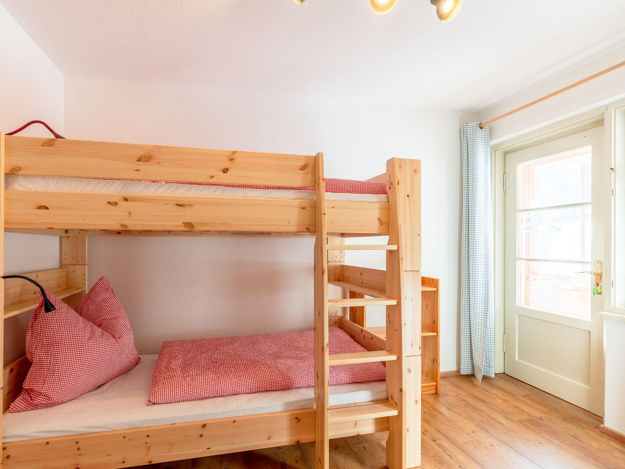 Das 2. Schlafzimmer welches mit einer Tür zum 1. Schlafzimmer verbunden ist, ist mit einem Etagenbett ausgestattet. Beide Zimmer haben einen direkten Zugang zum verglasten Balkon sowie zu einer kleinen Terrasse. Im Untergeschoss des Ferienhaus befindet sich eine Sauna, die gegen eine kleine Gebühr genutzt werden kann. Hier können Sie nach einer Wanderung, einer Radtour oder einem Spaziergang entspannen und die Seele baumeln lassen.