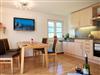 Wohnen mit Sofa, Essecke und großem Flachbildfernseher mit SAT TV,