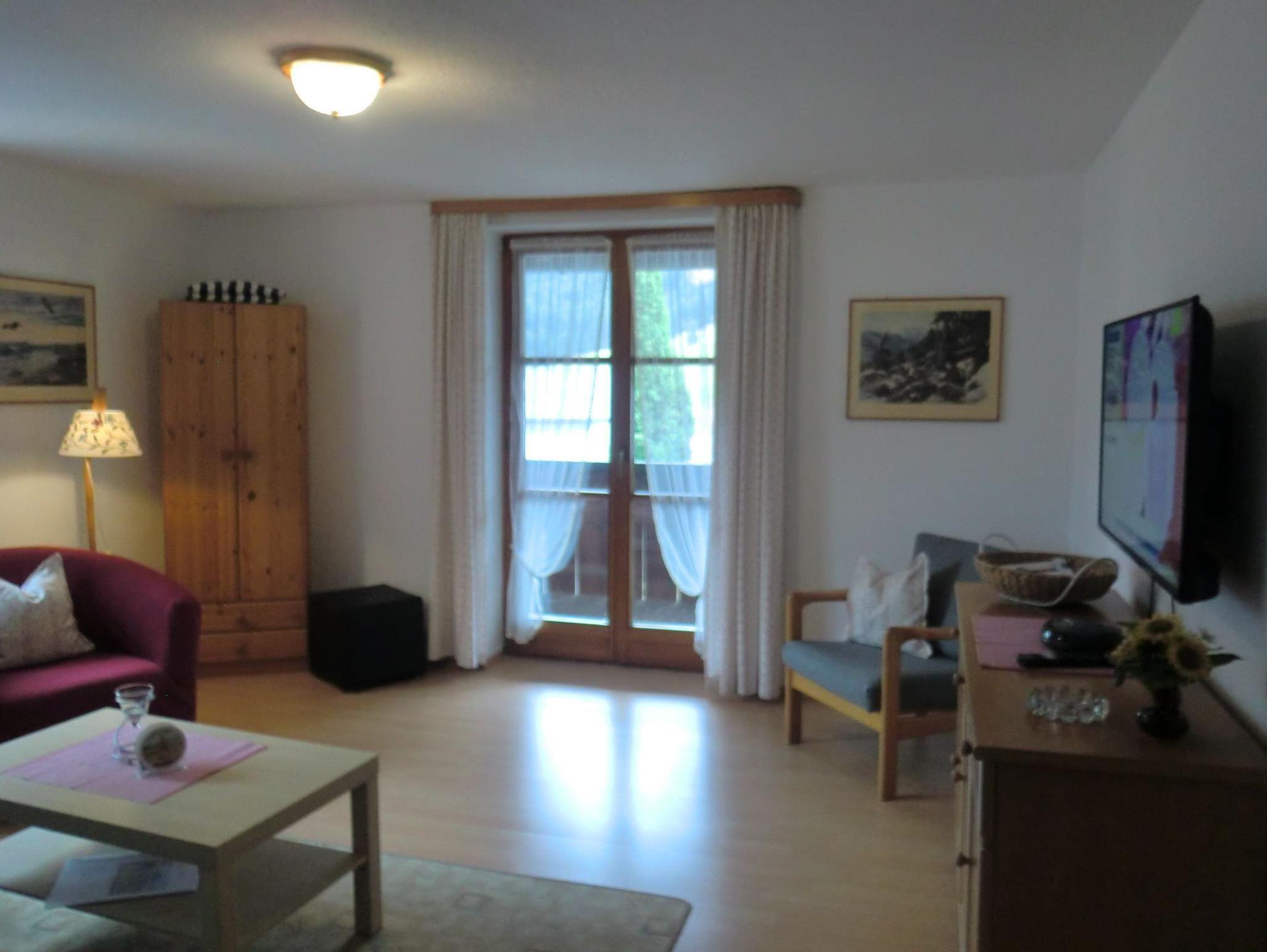 und Wand TV lädt zum Verweilen ein. Ein separates Küche mit Essecke und komplett ausgestattete Küche mit Ceranfeld,Backofen, Kühlschrank mit Gefrirfach und Mikrowelle-Grill. Das Badezimmer mit Dusche und WC ist mit Fenster. Vom Wohnzimmer aus ist der Zugang zum Südbalkon mit herrlichen Blick auf das Imberger Horn.