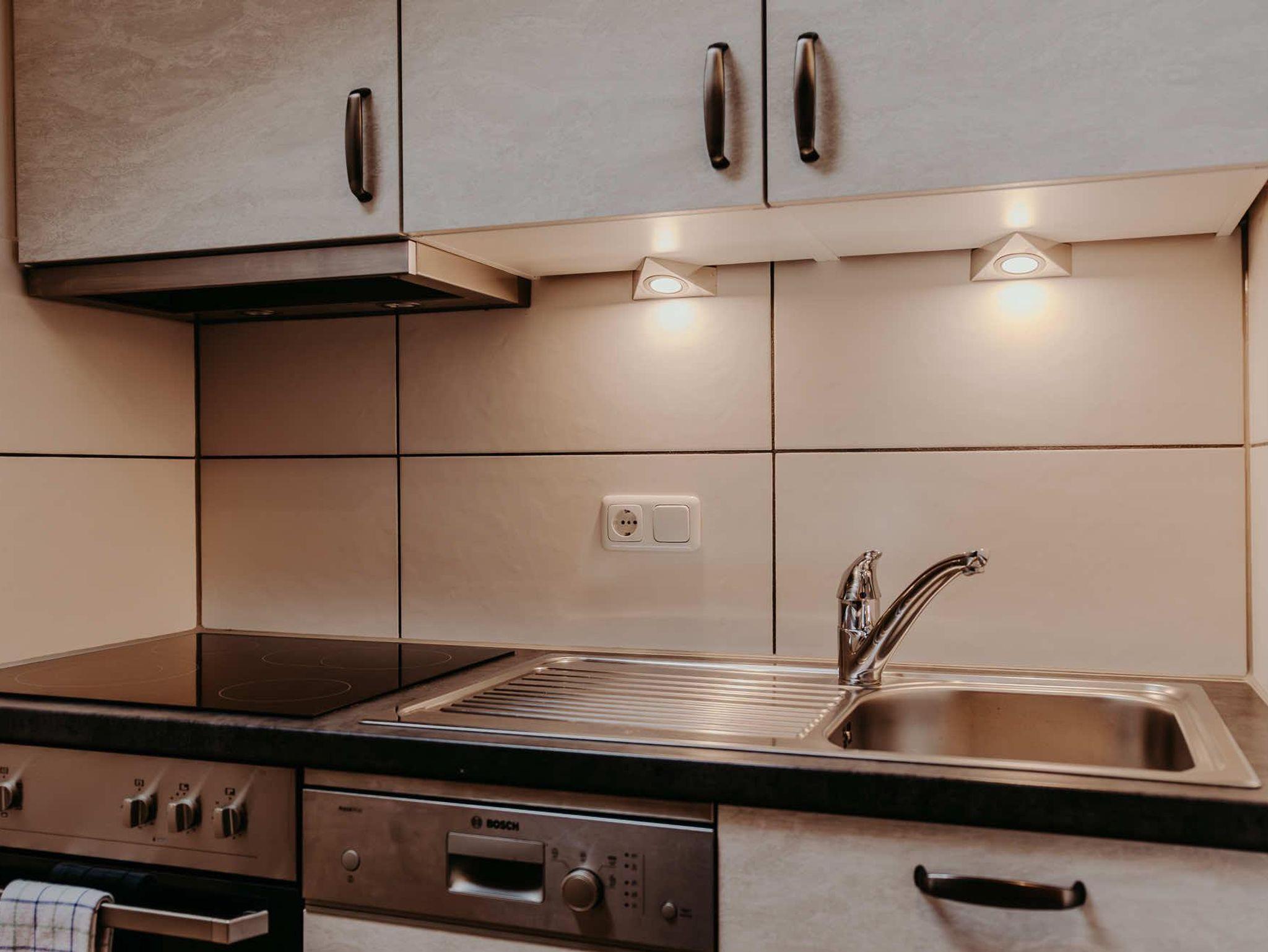 Separates Schlafzimmer mit Doppelbett, eigener Safe, großes Wohnzimmer mit Ecksofa und Eßecke, Küche mit Spühlmaschine, Herd, Ofen, Kaffeemaschine, Toaster, Wasserkocher.
