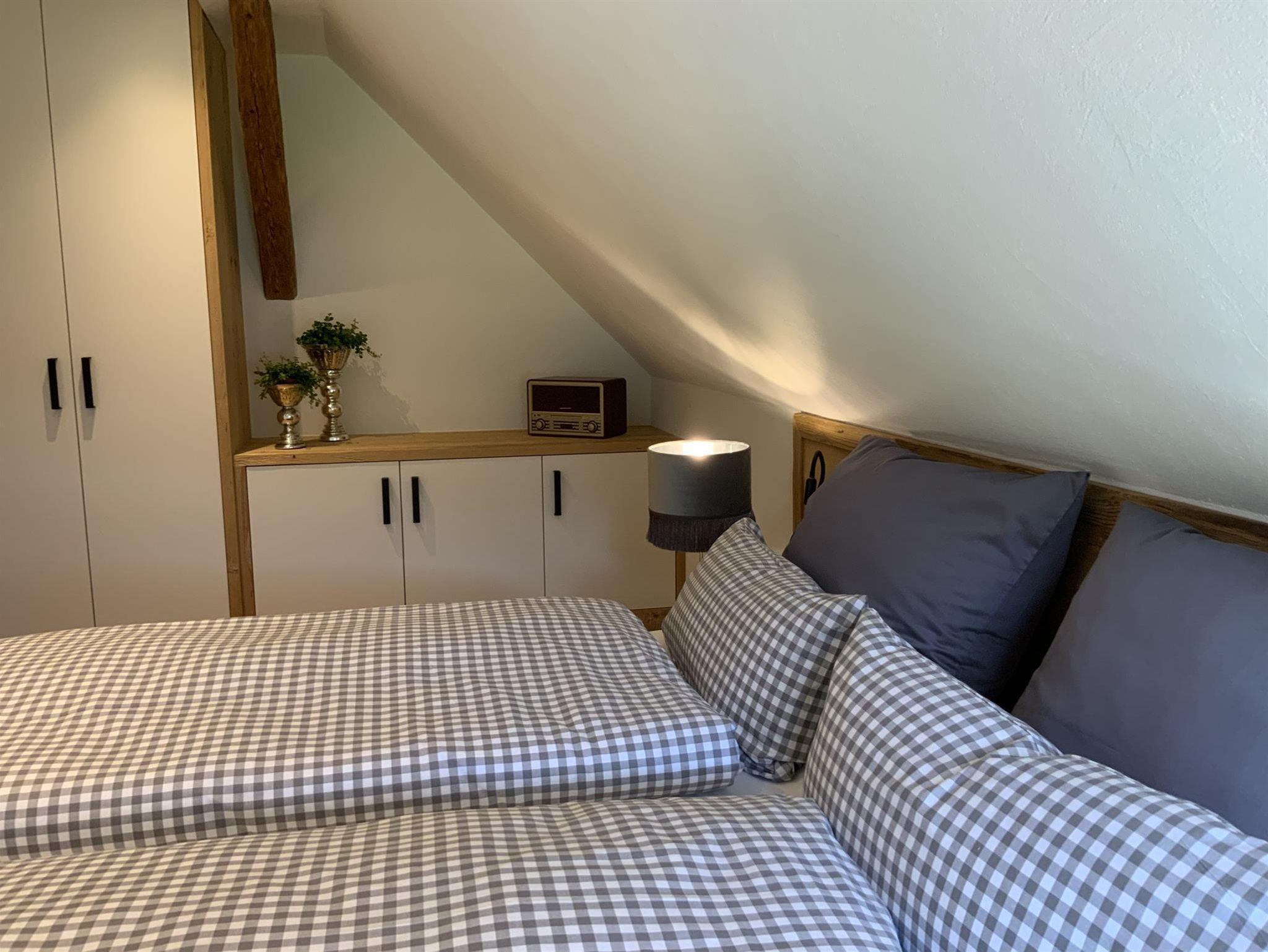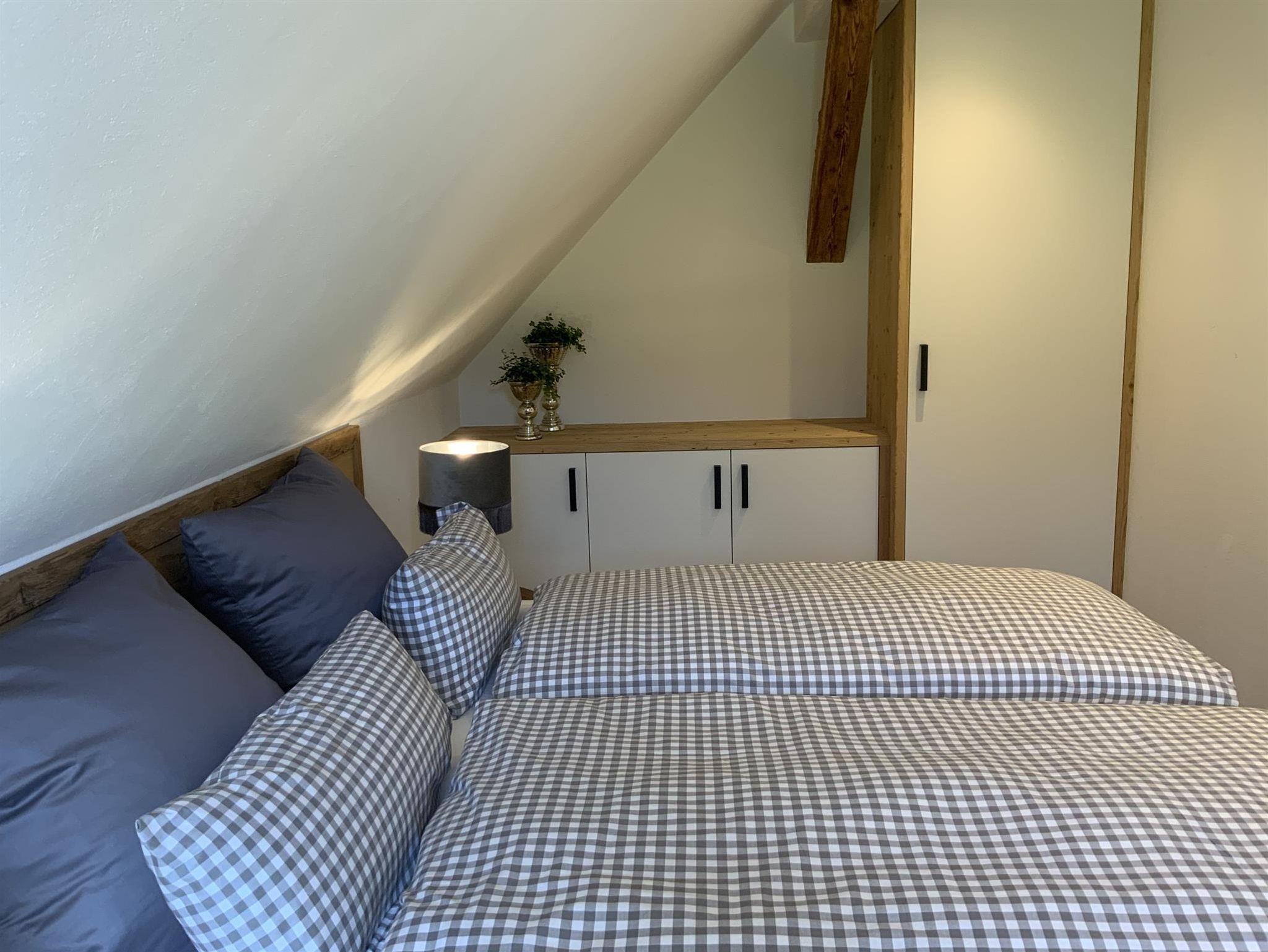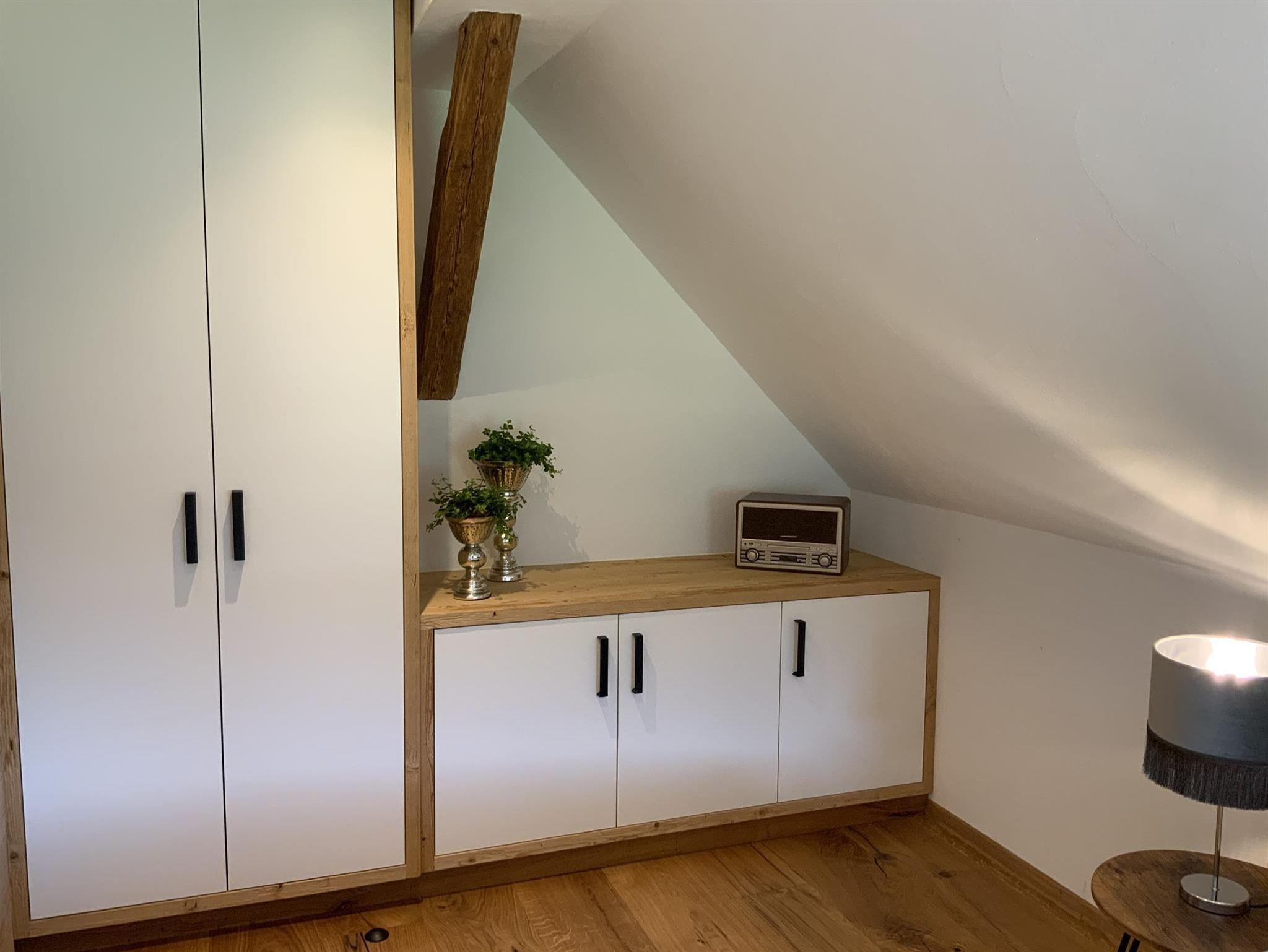 Die 50m² große Wohnung befindet sich im Dachgeschoss des Hauses.