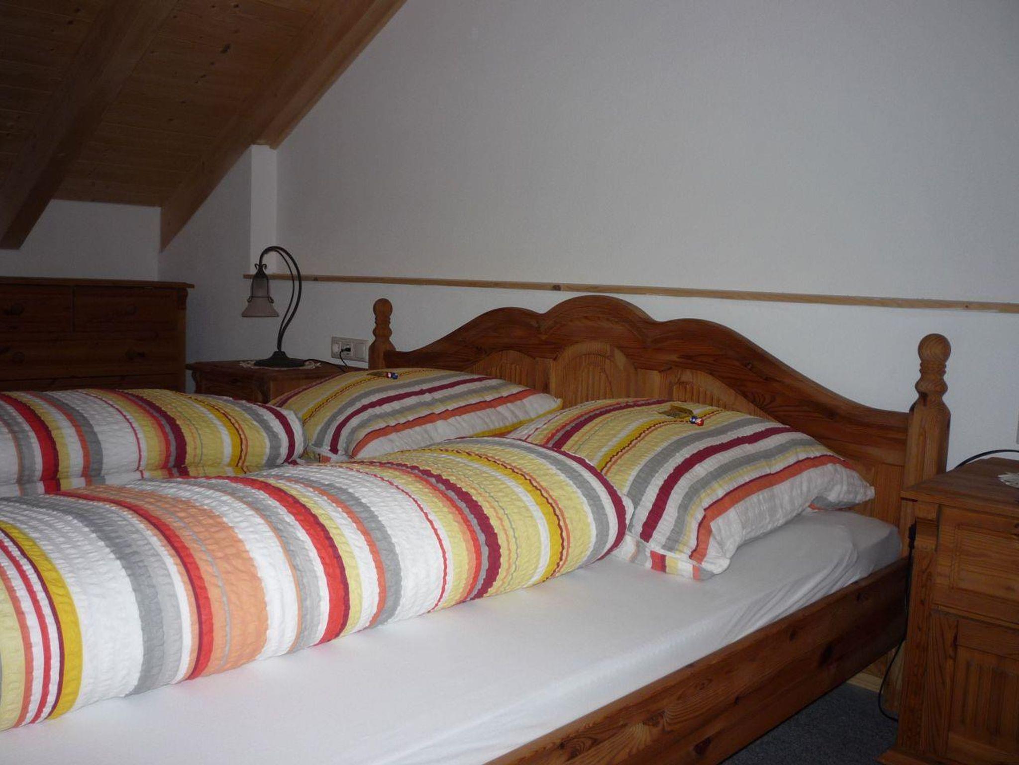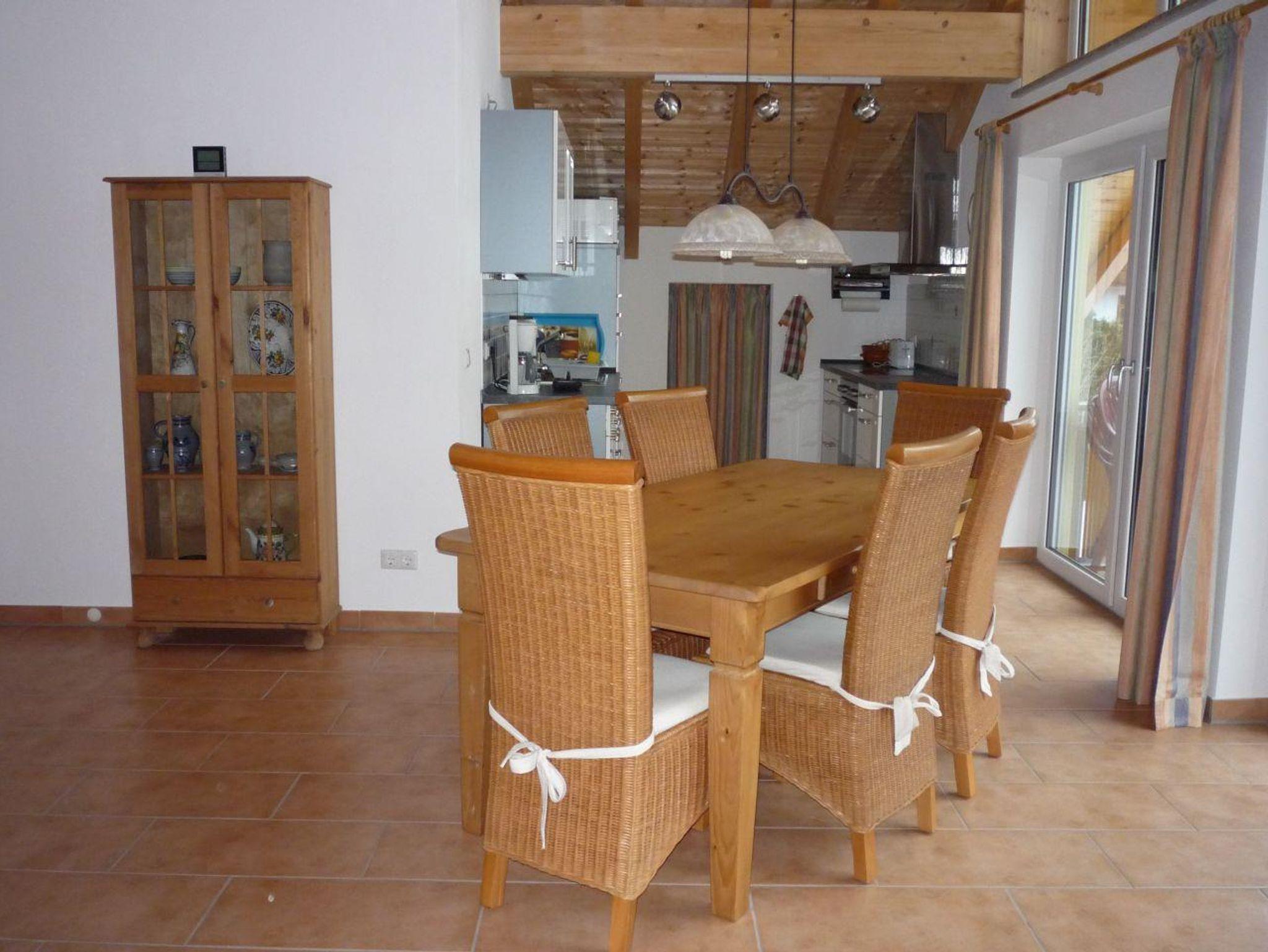 Herzlich willkommen! Unsere Ferienwohnung bietet 82 qm Wohnkomfort mit zwei getrennten Schlafzimmern in gemütlichem Ambiente. Genießen Sie den traumhaften Panoramablick auf die Berge! Und diese Ruhe - kein Durchgangsverkehr, da in einer Sackgasse gelegen. Ideal deshalb auch für Familien mit Kindern! Der offene Dachstuhl aus Fichtenholz rundet die Wohlfühlatmosphäre ab. Unsere Küche ist vollständig und reichhaltig ausgestattet. Fußbodenheizung. Nichtraucherwohnung.