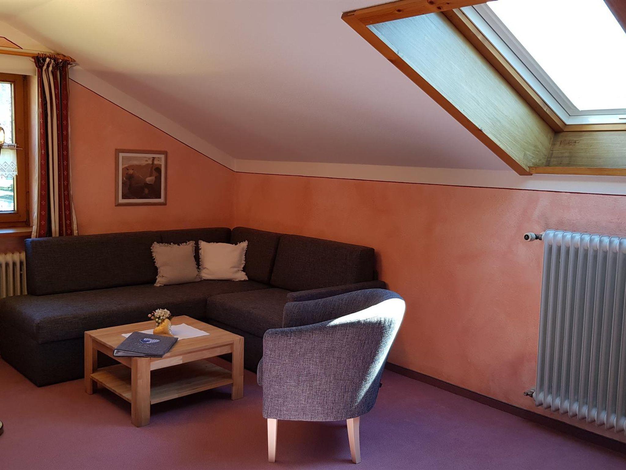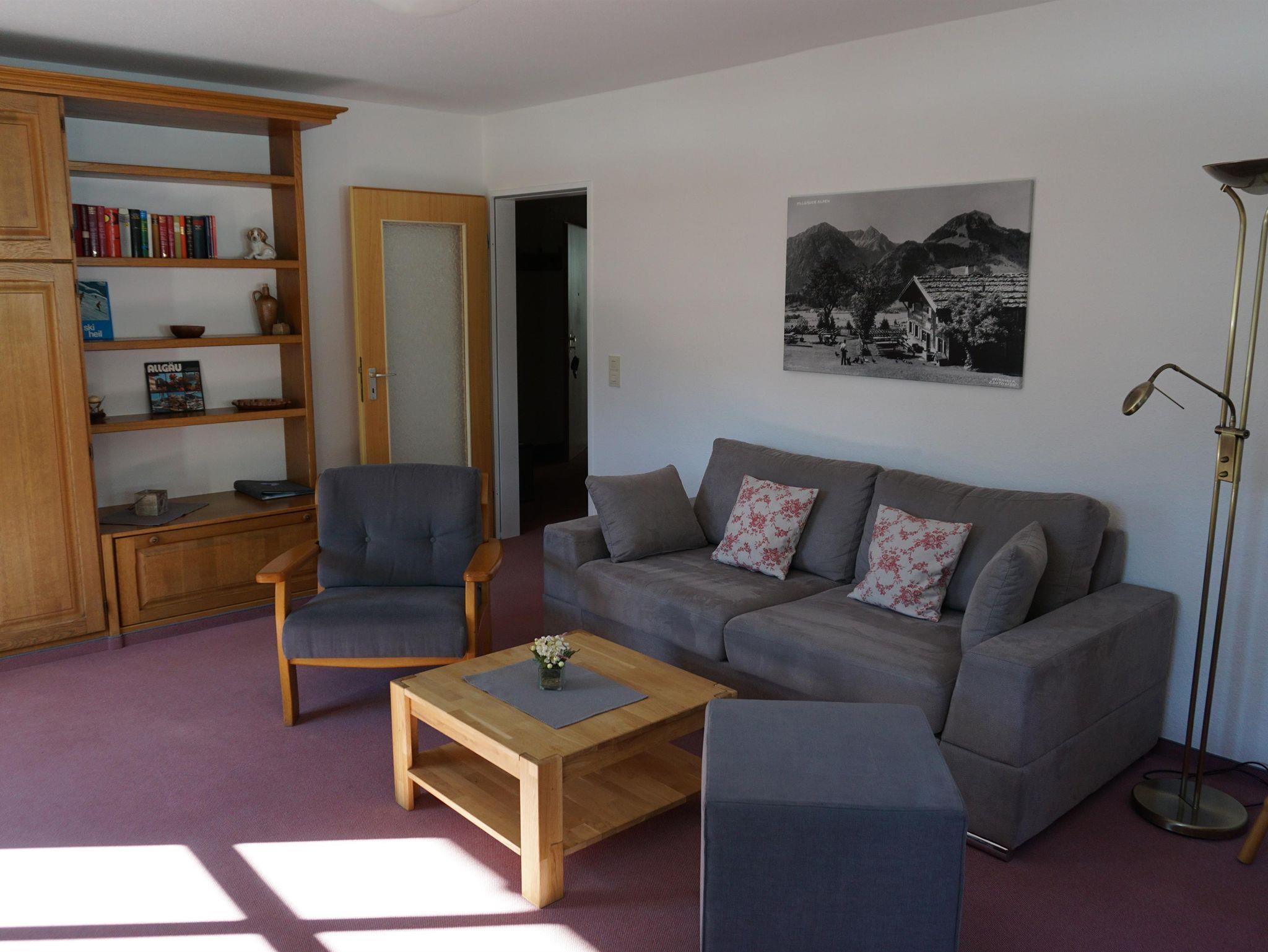 4 Sterne Ferienwohnung im DG, Wohnzimmer mit Couch, Schlafzimmer, Küche, Diele, Bad-WC, Balkon, getrennte Schlafmöglichkeit gegeben, ca. 60 qm. Landhausstil, Gebirgsaussicht. Zustell u. Kinderbett möglich.Keine Haustiere; Allergiker Bettwäsche auf Wunsch; Bad Hindelang PLUS Betrieb; Weitere Personen auf Anfrage.