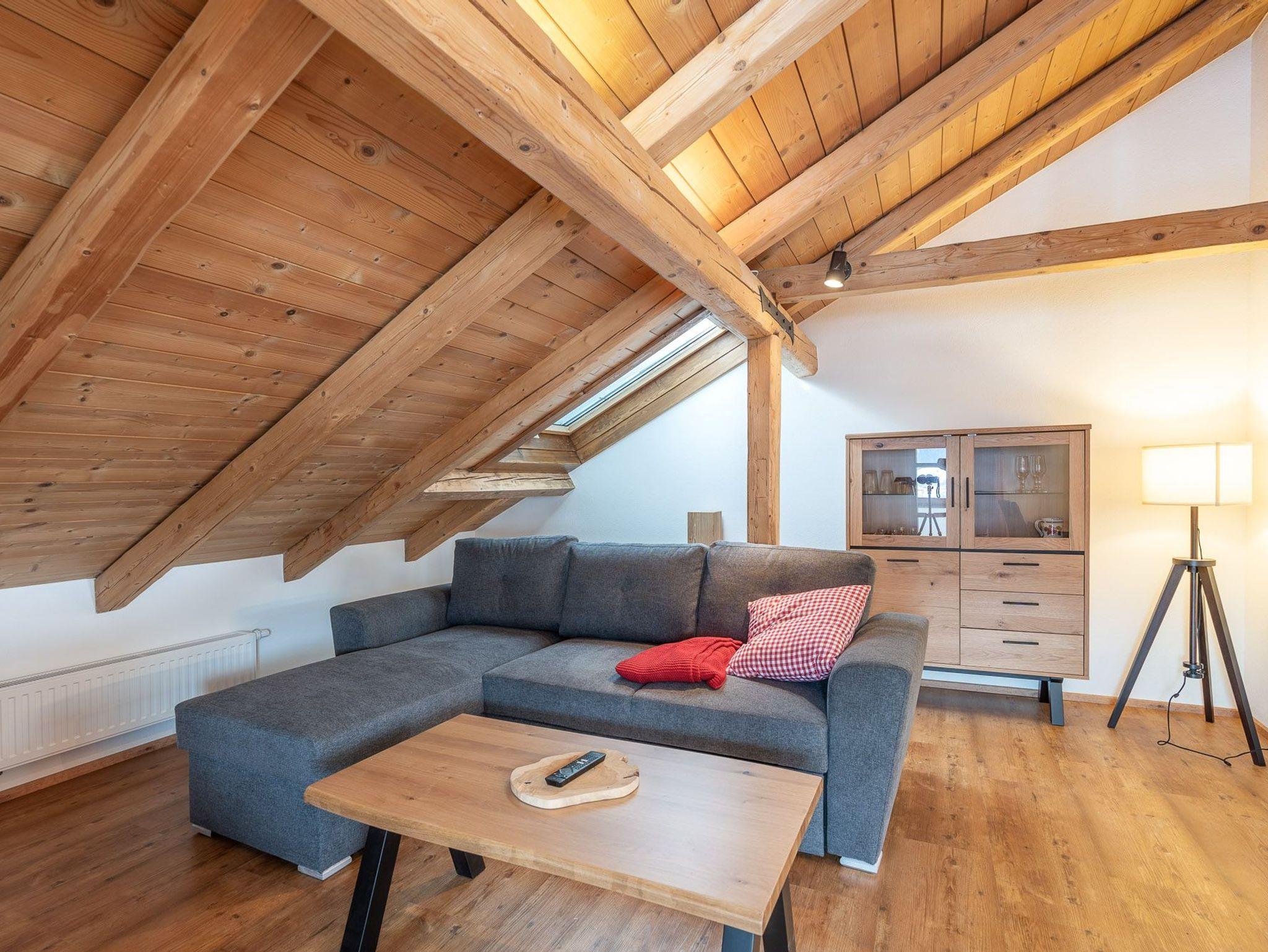Die großzügig gestaltete Dachgeschosswohnung wird Sie begeistern. Die 3 Räume sind für 4 bis 7 Personen und sind modern und liebevoll eingerichtet. Der gemütliche Wohnraum mit Essplatz und offener Wohnküche bietet Ihnen ein angenehmes Ambiente für Gespräche und Entspannung. Auch der Blick vom verglasten Balkon (auch Loggia genannt) wird Ihre Erwartungen nicht enttäuschen. Hier können Sie entspannt den Tag ausklingen lassen und die tolle Sicht auf die Allgäuer Bergwelt genießen.