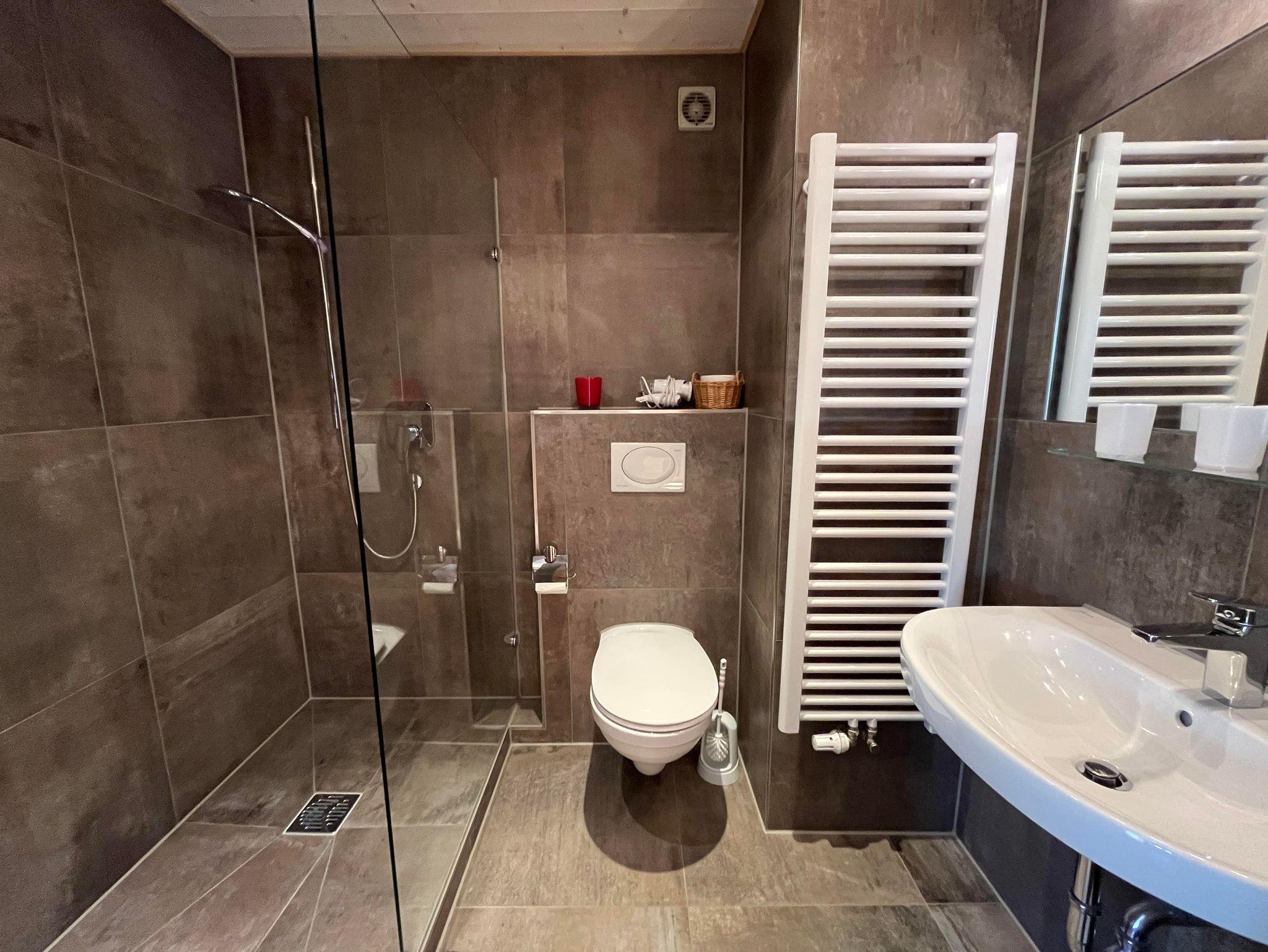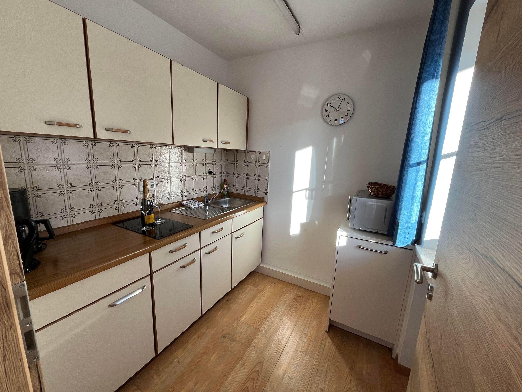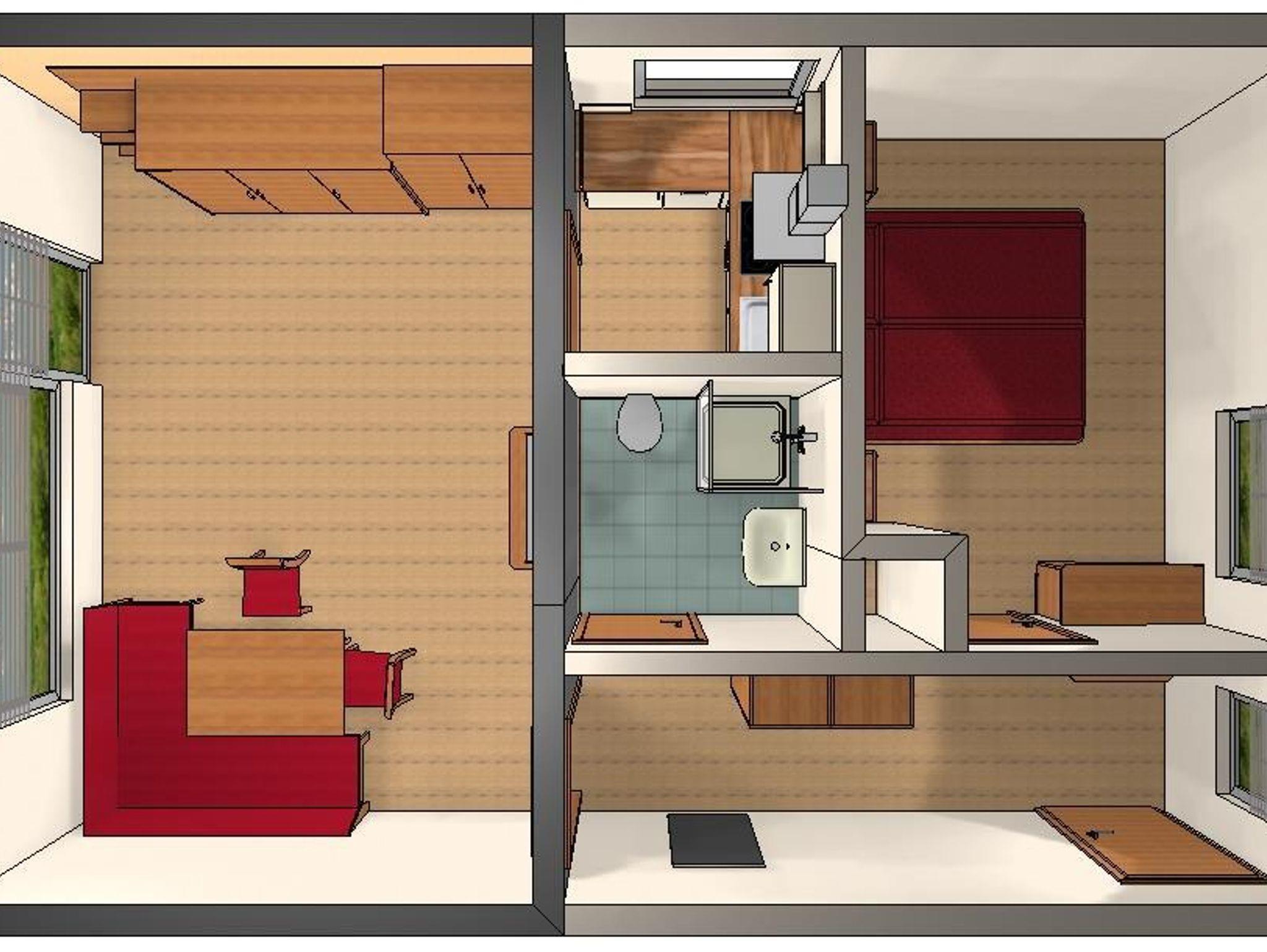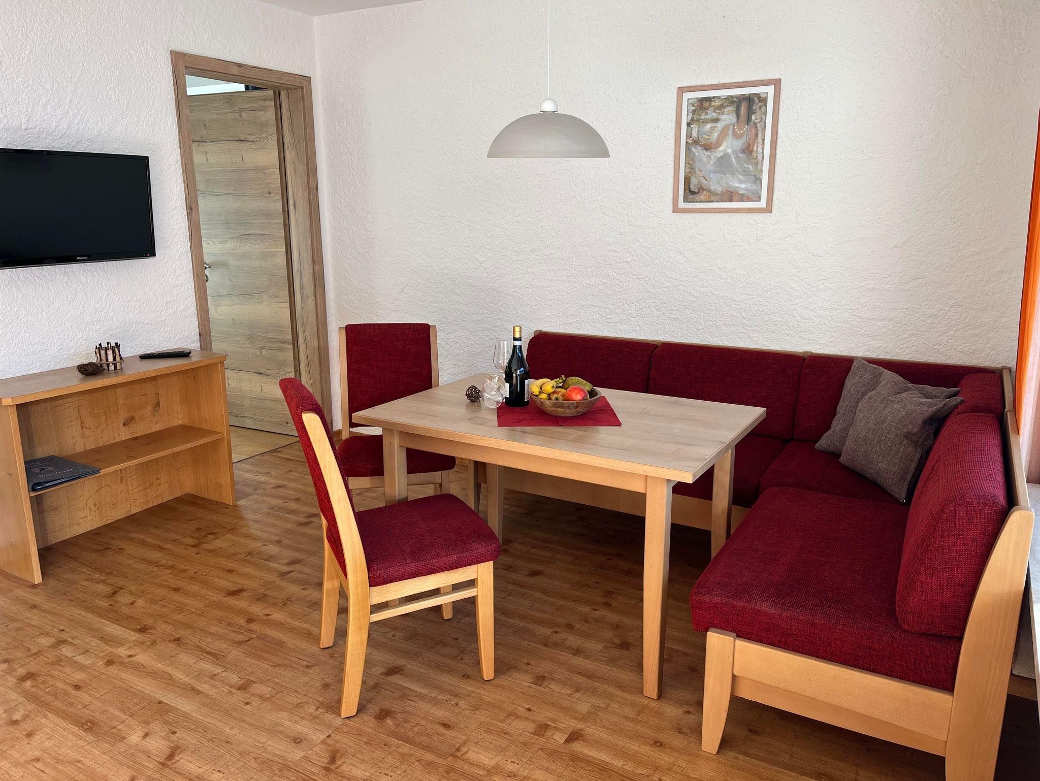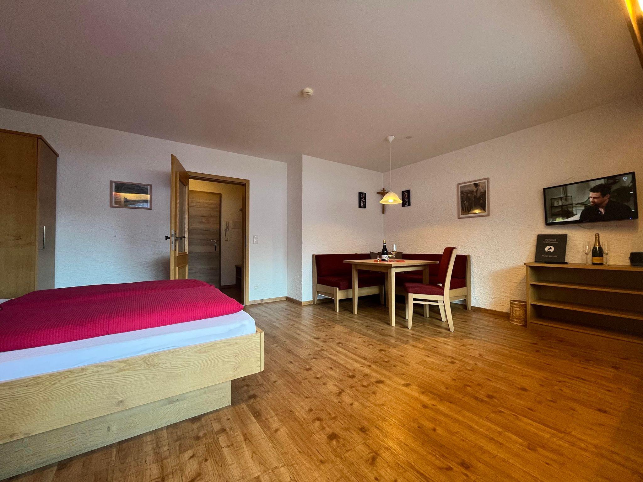 Alles neu renoviert! Geeignet für zwei bis fünf Personen. Lage Süd-Ostseite mit 2 grossen überdachten Balkonen, Flur, grosses Wohn-/Schlafzimmer mit Doppelbett,sep. Schlafzimmer mit Doppelbett und Extrabett (Extrabett ist 1,80m lang), wunderschöne Sitzgarnitur, Fensterfront u. Türe zum grossen Südbalkon. Komplett eingerichtete Küche mit Spühlmaschine, Dusche u. WC. Radio u. Flachbildfernseher-Sat-TV. Kinderbett auf Wunsch. Gesamt ca. 55 qm.