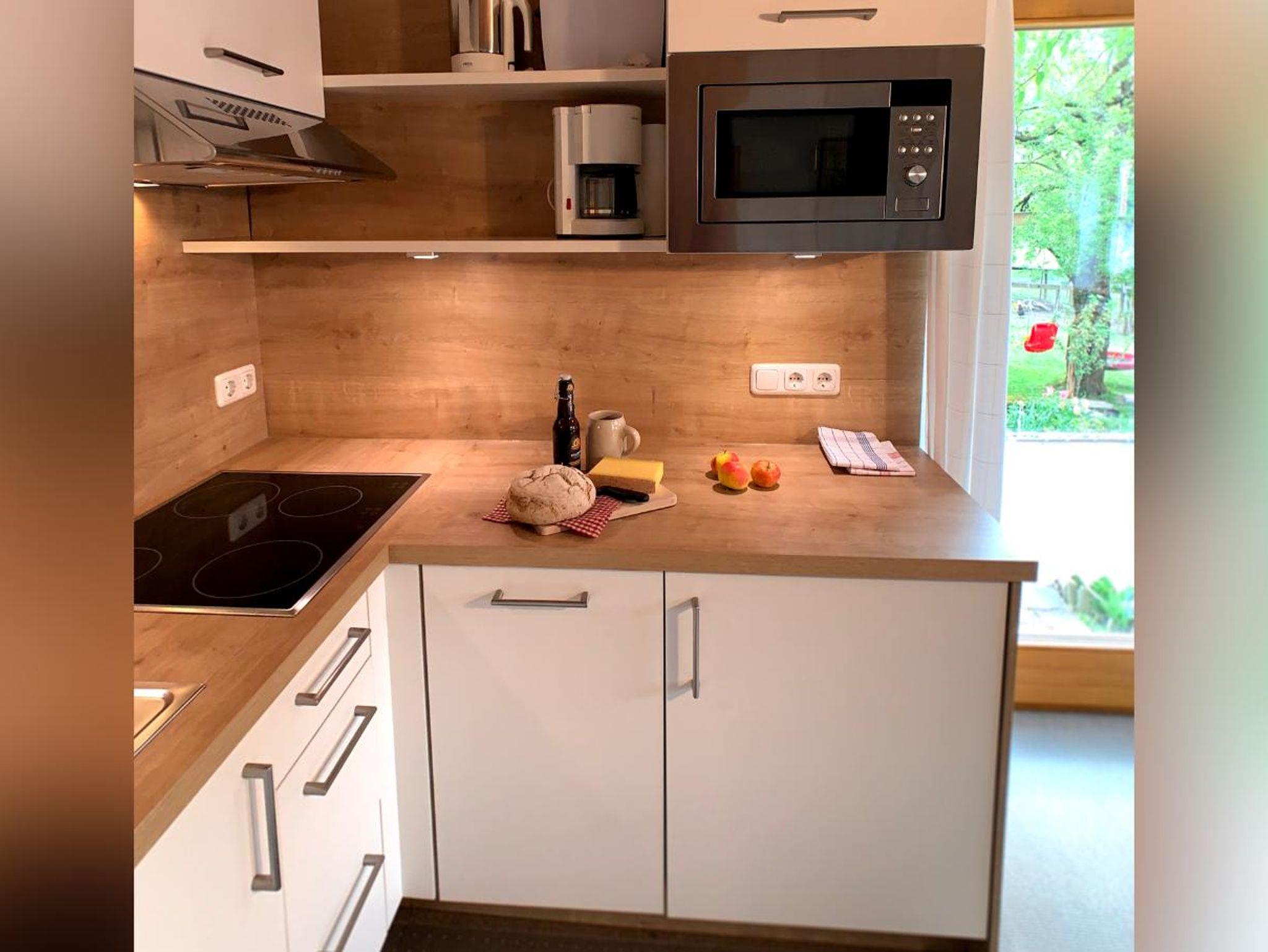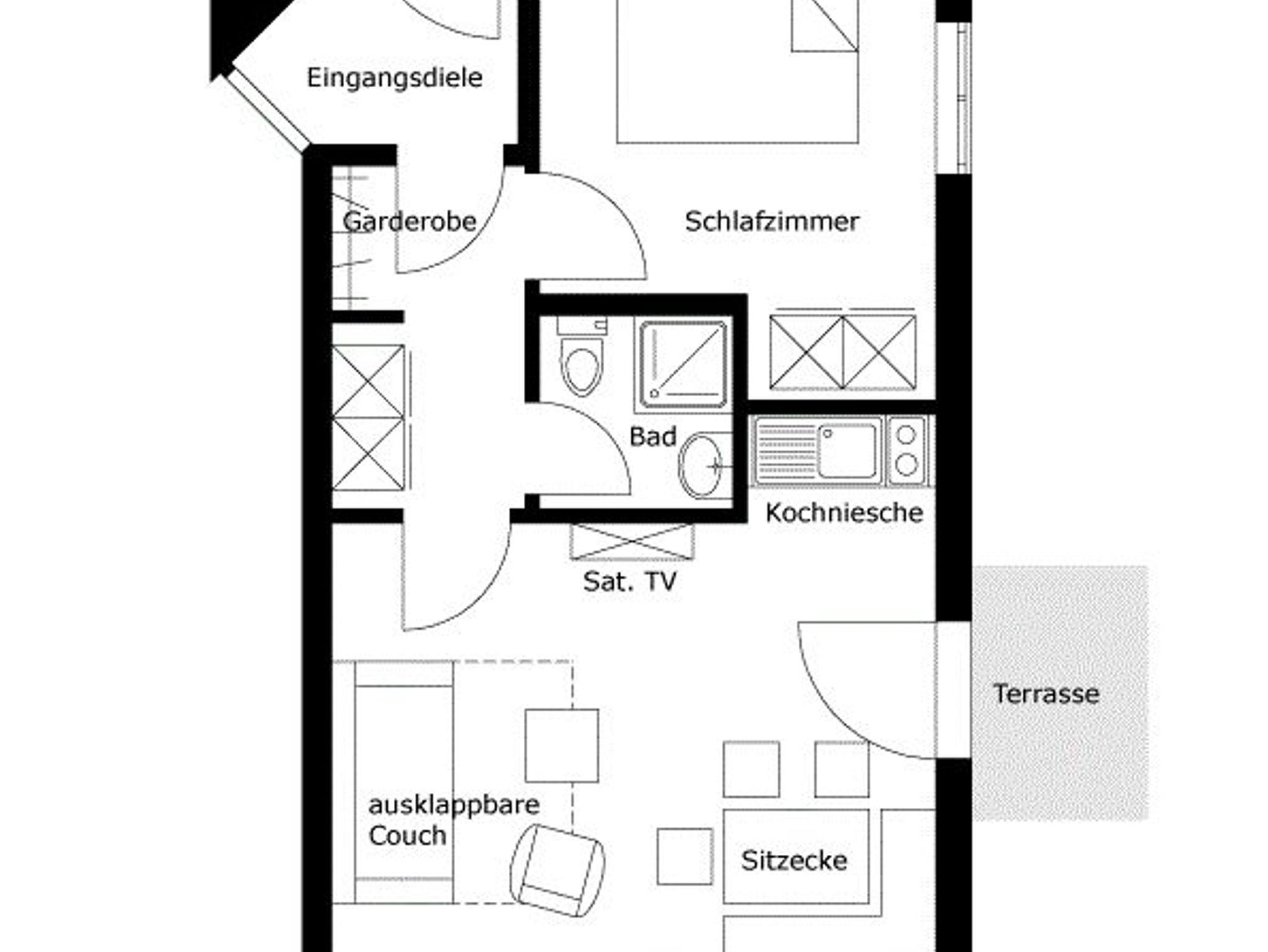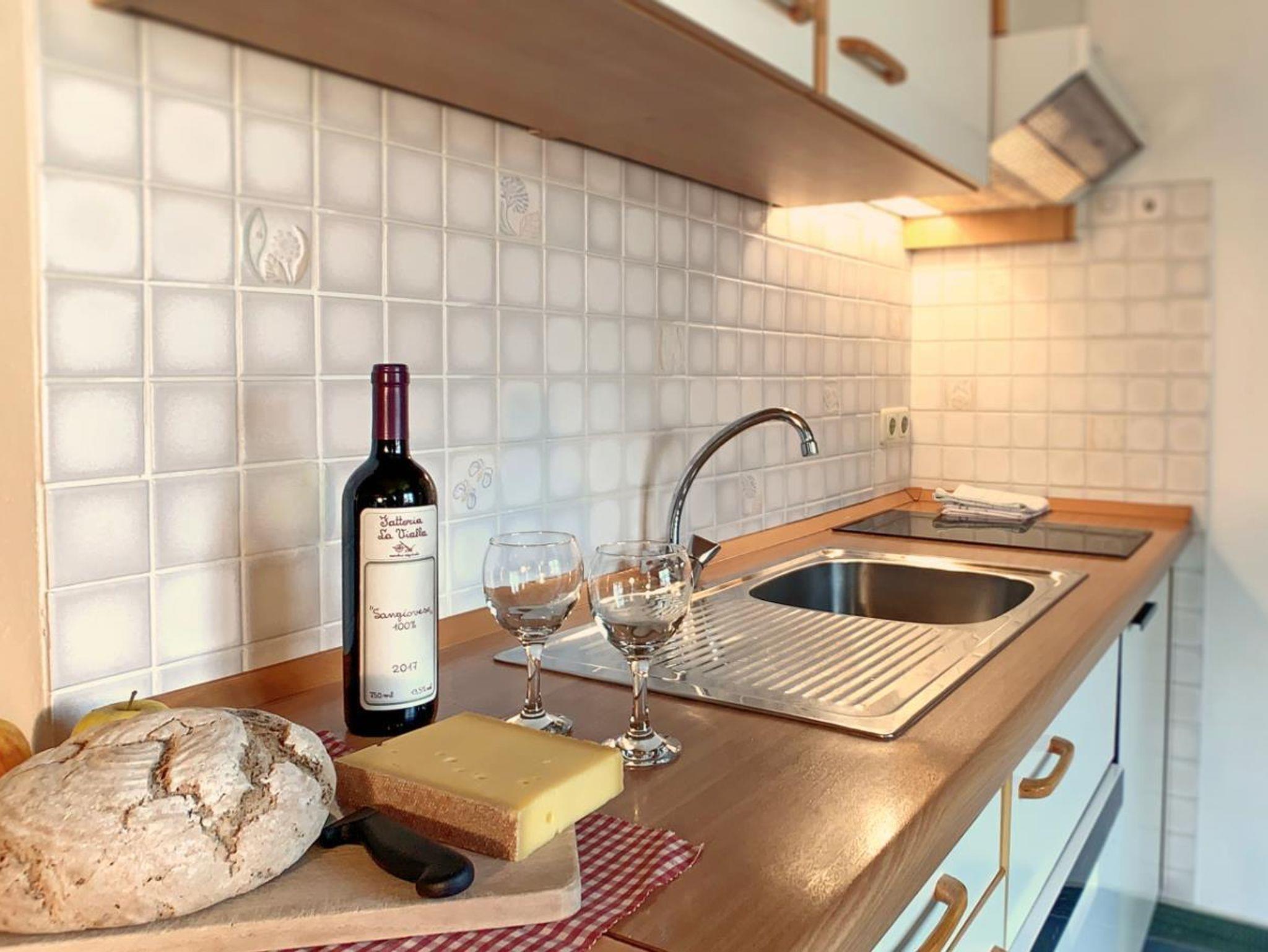 Unsere Wohnung Gams mit Terrasse ist eingeteilt in ein Schlafzimmer mit Doppelbett, ein Wohnzimmer mit Küchenzeile, sowie Dusche (Fön)/WC und Flur. Getrennte Schlafmöglichkeit vorhanden. Die Küche ist ausgestattet mit 4-Plattenherd, Spülmaschine, Mikrowelle, Kaffeemaschine, Wasserkocher und ausreichend Geschirr. Die Möblierung ist hell und freundlich.