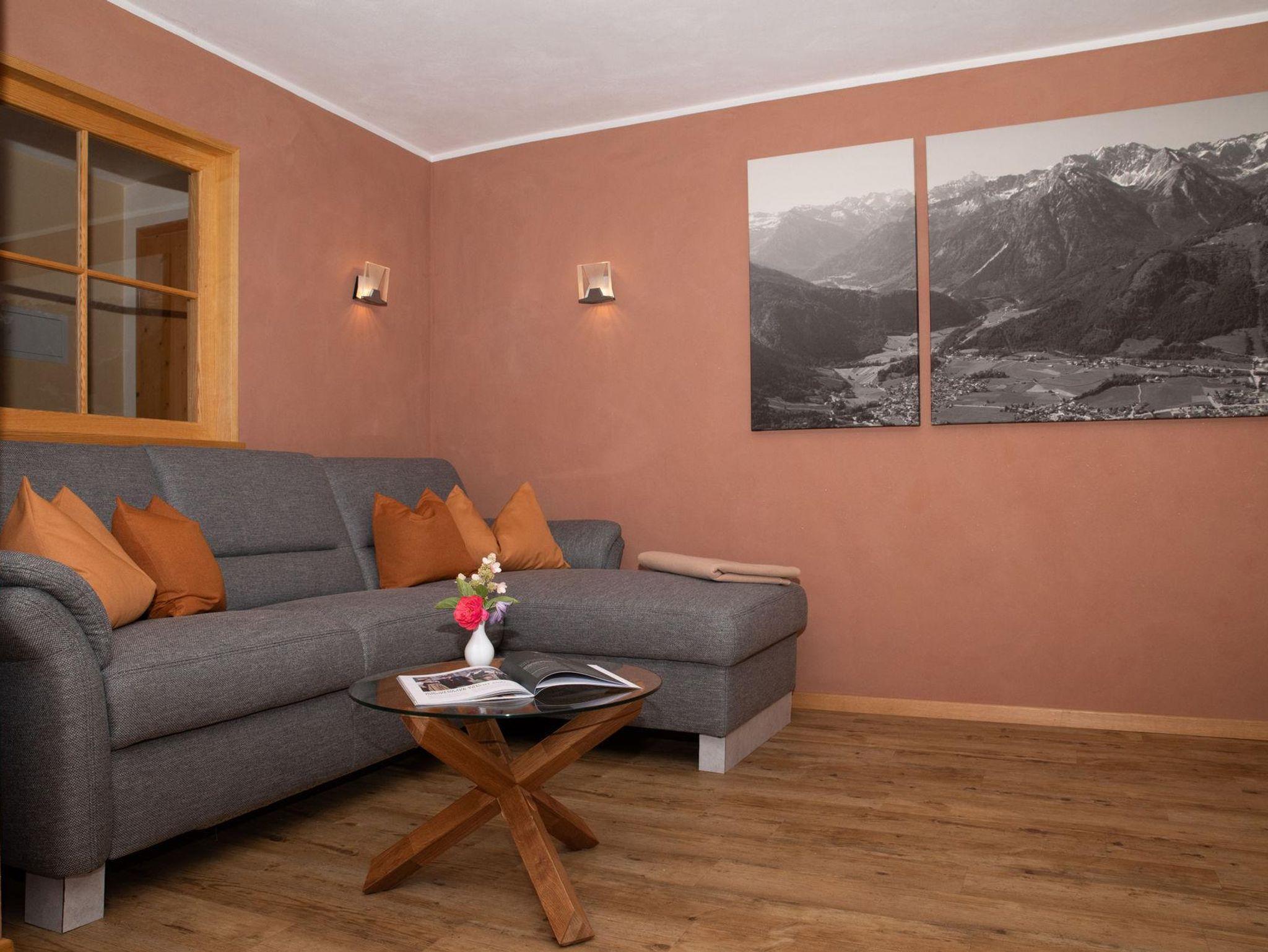 Die allergikerfreundliche 4*Wohnung ist 35qm groß, verfügt über 1 sep. Schlafzimmer (Betten mit Komforthöhe und 2,10 m Länge), DU/WC, einem großen Wohnraum mit Sitz-und Eßecke und komplett eingerichteter Kochnische, großer, überdachter Südbalkon mit freiem, traumhaften Bergblick.Getrennte Schlafmöglichkeit vorhanden.
