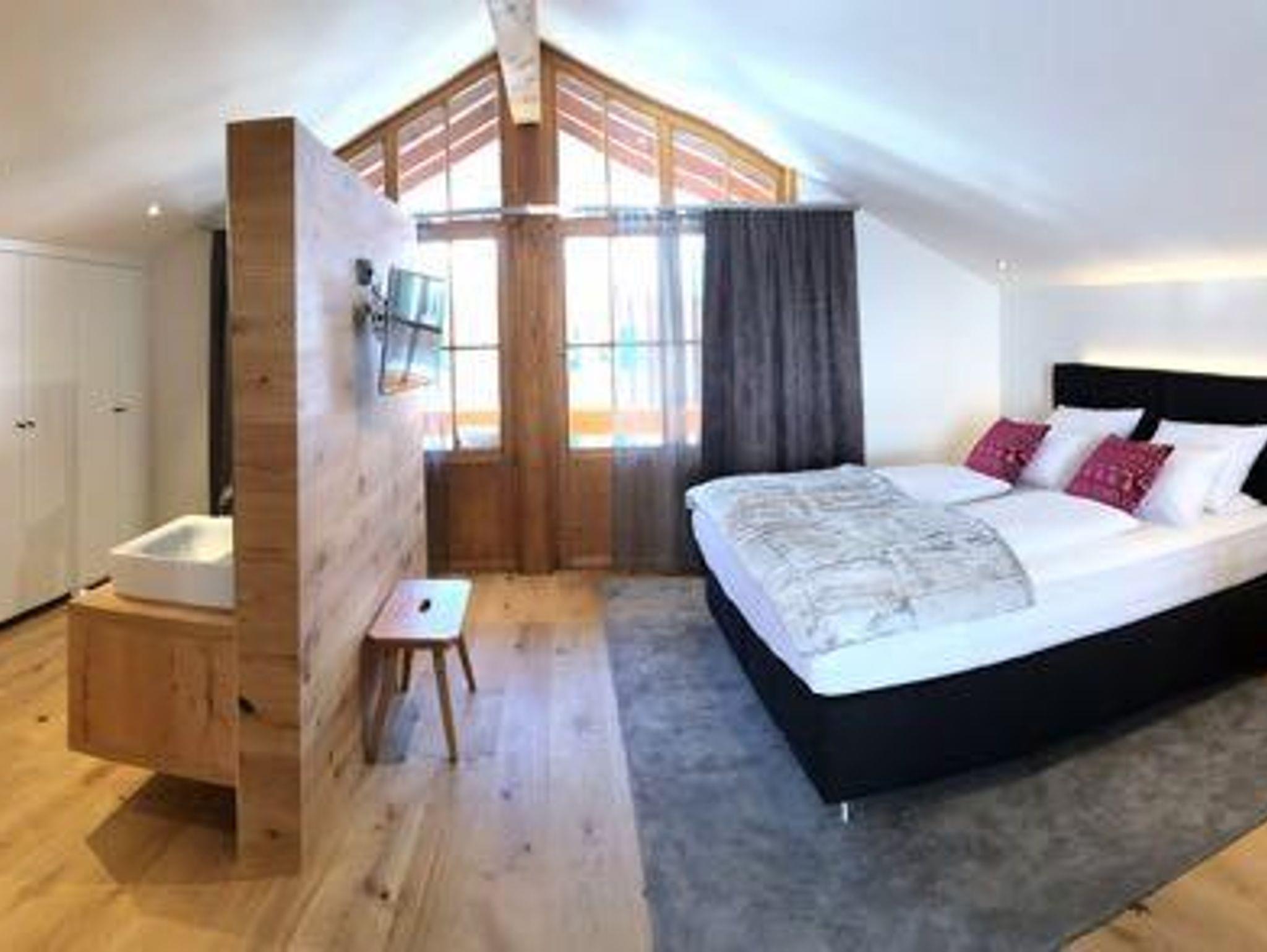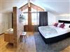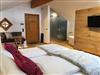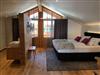 Offener Giebel und separater Eingang. Das Herzog Max-Alpin Chalet ist etwas ganz besonderes. Wohn-, Schlafbereich mit offenem Waschtisch und freier Badewanne nur optisch sehr schön abgetrennt. Holzboden, Boxspringbett, edle Stoffe. Dusche, WC, Doppelwaschtisch, Haarföhn, Radio, Fernseher (Satelliten-TV), WLAN, Kühlschrank und Kaffeemaschine, Balkon mit herrlichem Blick auf die Berge. Wohnfl. ca. 45 m² für zwei Personen, Schlafcouch für 1 Kind.