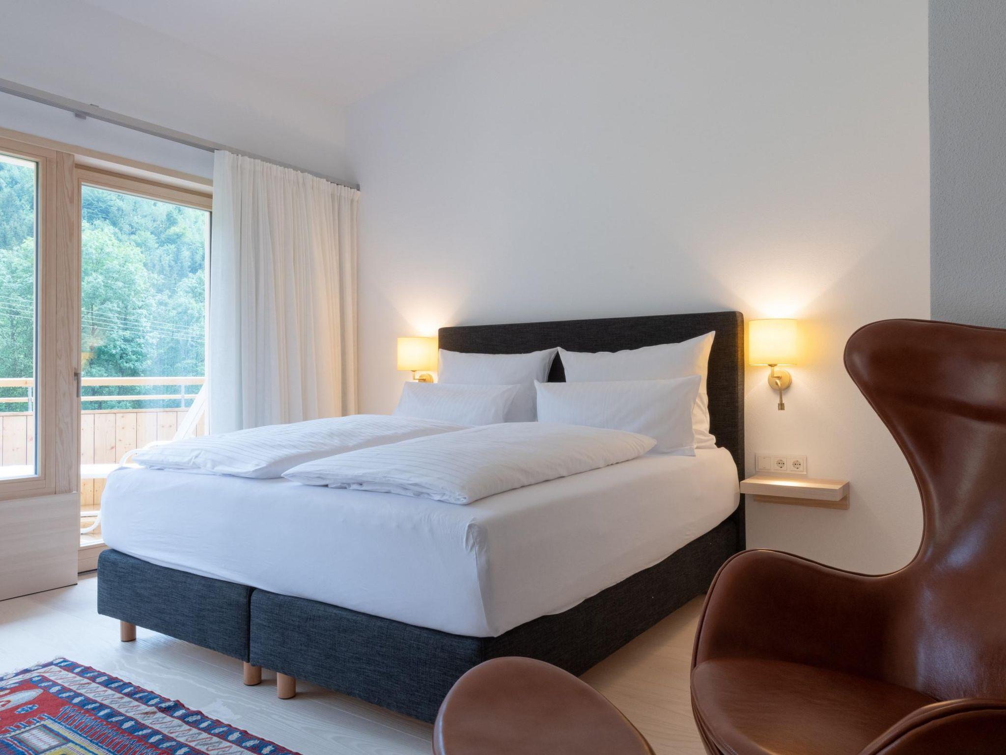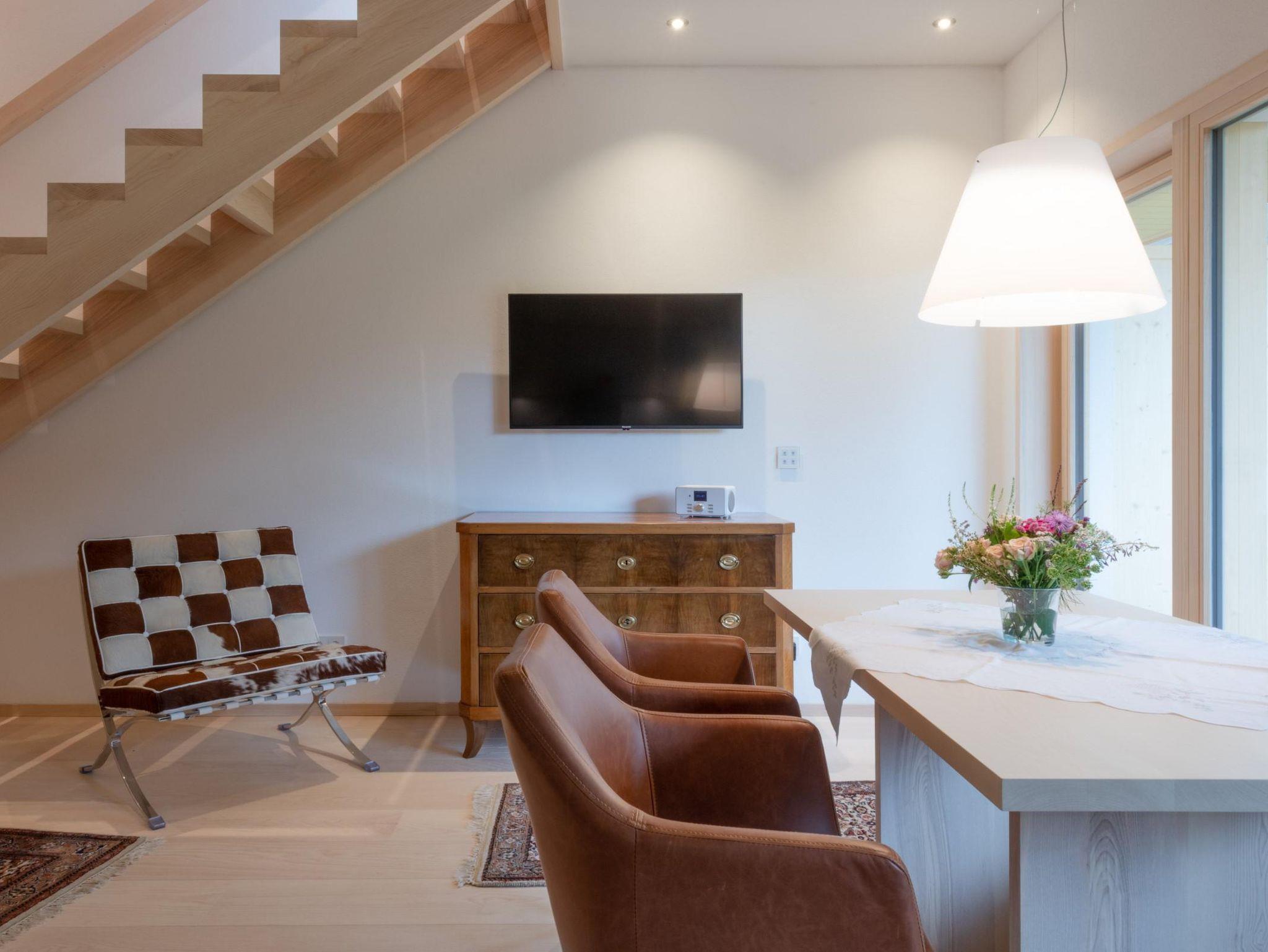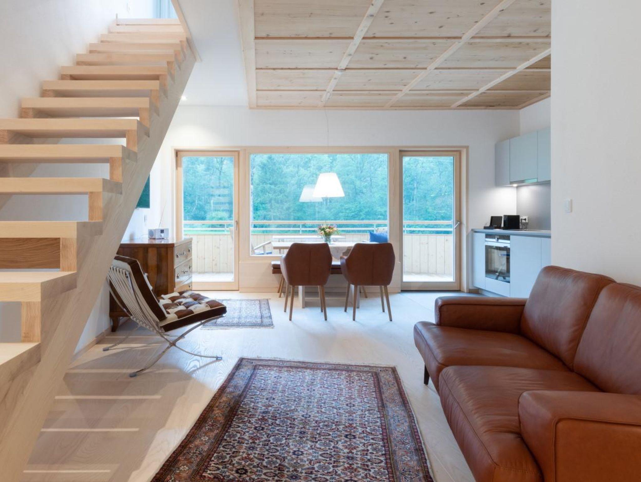 Unsere 70qm große Maisonette Wohnung auf 2 Etagen mit überdachten Südbalkonen lädt Sie zum Sonnenbaden ein. Im Erdgeschoss befindet sich eine offene Wohnküche, das Wohnzimmer und eine separate Toilette. Über eine Treppe gelangen Sie in Ihr großzügiges Schlafzimmer und ins Badezimmer. Von Ihrem hochwertigem Boxspringbett von180x200cm haben Sie einen schönen Blick in die Natur. Bei Anreise ist der Kühlschrank einmalig für Sie mit Butter, Milch, Käse, Honig, Eier, Brot und Alpschinken gefüllt.