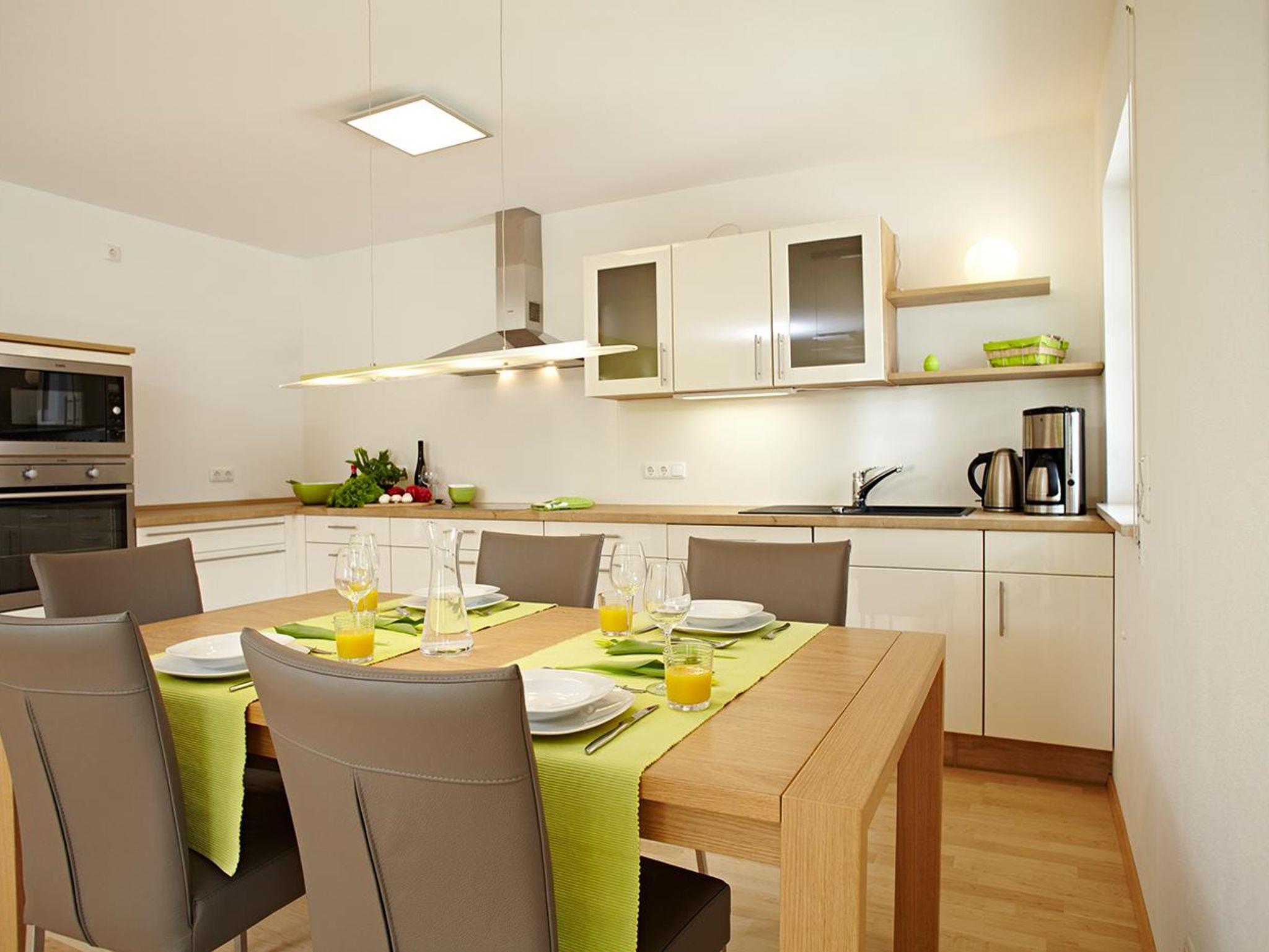 Ihre Wohnung wurde 2013 neu errichtet und 2023 renoviert; ist geräumig sowie komfortabel eingerichtet. Sie ist vom dazugehörigen Tiefgaragenstellplatz Nr. 28 bequem per Aufzug zu erreichen. Im Wohnzimmer ist ausgestattet mit Coach und Sesseln sowie einem internetfähigen TV. Die angrenzende Küche ist sowohl geräte- als auch geschirrseitg gut ausgestattet. Ein Esstisch mit Sitzgelegenheiten für 6 Personen ergänzen den Wohn-/Essbereich. Die Wohnung bietet Doppelbettzimmer (mit zusätzlichem Fernsehr), ein Dreibettzimmer (mit Schreibtisch und Kindersitzgruppe), ein Bad mit Dusche, Wanne und WC, ein separates WC, eine Terrasse sowie leistungsfähigem Internet.