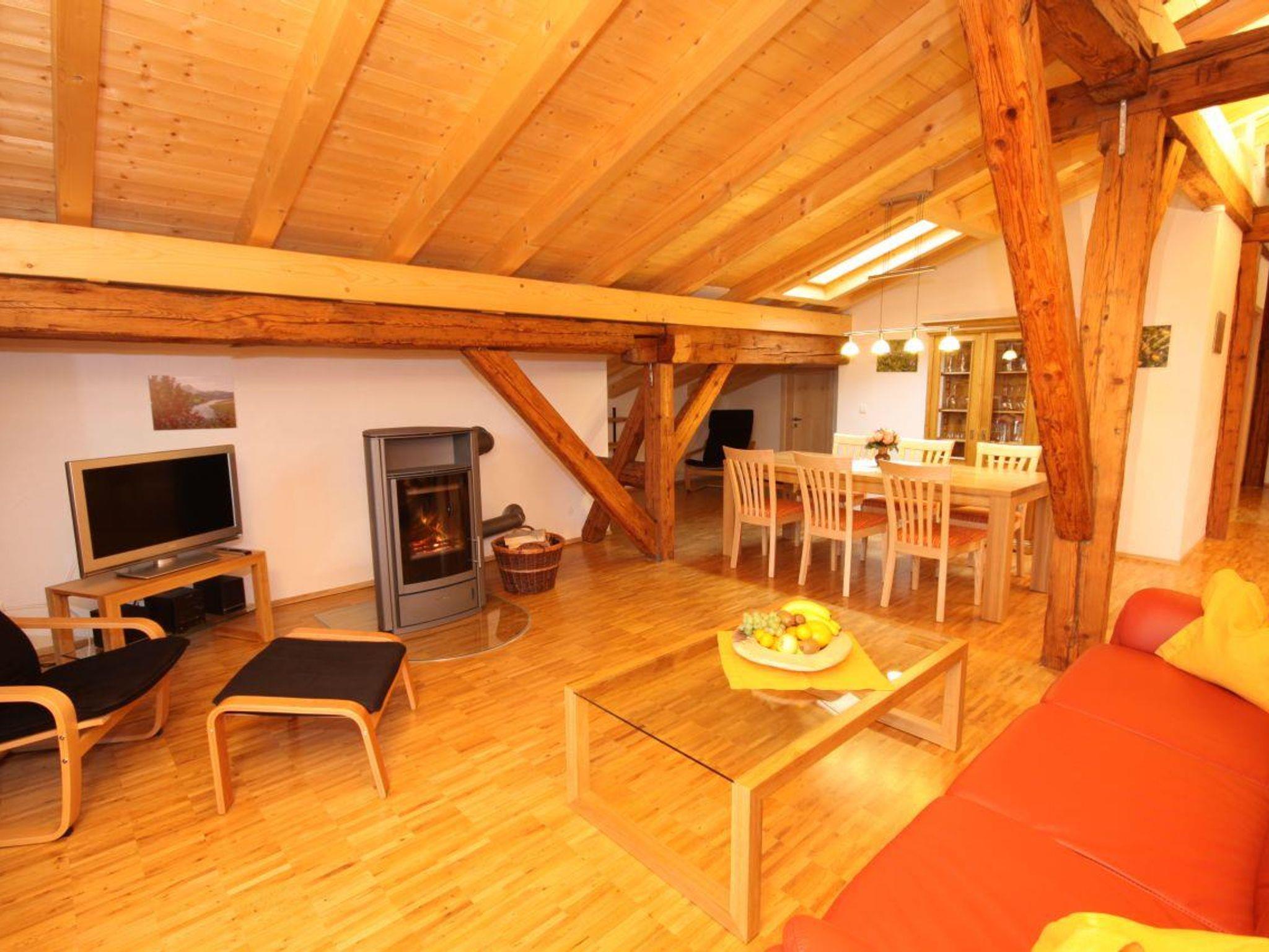 Die 100 qm große, 5-Sterne-Ferienwohnung mit W-LAN, innen liegendem Westbalkon im Dachgeschoß hat zwei Schlafzimmer mit Doppelbetten, eine komplett eingerichteten Küche mit Spülmaschine, die offen zum Essbereich und Wohnraum hin ist. Im sehr geräumigen Wohnraum mit großem Esstisch,einer Couch, zwei bequemen Sesseln,TV und einem herrlichen Kaminofen werden Sie sich bestimmt wohl fühlen. Die Wohnung ist mit Fußbodenheizung ausgestattet, hat Bad mit Dusche,Badewanne und WC und ein separates WC