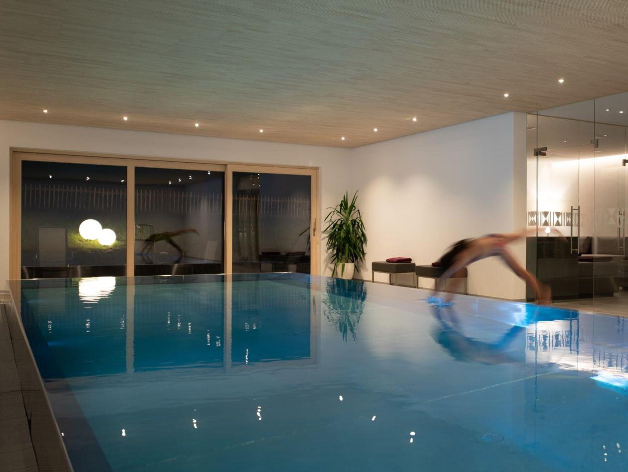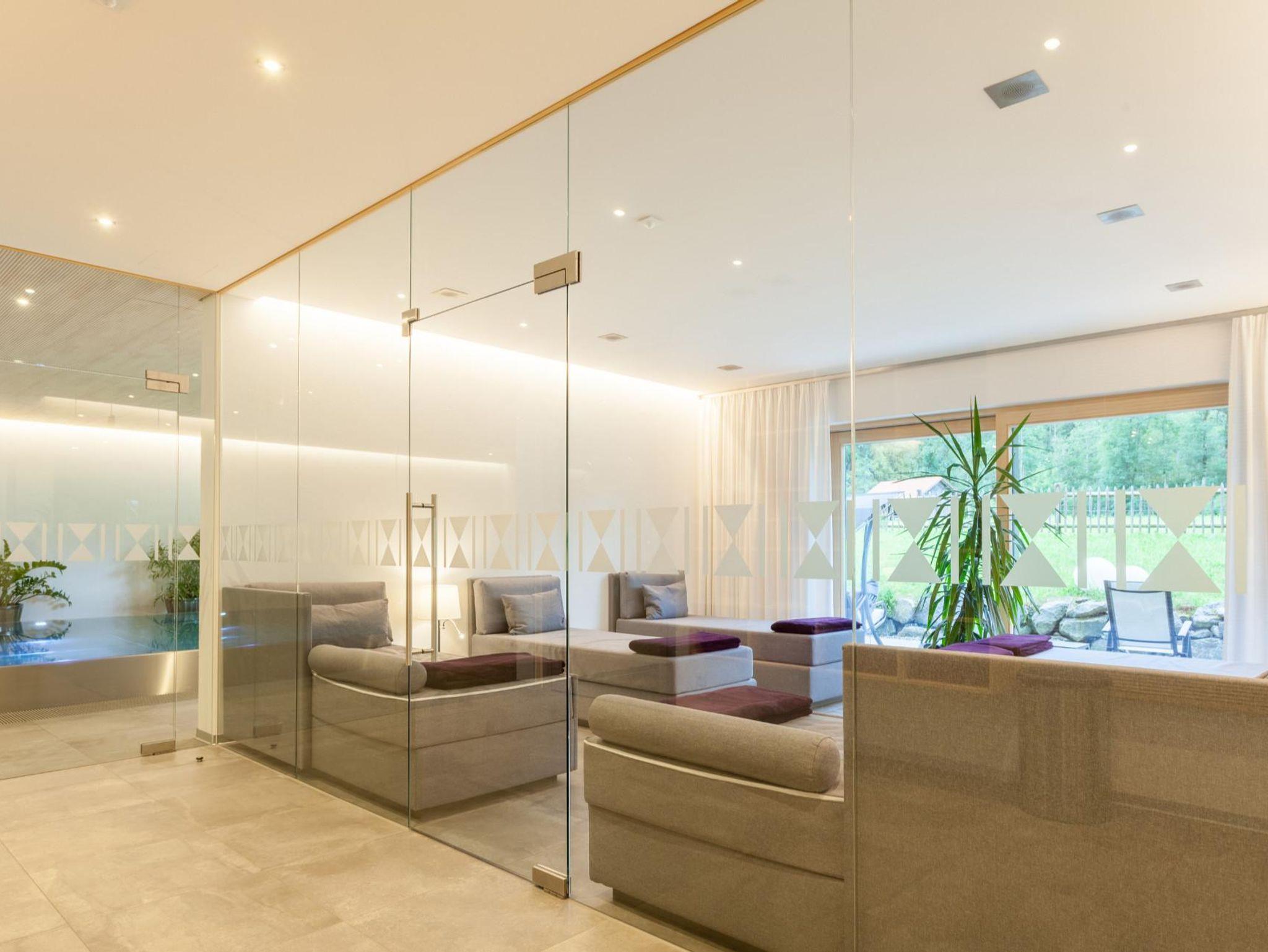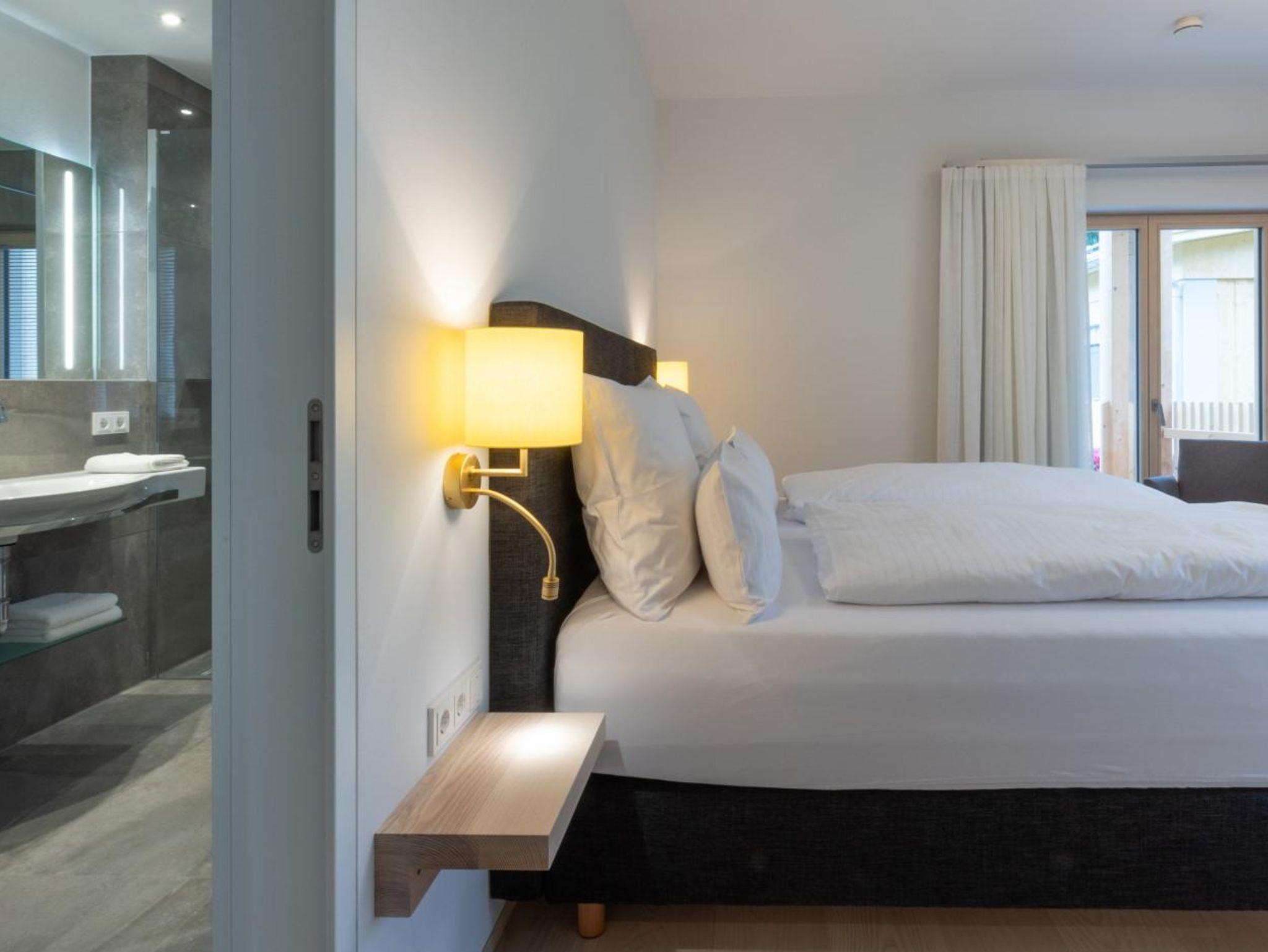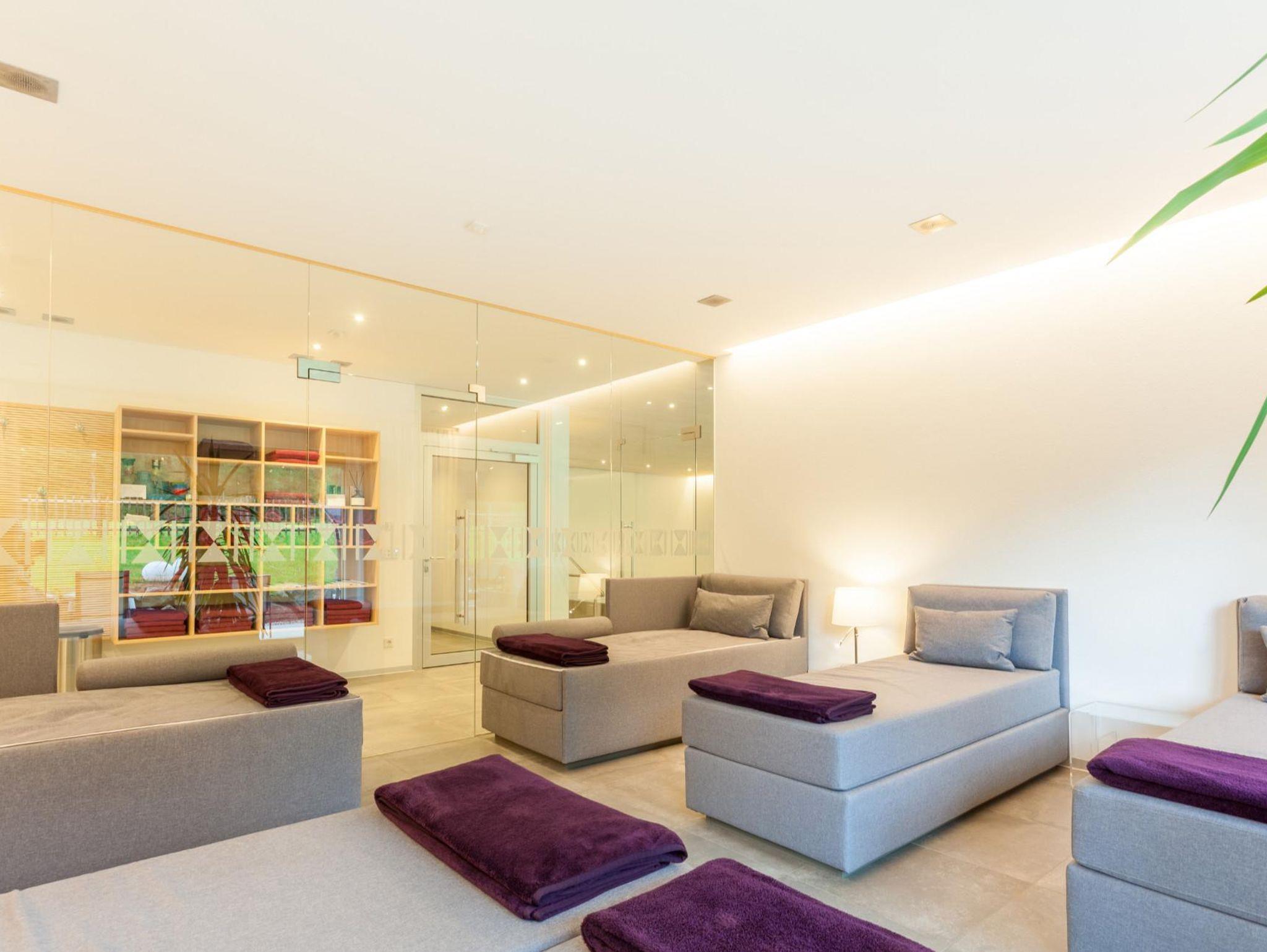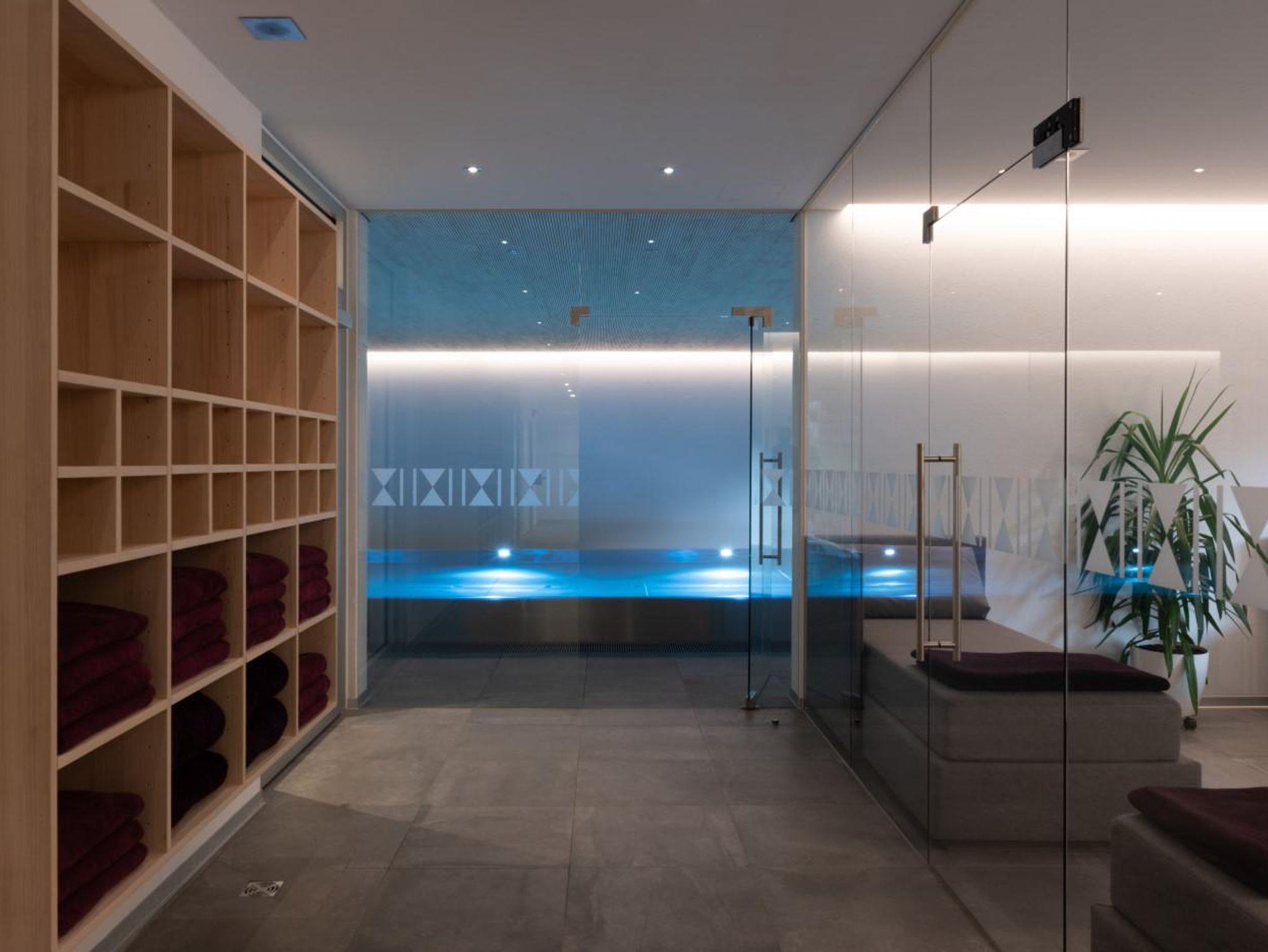 Entschleunigen Sie in unserem Wellnessbereich mit Schwimmbad, Finnischer Sauna, Infrarot-Thermium, Außen-Whirlpool, gemütlichem Ruheraum, Kollagen-Solarium und Sonnenterrasse. Fühlen Sie sich in unseren 6 hochwertigen, individuell gestalteten Wohnungen wie zu Hause.