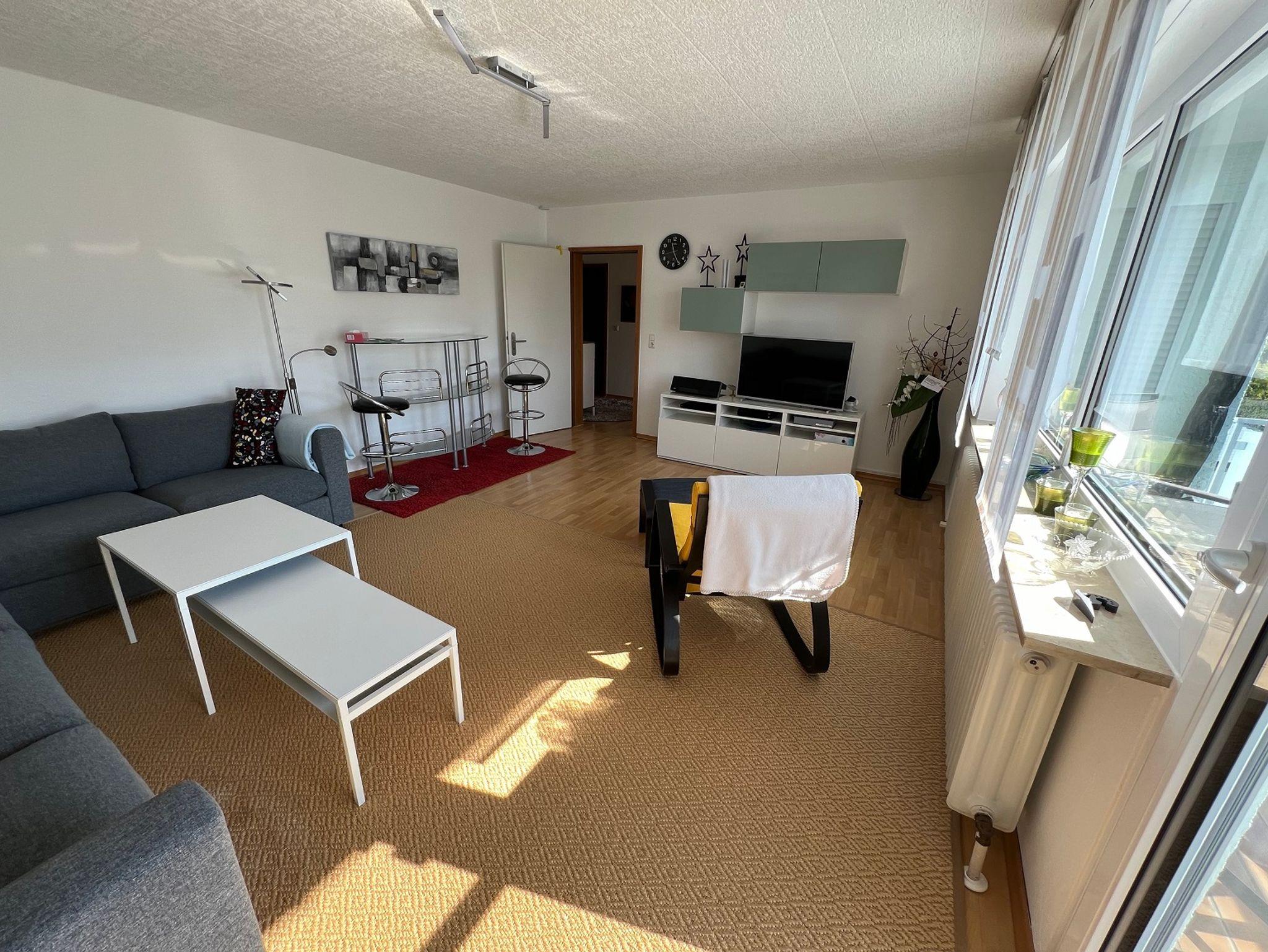 Es gibt zwei helle Schlafzimmer (1 Schlafzimmer mit Doppelbett, 1 Schlafzimmer mit 2 Einzelbetten), ein großes Wohnzimmer (mit 43 Zoll Smart-TV) sowie einen überdachten Südbalkon, der zum Verweilen einlädt.
