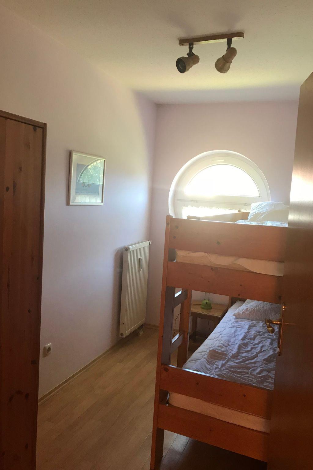 The spacious flat has two separate bedrooms - one with a comfortable double bed and the other with a large bunk bed. A cot and high chair can be booked free of charge for our youngest guests. The functional eat-in kitchen is fully equipped so that you can cater for yourself during your stay.