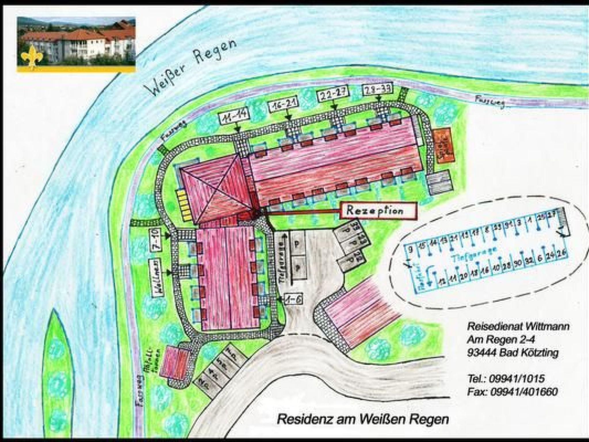 Well-kept apartment complex, close to the centre yet surrounded by greenery, idyllically situated on a romantic bend in the river. Our special service for you - daily three hours free stay in the complete AQACUR wellness world incl. giant tyre slide, spacious sauna area with outdoor sauna, whirlpool, various types of sauna, saltwater pool and outdoor pool area (the day of departure is not included) - underground parking space and bicycle storage - washing machine and dryer for a fee - breakfast can be booked on site, half board is also available (approx. 5 minutes walk away) - free use of bus and train - pets welcome for a fee - free cot/high chair can be booked free of charge approx. 5 minutes walk away is the spa park with motor skills park, children's playground, mini golf and many walking paths as well as a small café/restaurant. The Lindner brewery with its own brewery, beer garden and rustic home cooking is also approx. 5 minutes' walk away. There is a bakery about 2 minutes' walk away, which offers fresh bread rolls every day. Wifi can be provided free of charge, simply collect the relevant data from reception. In the reception you will receive all information about excursions and much more.short descriptionOther : Non smoking houseShort description 1Number of kitchens : 1Other rooms : Kitchen/living roomLiving room 1Other living room equipment : Living room with dining area and fully equipped kitchen with either balcony or terrace, either ground floor, I. and II. floor, you have the choice. The choice is yours. In the living area there is a double sofa bed, which you are welcome to useSurroundingsLeisure facilities : boat hire, bike hire, ski, snowboard or sledge hireSports facilities in the surrounding area : Fishing, mountaineering, football pitch, ice skating, golf course, hunting, canoeing, climbing, mountain biking, paragliding, cycle tours, indoor riding centre, riding arena / riding facilities, tobogganing, rowing, cross-country skiing, alpine skiing, squash, tennisSurroundings 1Excursion possibilities : Bayerwaldtierpark Lohberg am Großen Arber, Liebl and Drexler in Bad Kötzting - Bärwurzerei with schnapps museum and adventure garden, carriage rides and trail rides - Flederwisch, Wildgarten and Felsengänge in Furth i. Wald, adventure for young and old, Drachensee invites you to go hiking and water sports, boat trips and canoe tours for every taste, Weinfurtner and Joska - glass paradises to touch and experience, motor skills park in Bad Kötzting, Miltach Castle with castle shop, pottery and jazz cellar, Hoher Bogen with summer toboggan run, grass karting and ski jumping facility, Beekeeping Weiß - visit to the bee museum with guided tour and sample tasting as well as behind-the-glass apiary, the leisure fun makers in St. Englmar: WaldWifpelWEg with nature adventure trail, summer toboggan run with evening tobogganing and leisure adventure park (admission free), bullcart summer lift Grün with downhill rides, Churpfalzpark Loifling near Cham for young and old amusement park, Pullman City - western town for young and old, Waldwipfelpfad Neureichenau, the so-called. "Ei", Fürstenzeche with guided tour, silver mine in Bodenmais with mine and small amusement park, Blaibacher See and Höllensteinsee invite you to "Schifferl fahren "Local description : Bad Kötzting - a young Kneipp spa - is perfect if you are looking for colourful hustle and bustle in an idyllic location: Treat yourself to a shopping spree, try your luck in the casino, sample the schnapps from the Liebl and Drexler distillery, explore the spa gardens with miniature golf, children's playground and motor skills park, Kneipp pool and beautiful walking trails, starting point for many hikes and cycle tours as well as the hiking busOther sports and leisure facilities : Inline trails, cycling, Nordic walking and terrain spa trails, paragliding, Segway tours, horse riding, fishing, archery, summer toboggan runs and wildlife garden with underwater observation, rocky passages and bat wipe - experience adventure and try it out for yourself, garden and outdoor facilitiesRecreational facilities at the property : Steam bath, indoor pool for shared use, sauna, solarium, swimming pool, whirlpoolGarden equipment : Garden furniture available