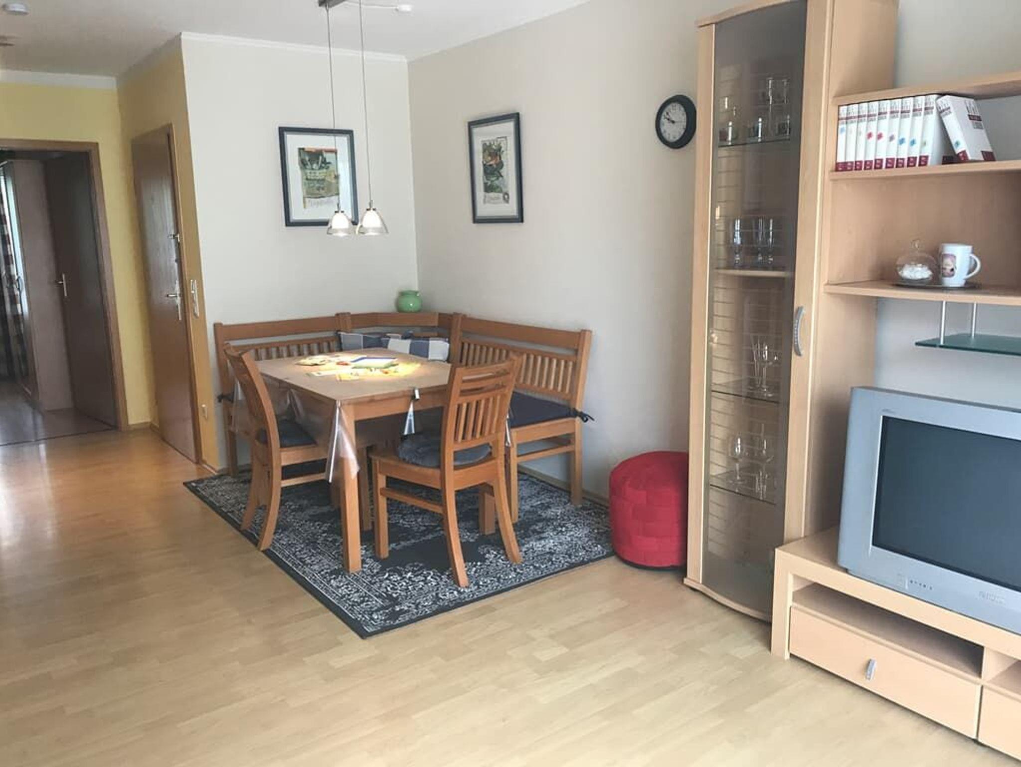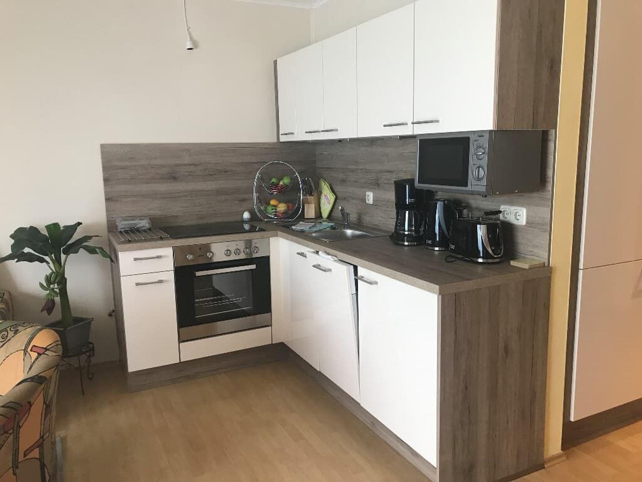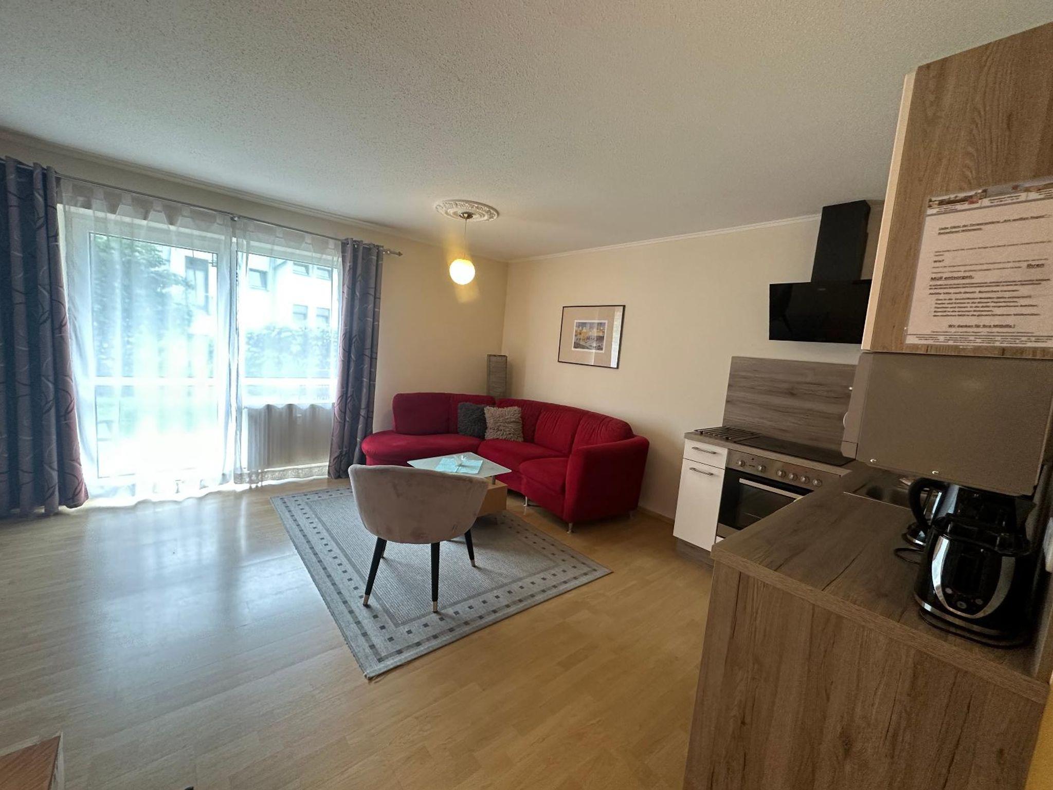 Das Appartement mit Terrasse und neuer Ausstattung verfügt über einen Wohn-Schlafraum mit kompl. ausgestatteter neuer Küche mit Spülmaschine, Mikrowelle, Wasserkocher, Kühlschrank mit Gefrierfach,Sat-TV, einen sep. Schlafraum mit Doppelbett, im Wohnraum Sofa. Es befindet sich ein Badezimmer mit Dusche/WC und Fön im Appartement. Es steht ein Außenstellplatz zur Verfügung. Es ist kein Eintritt ins AQACUR enthalten!