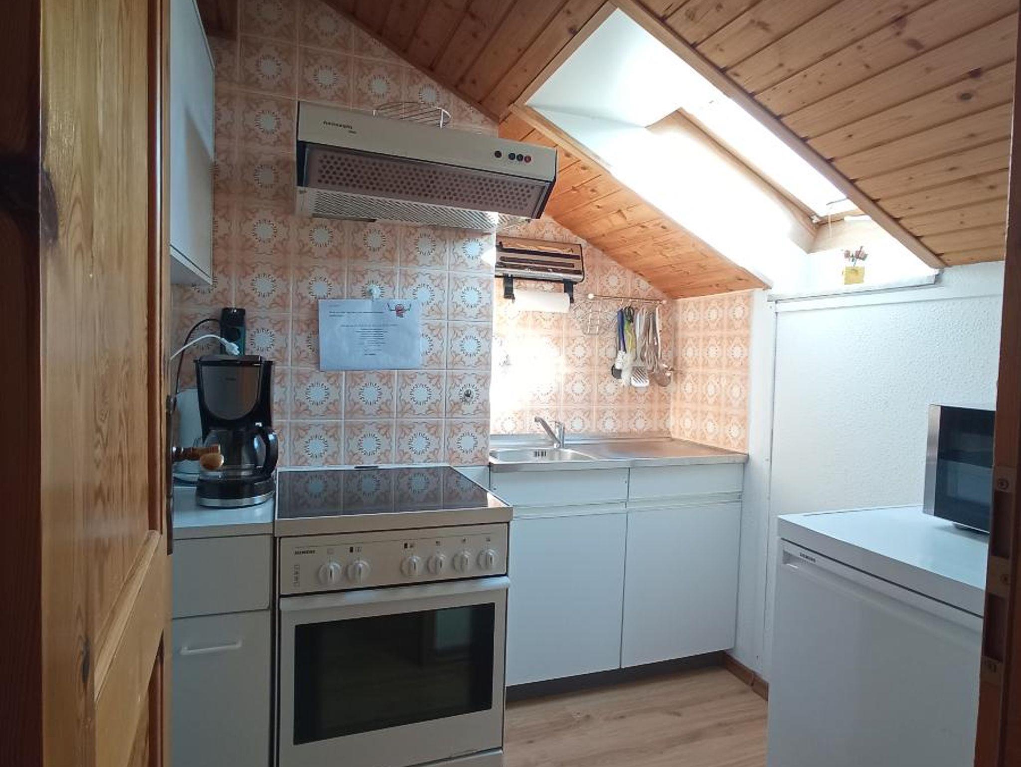 Küche: 4-Platten-E-Herd mit Backrohr, Kühlschrank,