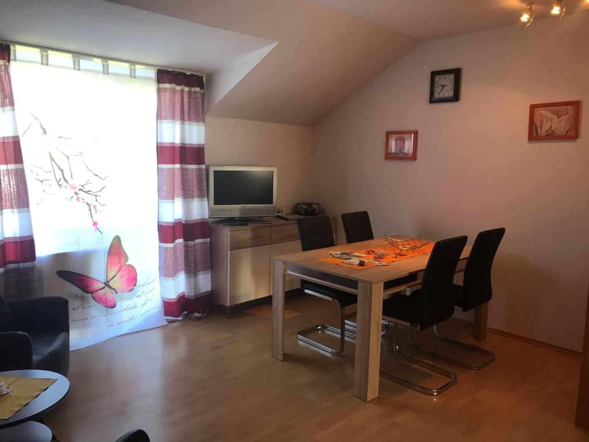 Im Wohnraum befindet sich eine ausgestattete Küche sowie eine Essecke. Die Gäste haben den kostenfreien Eintritt in die Bade- und Saunawelt AQACUR inklusive.