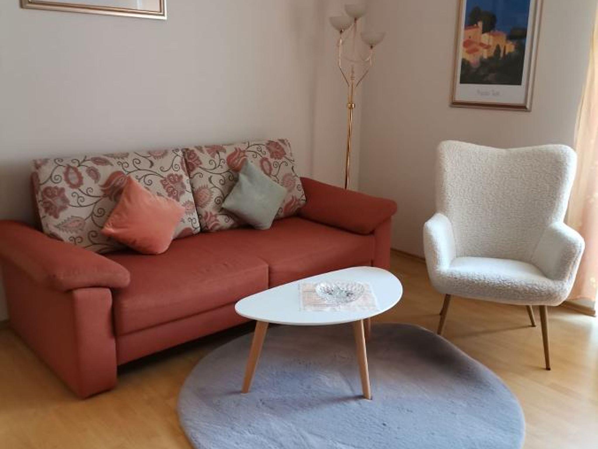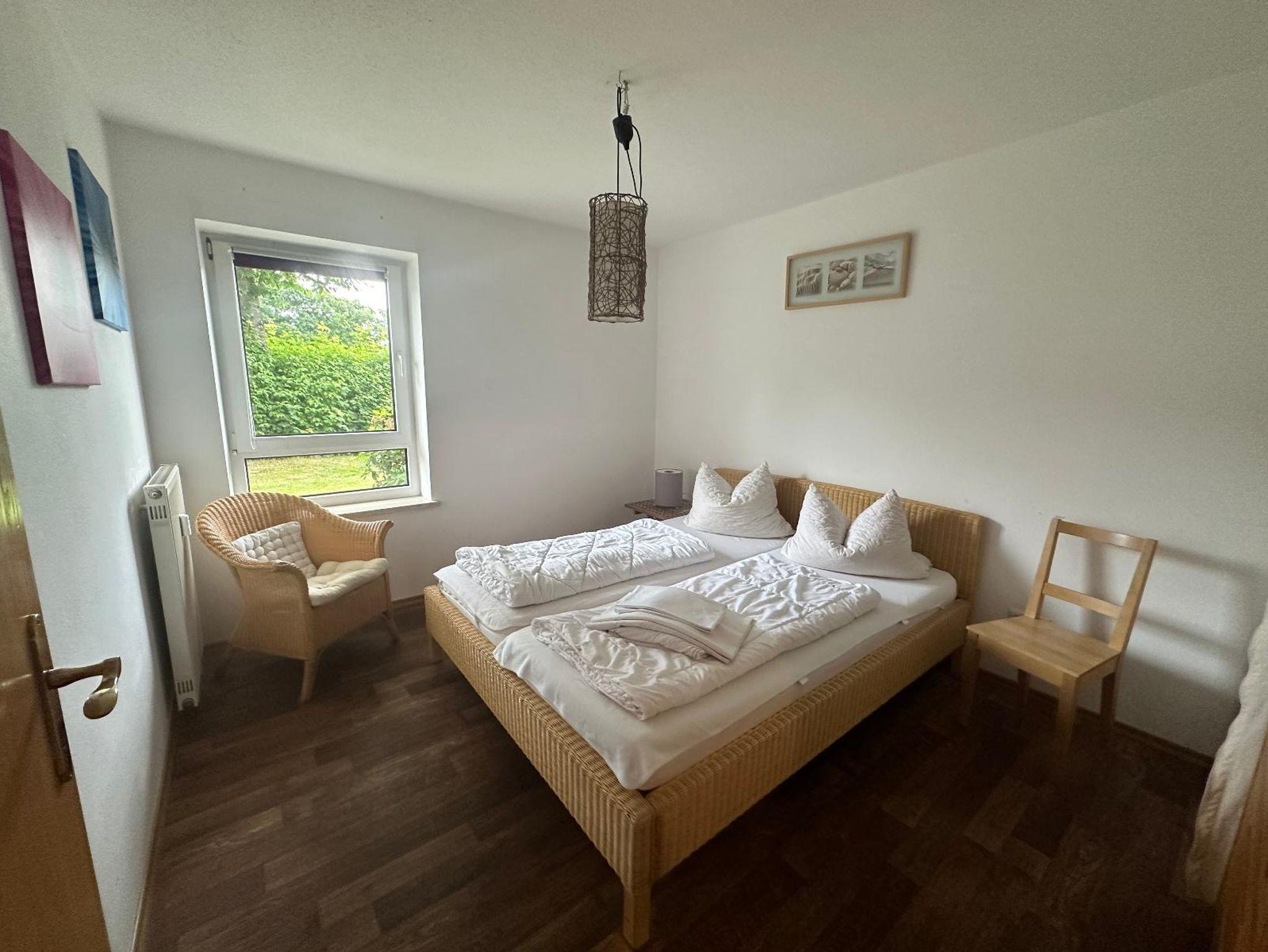 Ferienappartement mit zwei sep. Schlafräumen für 1-5 Personen mit jew. zwei Betten, einmal ein Doppelbett und einmal ein großes Etagenbett), im Wohnraum befindet sich ein Schlafsofa für 1 Person, entweder Terrasse