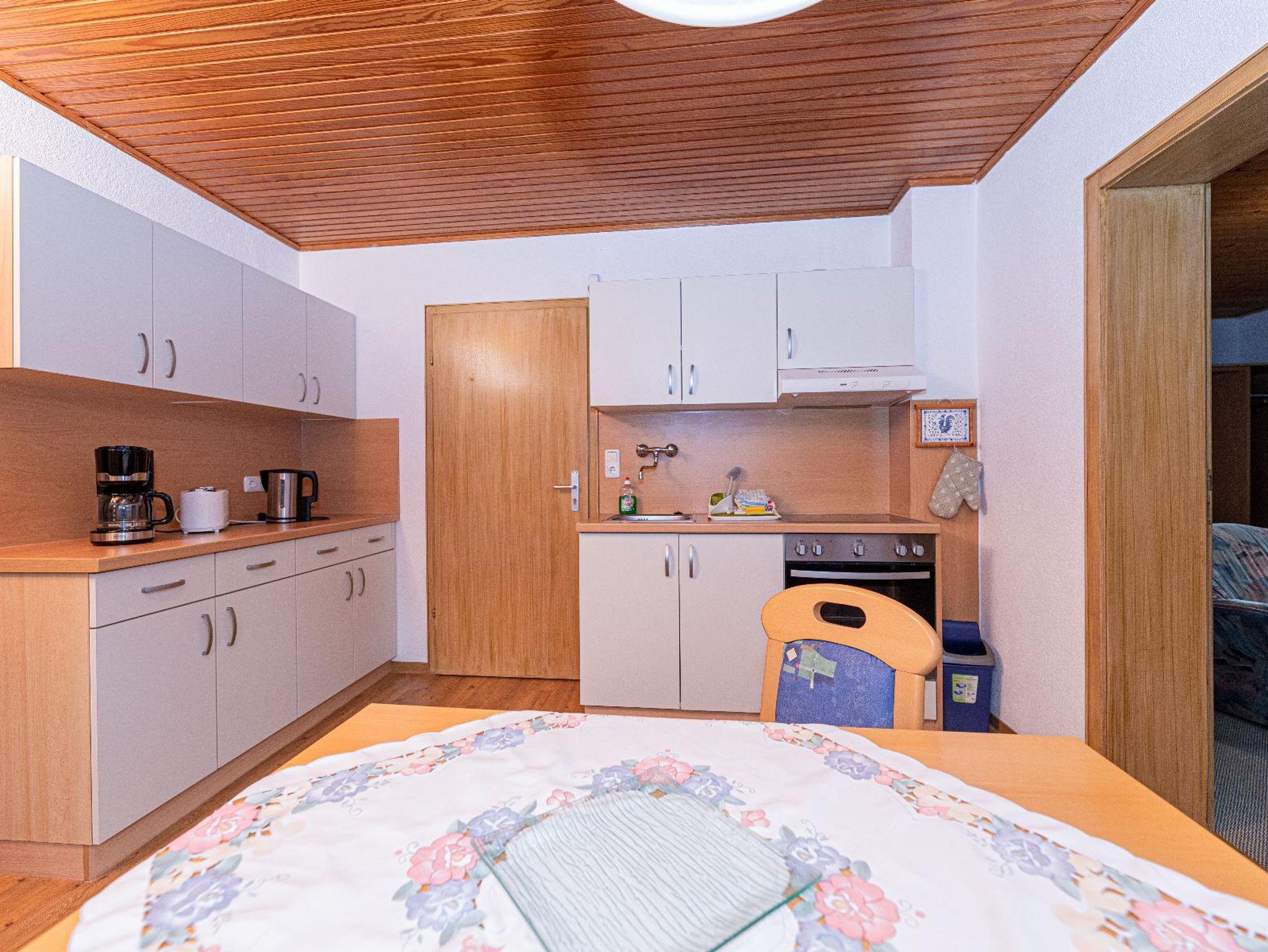 Ferienwohnung - Austragsstüberl (44 qm) für zwei Personen: Die Ferienwohung mit einem Wohn-/Schlafzimmer (Doppelbett), Sitzgarnitur, Sat-TV und Radio, Wohnküche mit Eßecke und Küchenzeile (Mikrowelle, Kaffeemaschine, Wasserkocher, Toaster, Ceranfeld, Backofen). Badezimmer mit Dusche und WC, Balkon. Bettwäsche und Handtücher werden gestellt. .