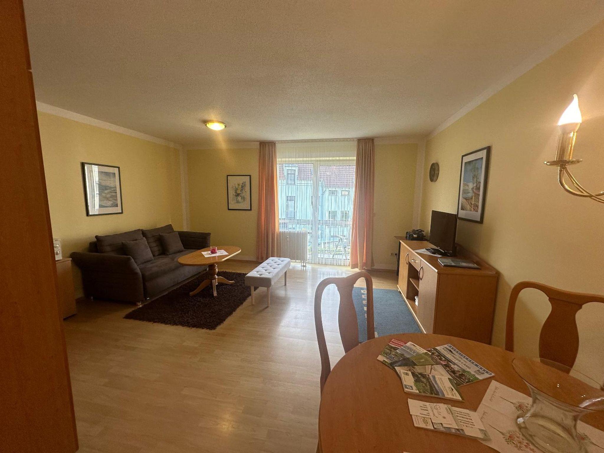 Ferienappartement mit einem sep. Schlafraum für 2 Personen mit Wohnküche, entweder Terrasse oder Balkon. Das Appartement verfügt über ein Badezimmer mit Dusche/WC und Fön. Im Wohnraum befindet sich eine ausgestattete Küche sowie ein Essplatz. Hier ist der Eintritt in die Bade- und Saunawelt für 2 Personen enthalten für 3 Std. täglich.