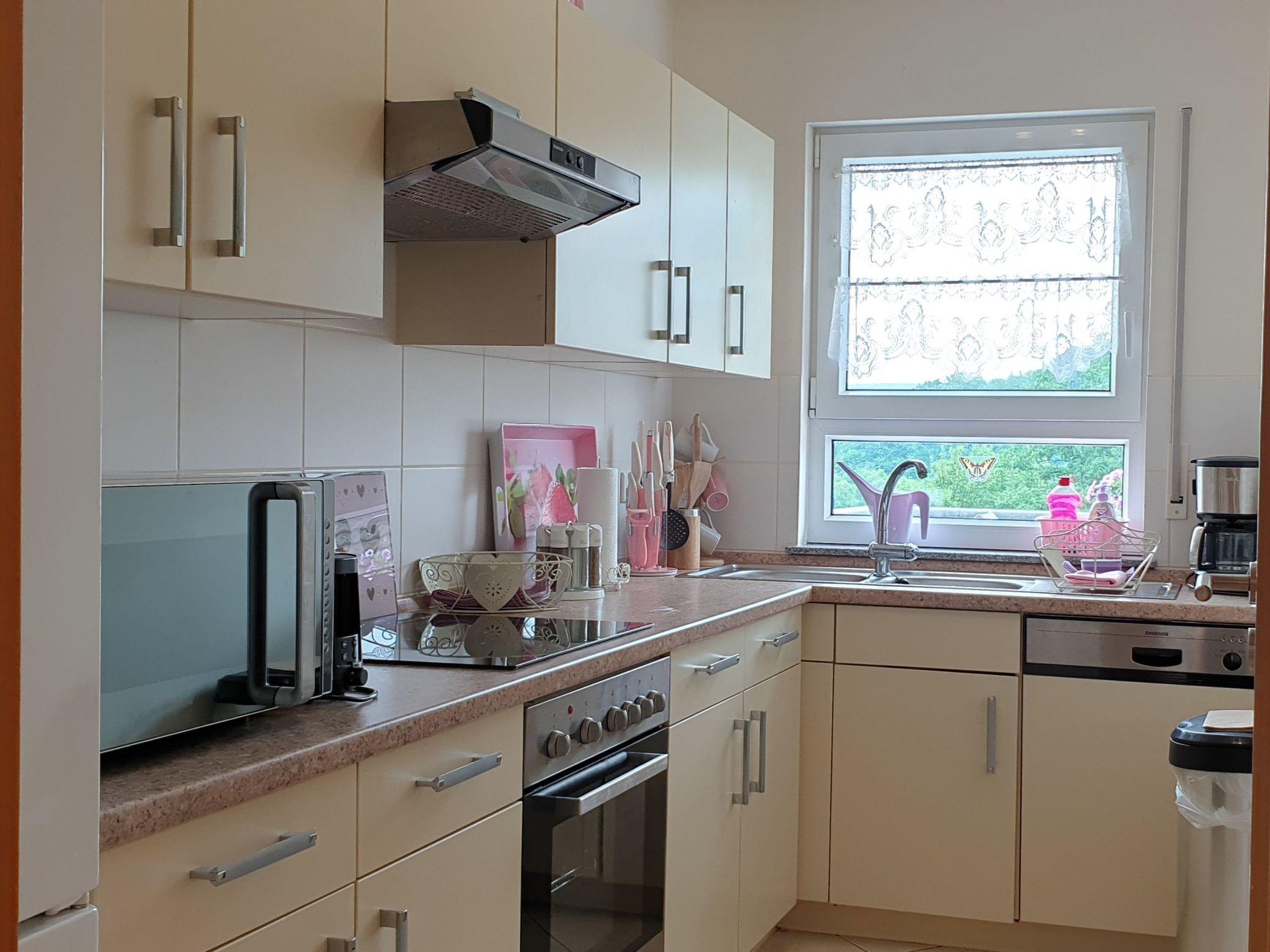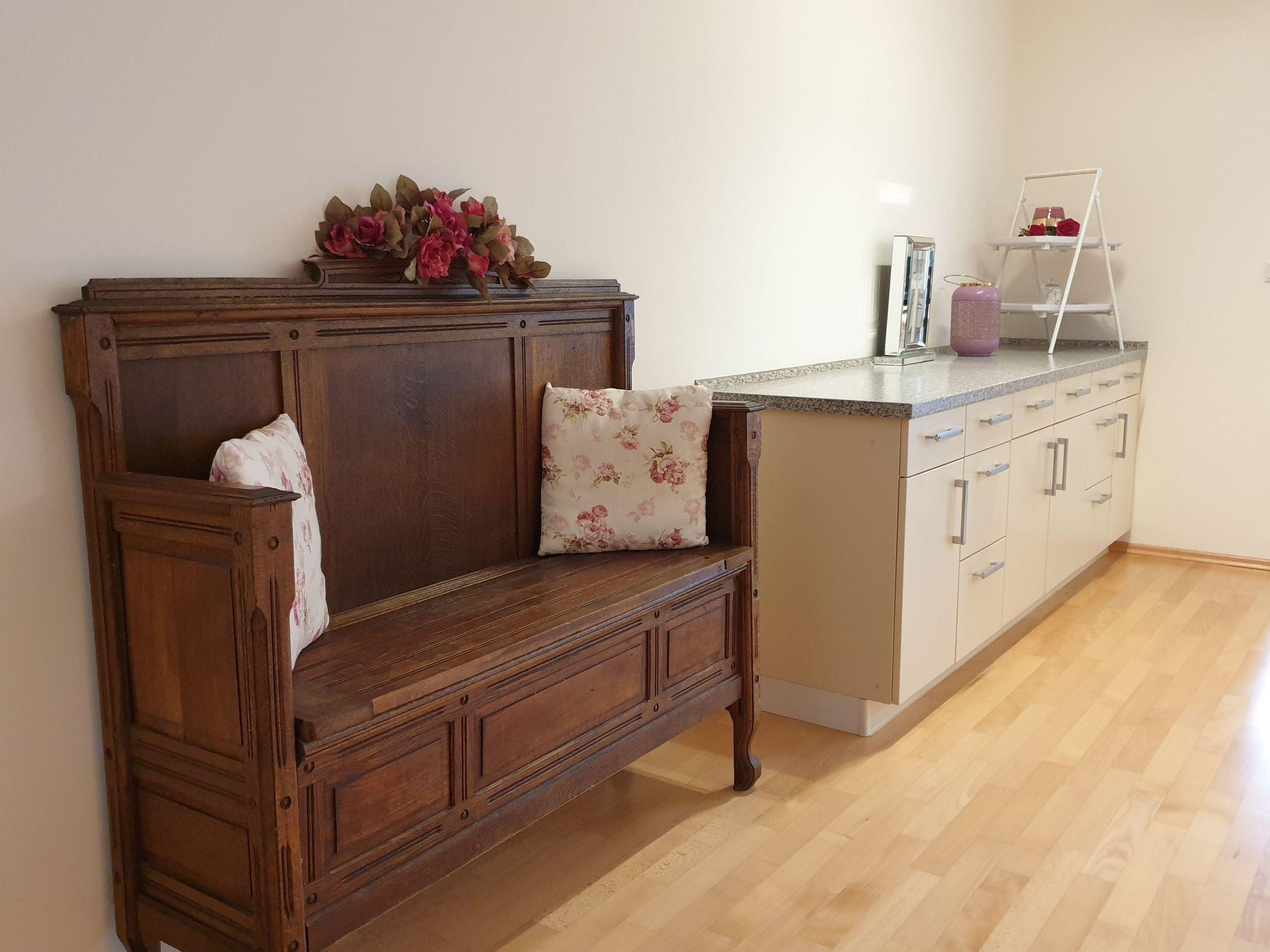 The highlight of our apartment is the large balcony, accessible from the living room and offering outdoor furniture for you to dine or unwind while taking in views of the town. Here, you can bask in the tranquility of Bad Kissingen’s scenic environment, making it an ideal spot for those peaceful morning coffees or late-night conversations. Smoking is permitted on the balcony, provided the kitchen window and living room doors are kept closed.