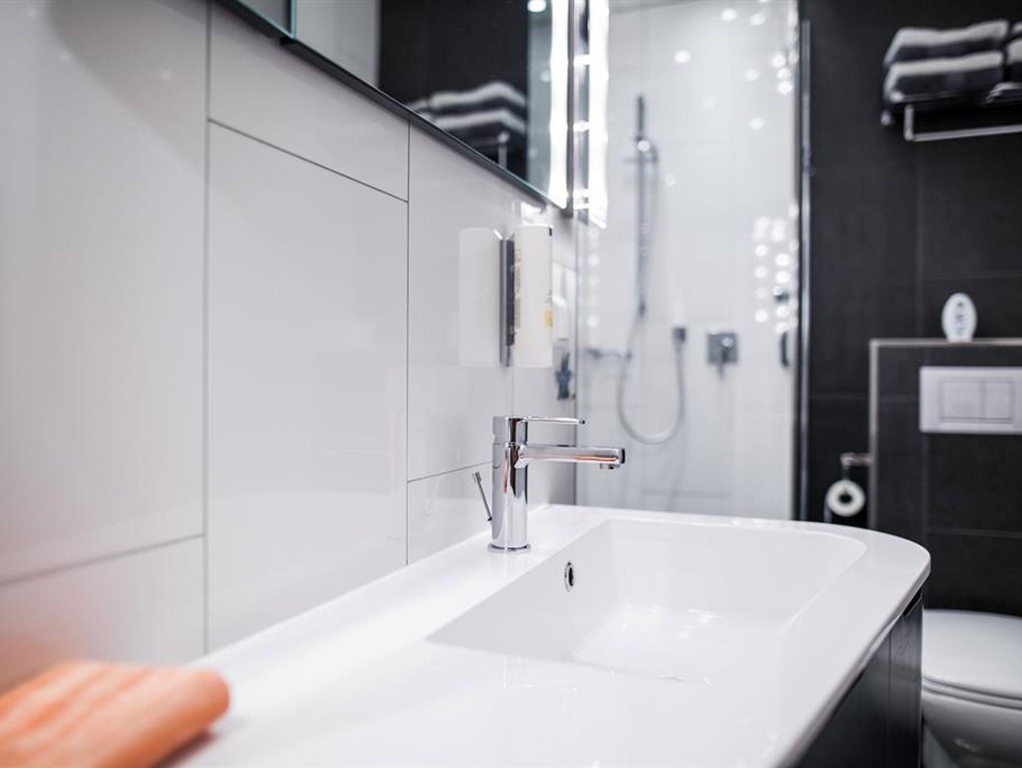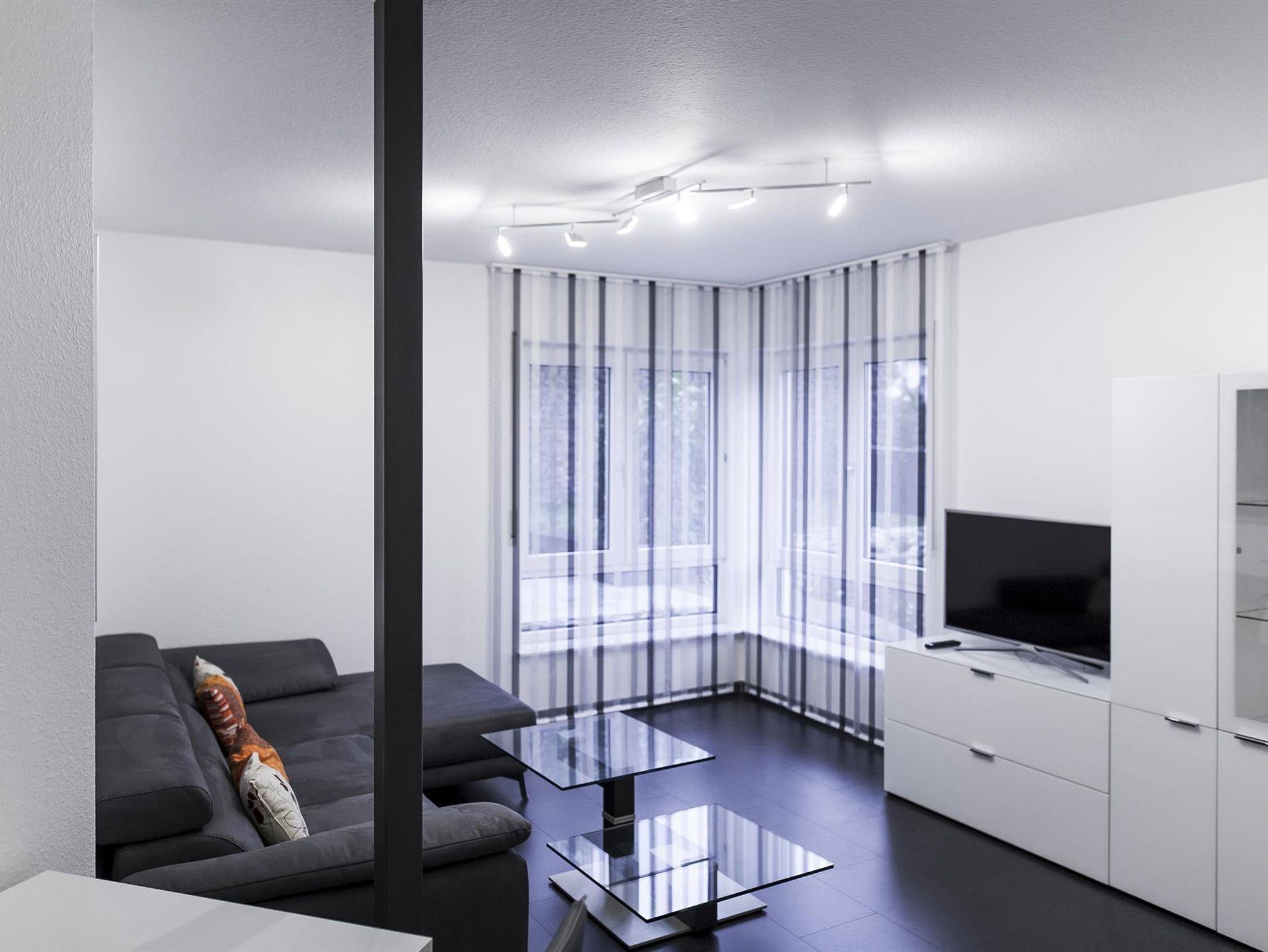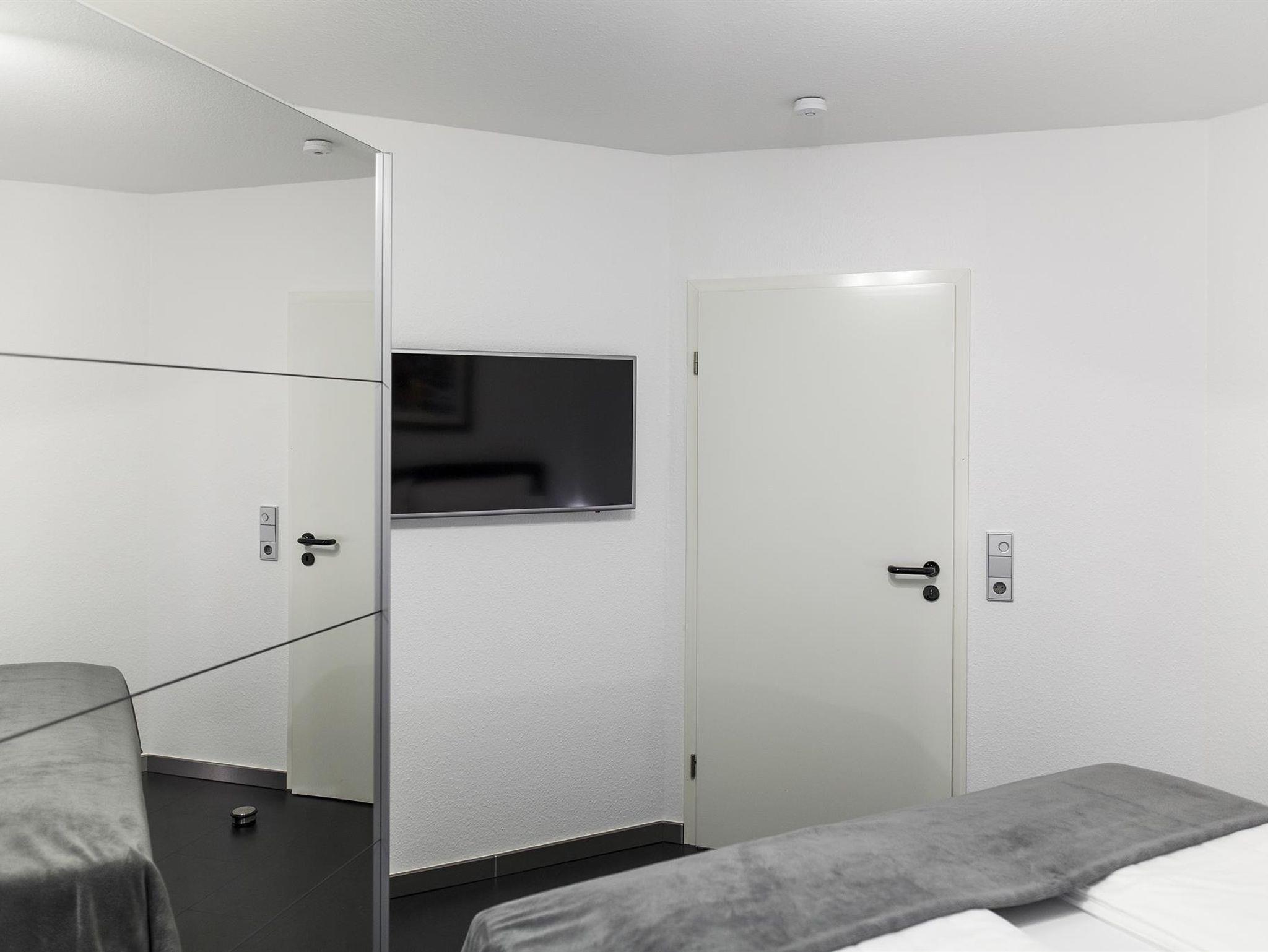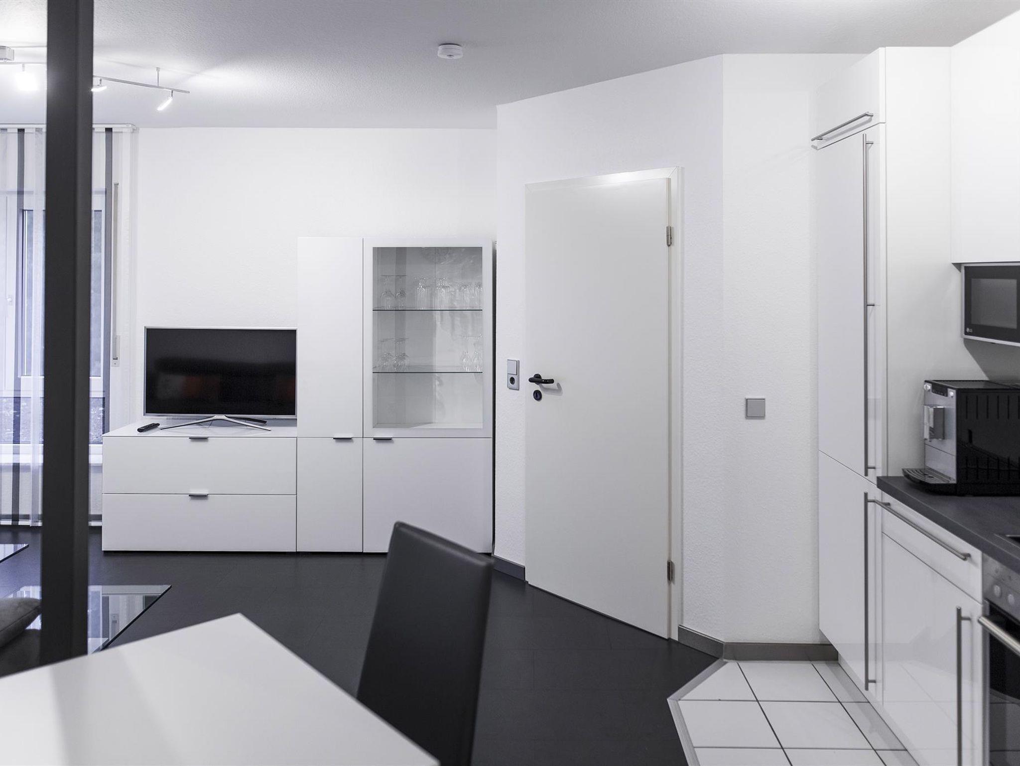 Das gepflegte, exklusiv ausgestattete Apartment bietet Ihnen ein lichtdurchflutetes Wohn-Schlaf-Zimmer mit Sitzecke und einem hochmodernen Fernsehgerät. Zum Essen und – falls Sie im Urlaub nicht darauf verzichten können, auch zum Arbeiten – gibt es einen großzügigen Tisch mit Zugriff auf Steckdosen und USB-Anschlüsse. Eine weitere ausziehbare Arbeitsplatte finden Sie im geräumigen Einbauschrank, der auch genügend Stauraum für Ihr Gepäck bietet.