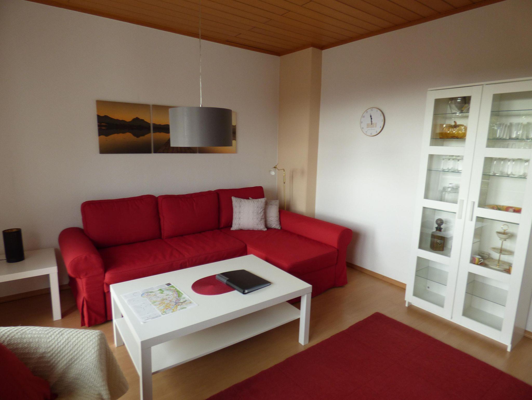 Zwei modern eingerichtete Schlafzimmer, ein gemütliches Wohnzimmer mit Büchern, DVDs und DVD-Player. Eine geräumige Küche mit gr. Eßtisch, Spülmaschine, Backofe, Herd und Mikrowelle.