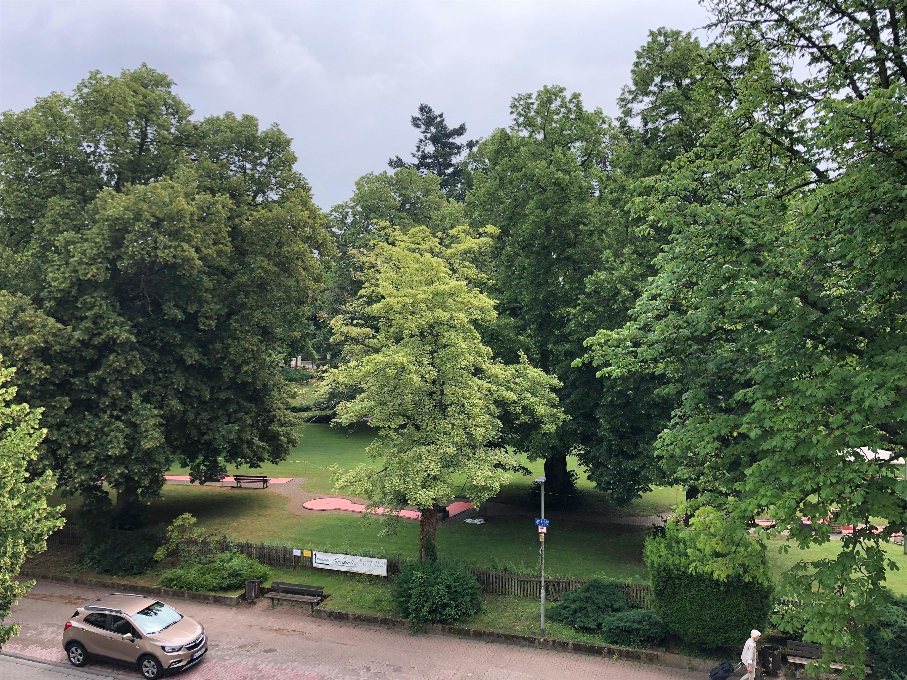 Die Wohnung ist hell eingerichtet mit vielen Fenstern zur Nahe und zum gegenüberliegenden Minigolfplatz.