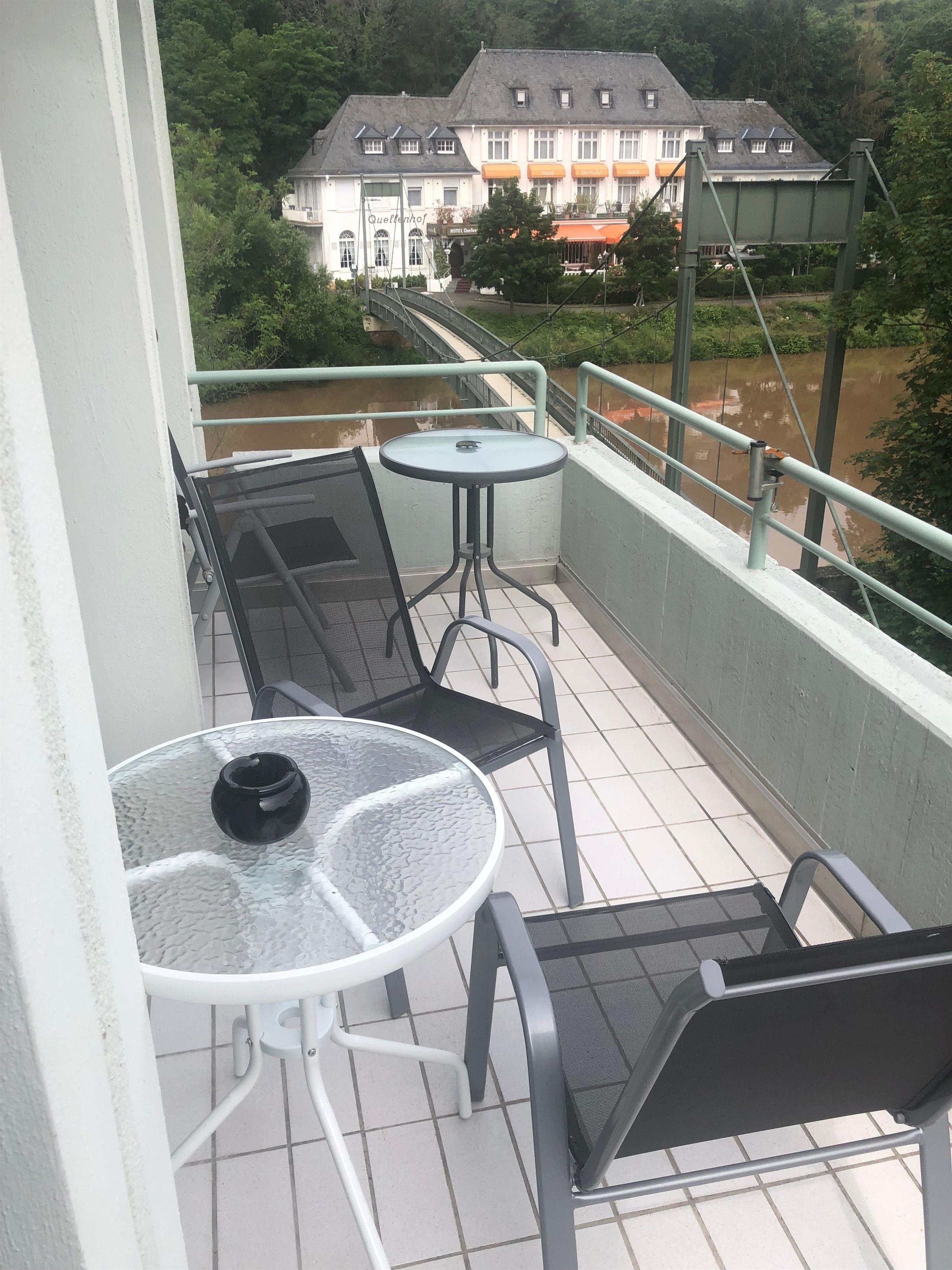 Die Wohnung verfügt über einen großen Balkon mit Blick auf die Nahe.