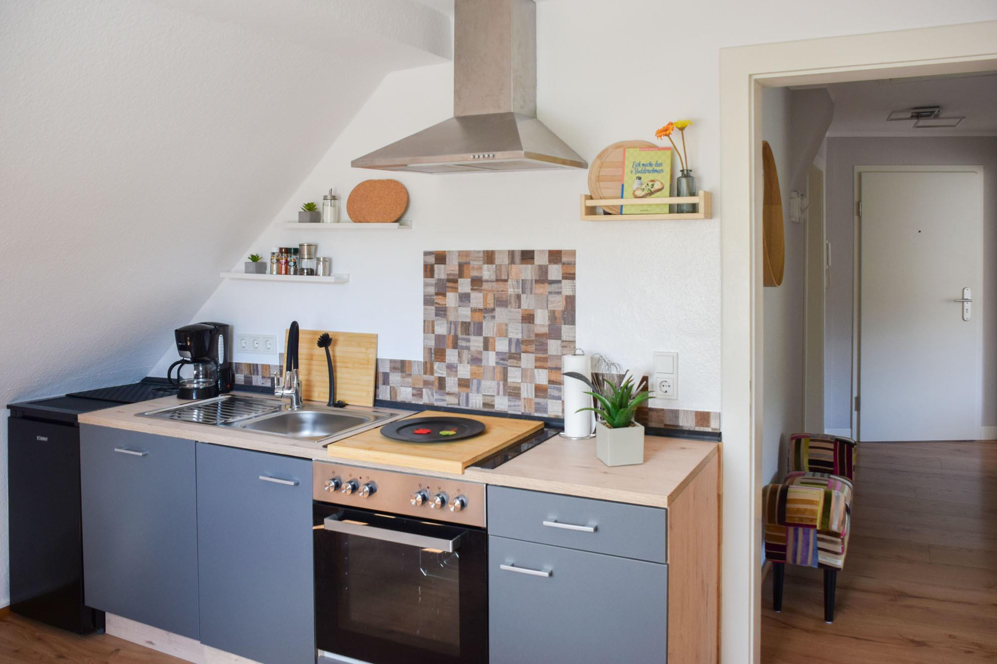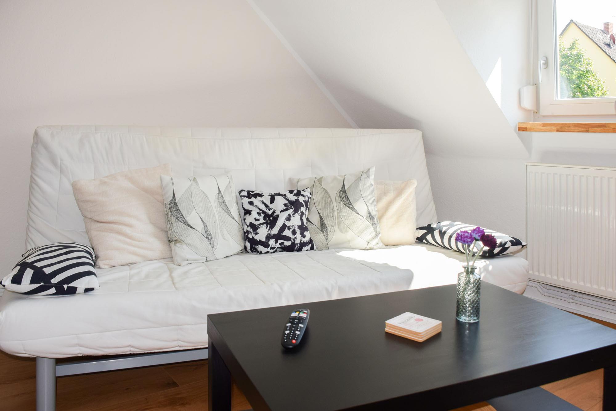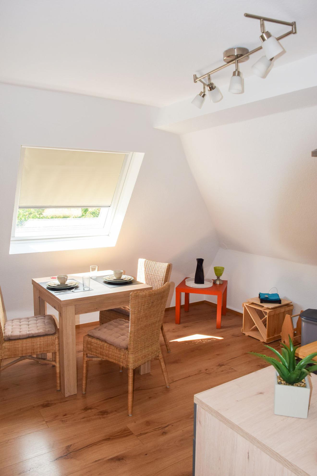 Die Wohnung verbindet behagliches Ambiente mit dem besonderen Charme der Dachschrägen und ist mit viel Liebe zum Detail gestaltet. Hier fühlen Sie sich sofort willkommen – ob für ein entspanntes Wochenende, eine längere Auszeit oder einen Kuraufenthalt.