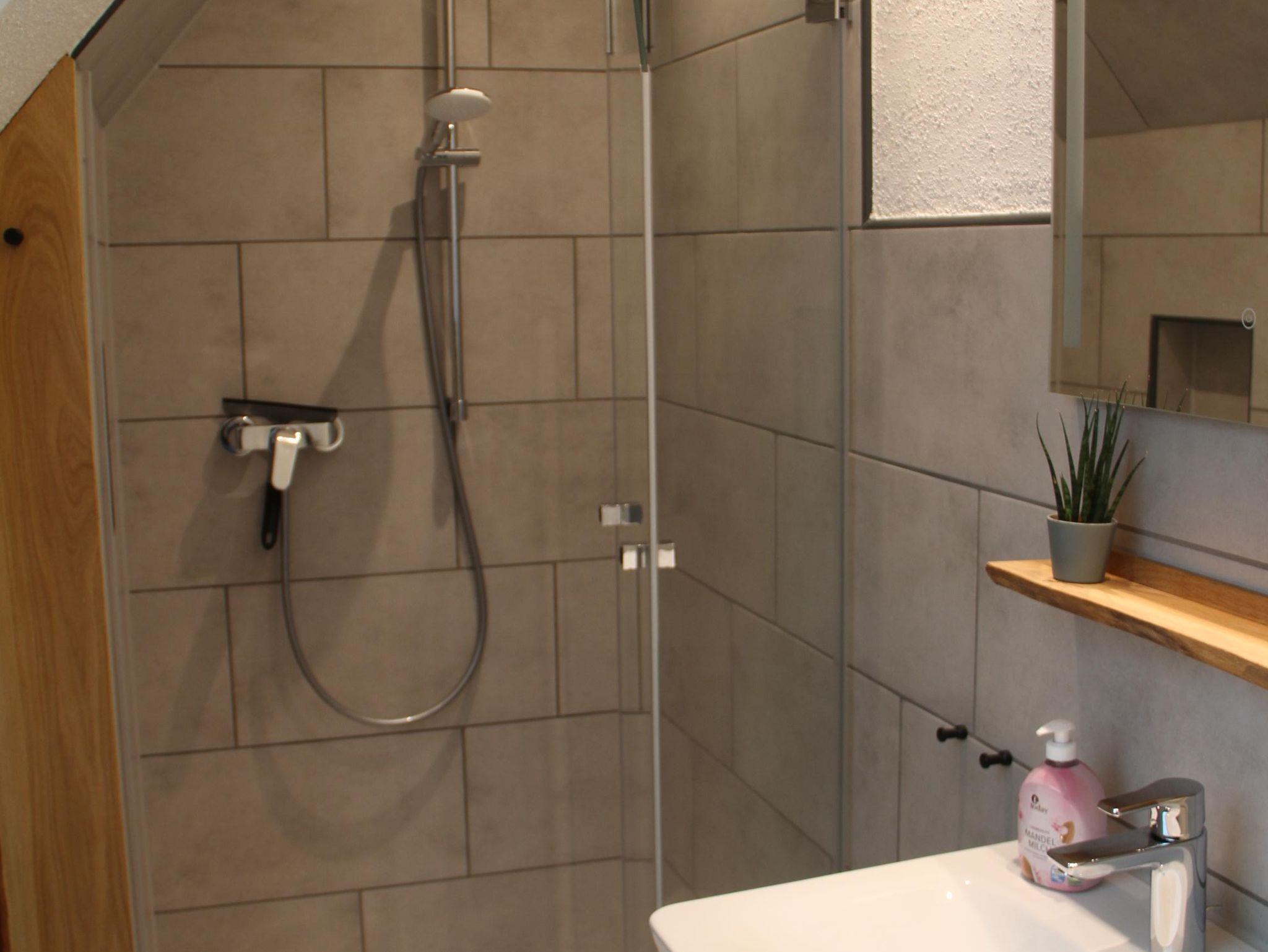 Im Schlafzimmer befinden sich zwei Einzelbetten (1,20x2,00m) und ein Schreibtisch. Das kleine, neu gestaltete Badezimmer ist mit einer Dusche ausgestattet. In allen Zimmern finden Sie Jalousien zum Abdunkeln der Räume.