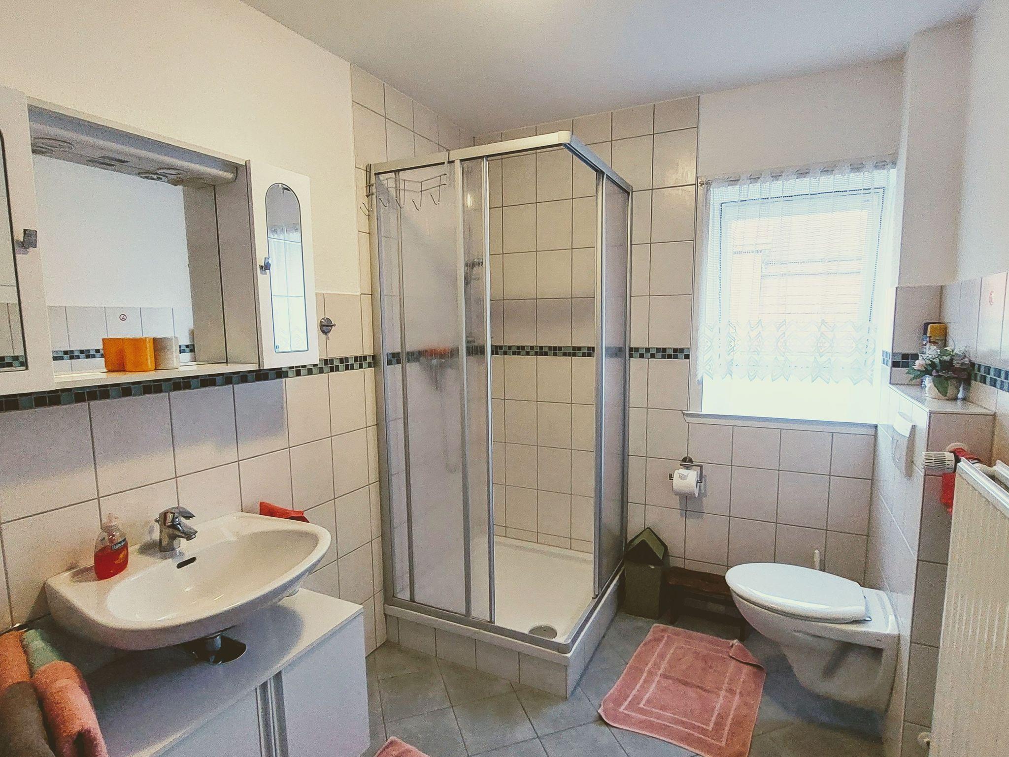 Die Ferienwohnung ist ausgestattet mit einem Wohnzimmer mit Kabel TV, zwei Schlafzimmern mit je einem Doppelbett, ein Einzelzimmer, zwei Bäder mit Dusche/WC, sowie einer gut eingerichteten Küche mit Sitzecke, E-Herd mit Backofen, Kühlschrank mit Gefrierfach, Mikrowelle, Kaffeemaschine, Wasserkocher und noch mehr. Weiterhin ist WLAN, Bettwäsche, Handtücher und ein Parkplatz im Preis inklusive. Der Gästebeitrag ist im Preis nicht inbegriffen. Haustiere sind leider nicht erlaubt.