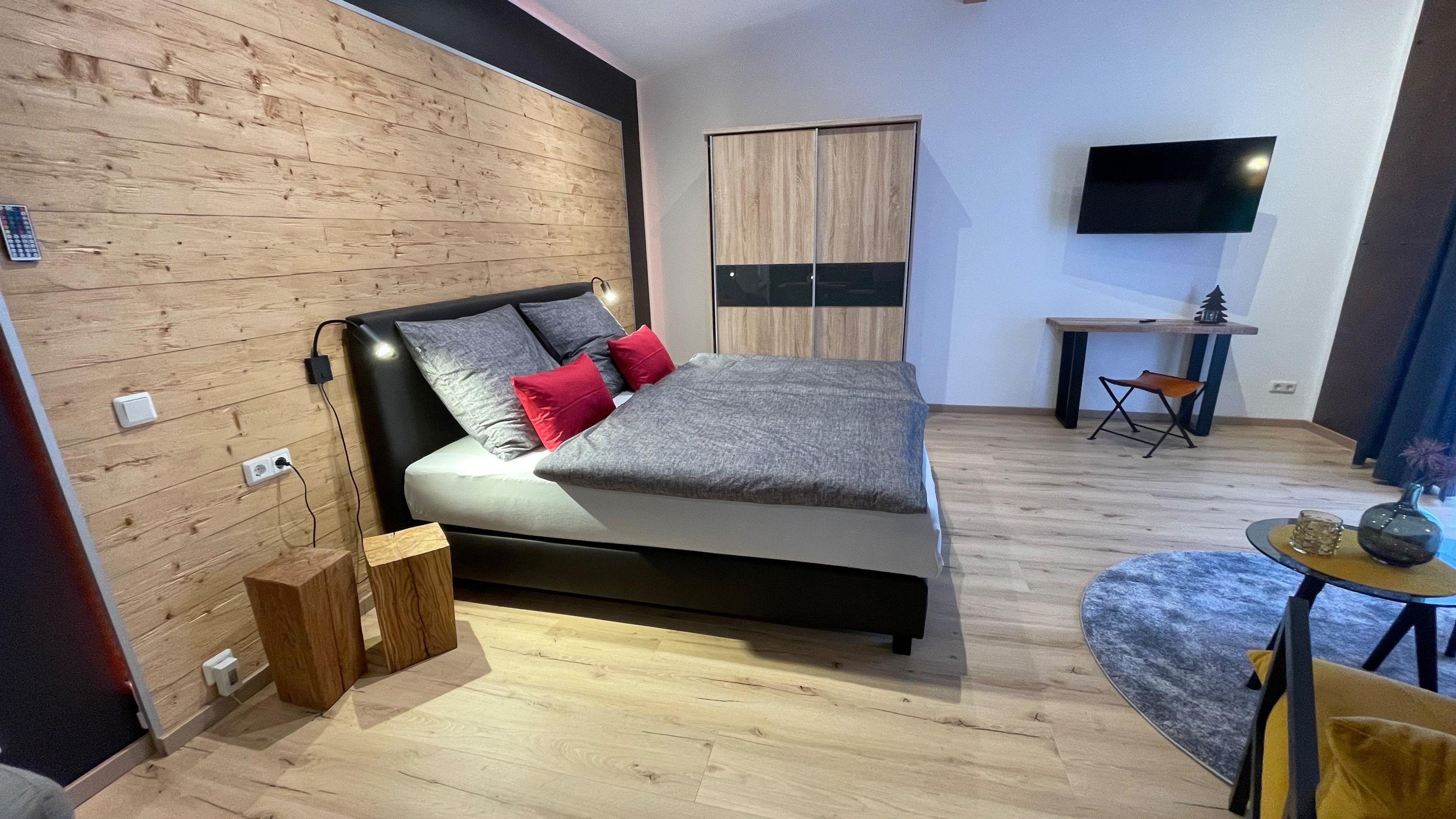 Loft Design Appartement mit Dachterrasse und Garten, nahe dem Industriedenkmal Königshütte und dem Karstwanderweg, direkt an der Oder gelegen. Smart TV in allen Schlaf- und Wohnbereichen, moderne Küche mit Induktion. Bettwäsche und Handtücher inclusive.